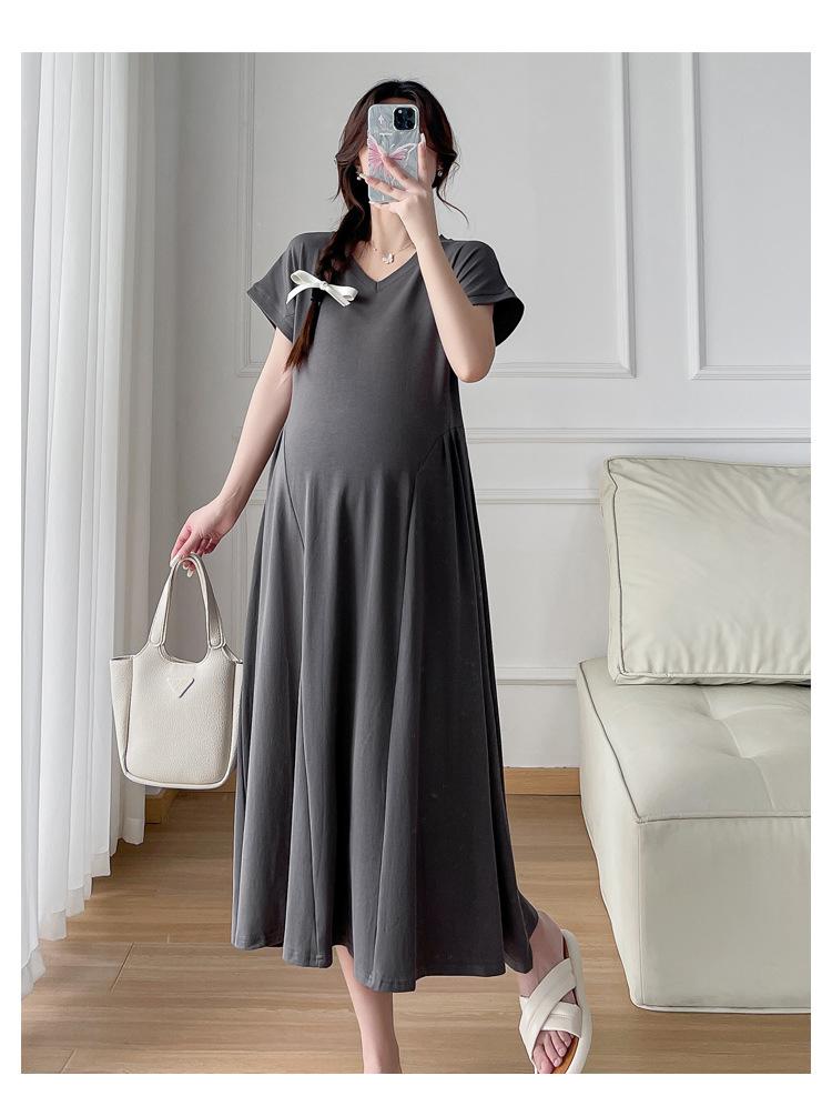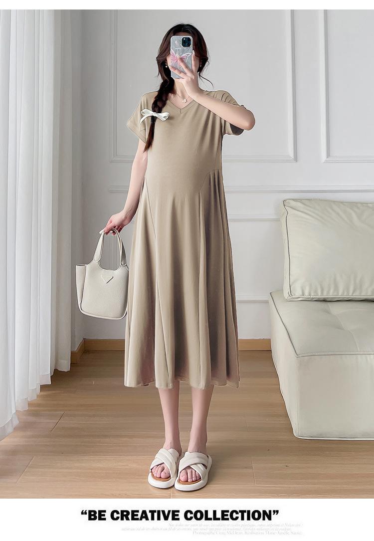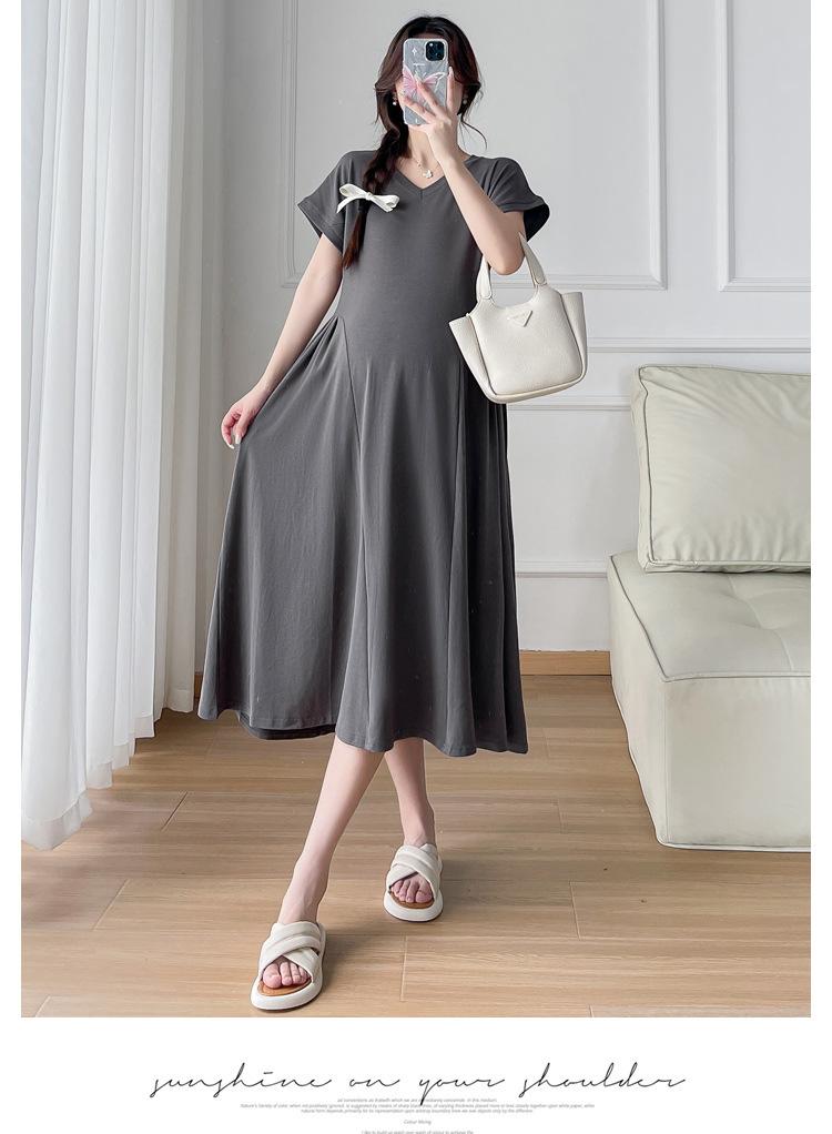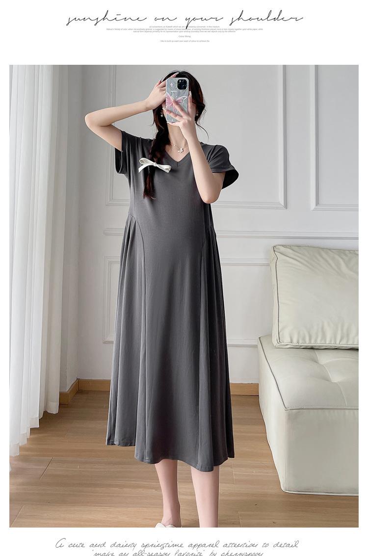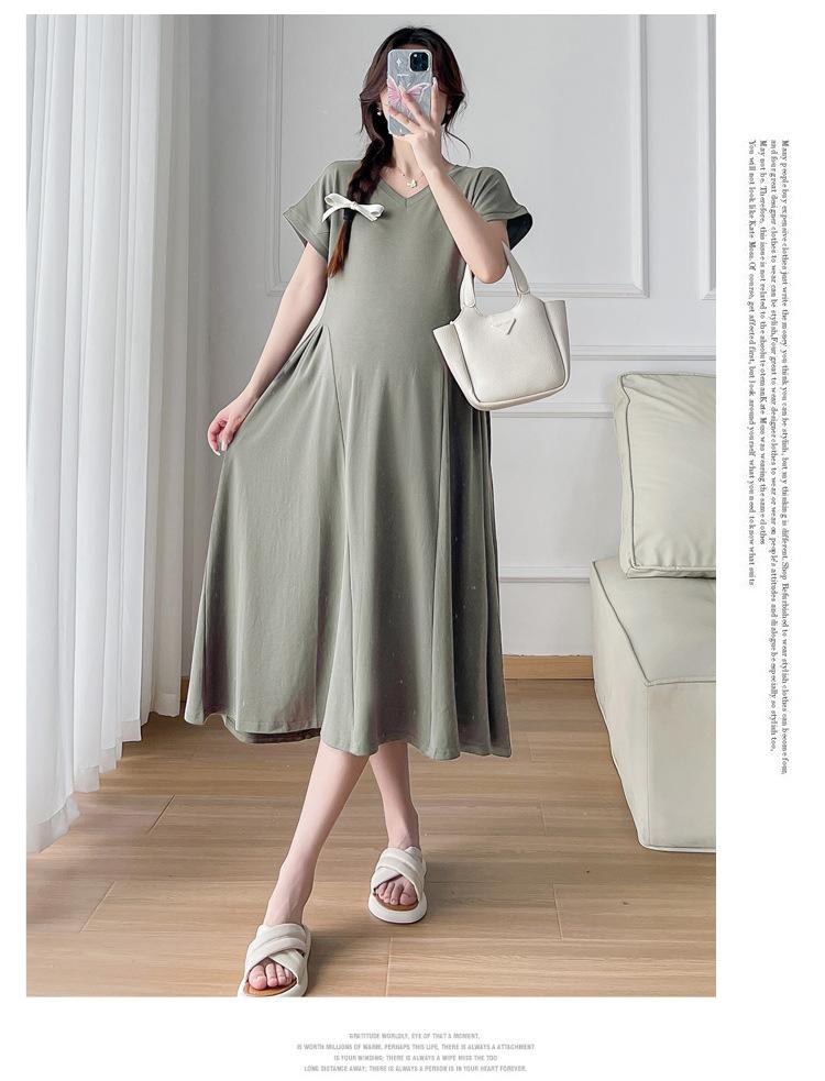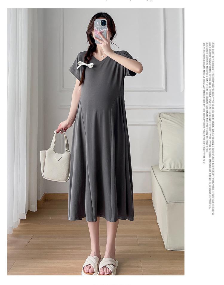 Ropa de Maternidad 2024 Verano Nuevo Estilo Coreano Diseño de Moda Elegante Cintura Adelgazante Look Cubre Vientre Vestido de Maternidad