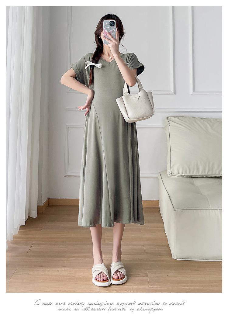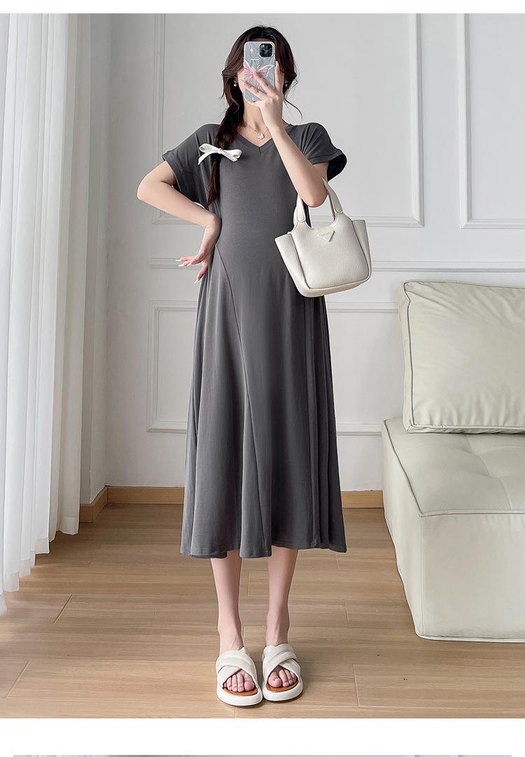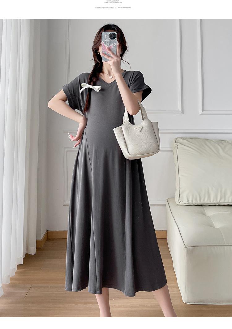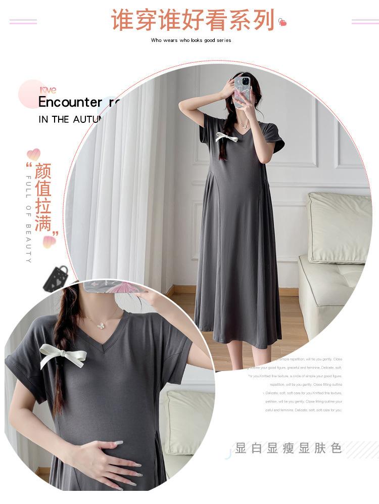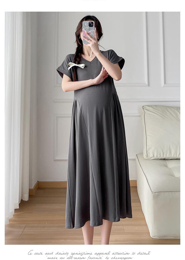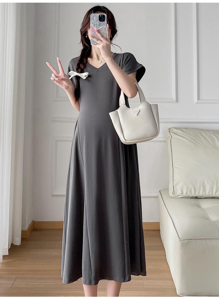 Ropa de Maternidad 2024 Verano Nuevo Estilo Coreano Diseño de Moda Elegante Cintura Adelgazante Look Cubre Vientre Vestido de Maternidad