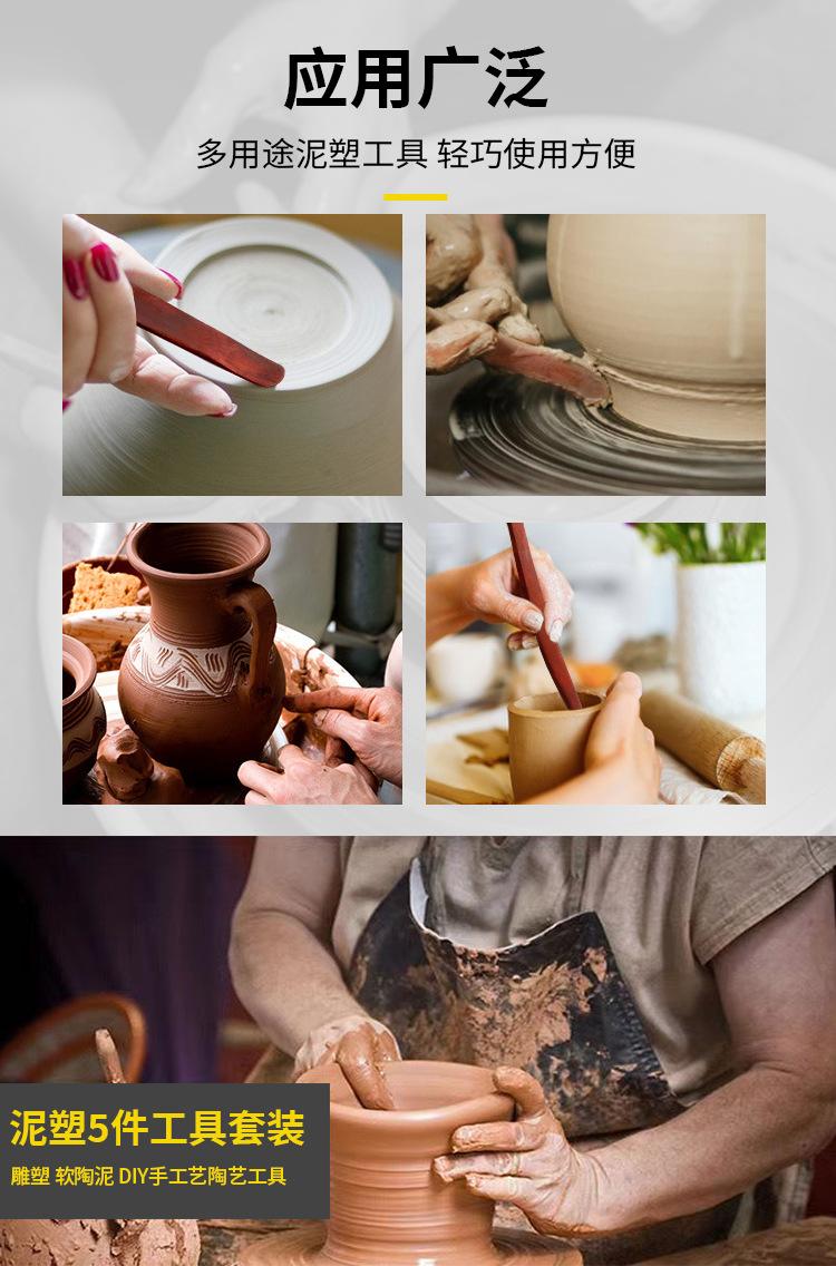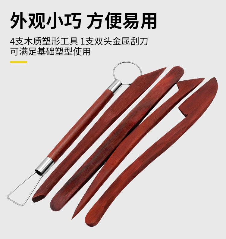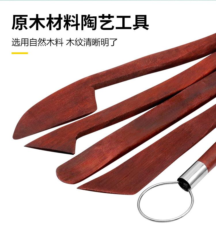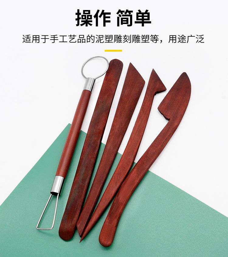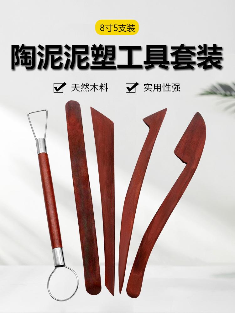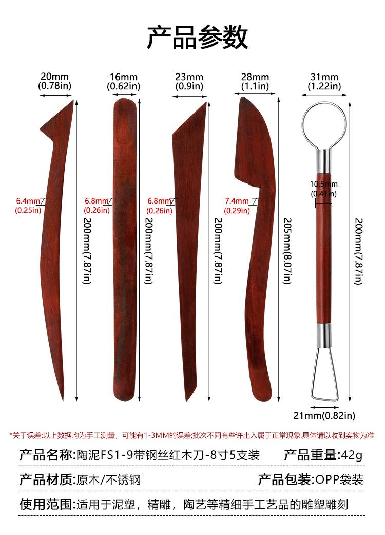 Cuchillo para arcilla de cerámica, herramienta para esculpir, 8 pulgadas, 5 piezas, manual, juego de bricolaje, arcilla de cerámica FS1-9 con cuchillo de caoba de alambre de acero