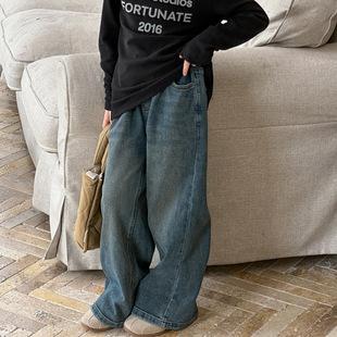 Pantalones para niñas, otoño 2024, nuevo estilo, pantalones holgados casuales de pierna ancha para niños medianos y grandes, pantalones vaqueros rectos para niños, tendencia |