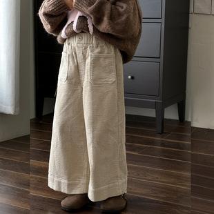 Pantalones para niñas, otoño e invierno 2024, nuevos pantalones de terciopelo de pierna ancha, estilo simple, de color sólido, con temperamento de moda, pantalones tipo plátano |