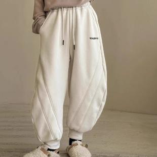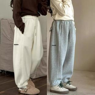Pantalones de felpa para niñas, otoño e invierno, estilo coreano, holgados, informales, de una pieza, de polar, estilo banana y hoz, para niños de talla mediana y grande. |