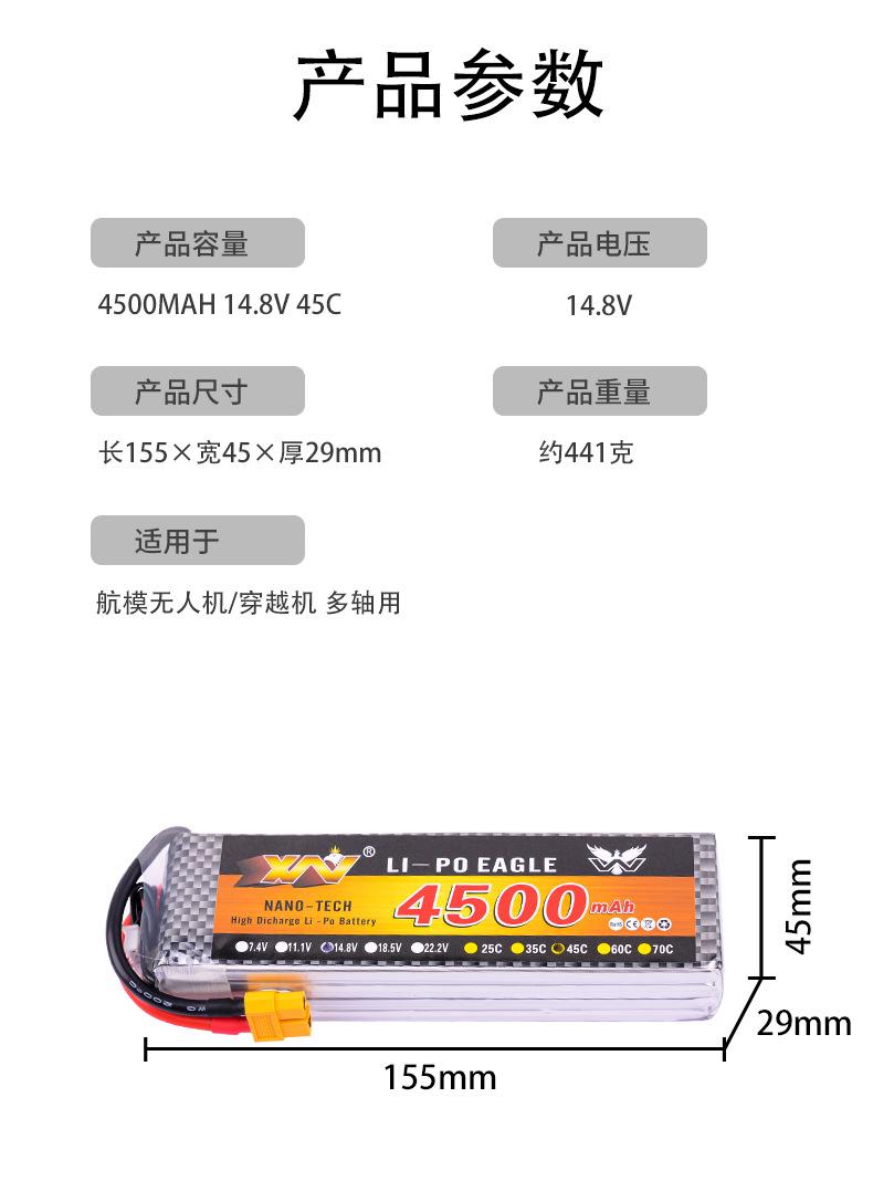 Modelo Eagle King Batería de Litio Un Producto Alta Tasa 4S 14.8V 4500mAh 45C Batería Modelo Locomotora No Tripulada