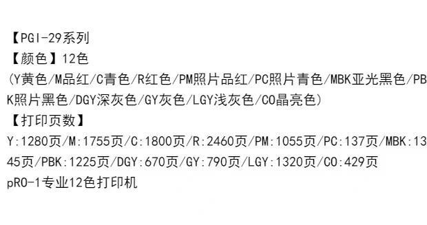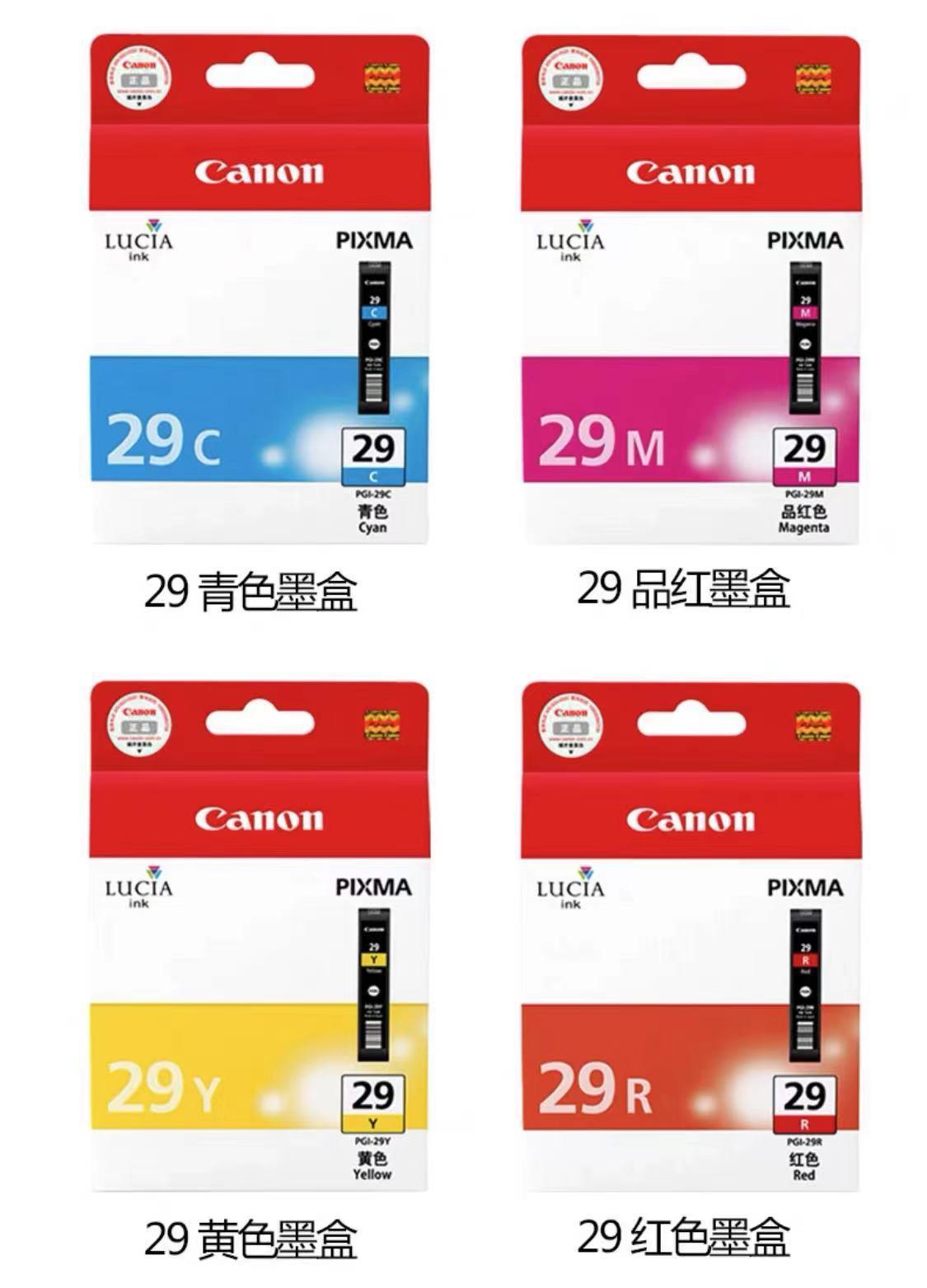 PGI-29 matt black MBK, PGI-29 photo black PBK 1225 pages, PGI-29 cyan C 1800 pages, PGI-29 magenta M 1755 page...