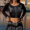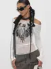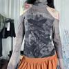 Otoño Nueva Camiseta Estilo Europeo y Americano Transfronteriza Malla Transparente Exportación Ins Personalizada Estampado Ojo Calle Top Ajustado