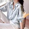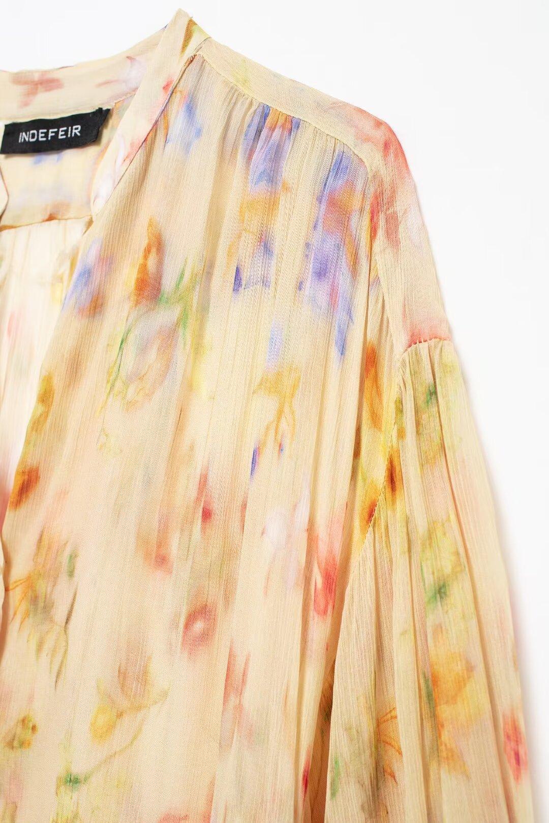 Camisa de manga larga con estampado de gasa y cuello alto para mujer, otoño 2024, nueva camisa informal holgada de un solo pecho estilo europeo y americano