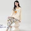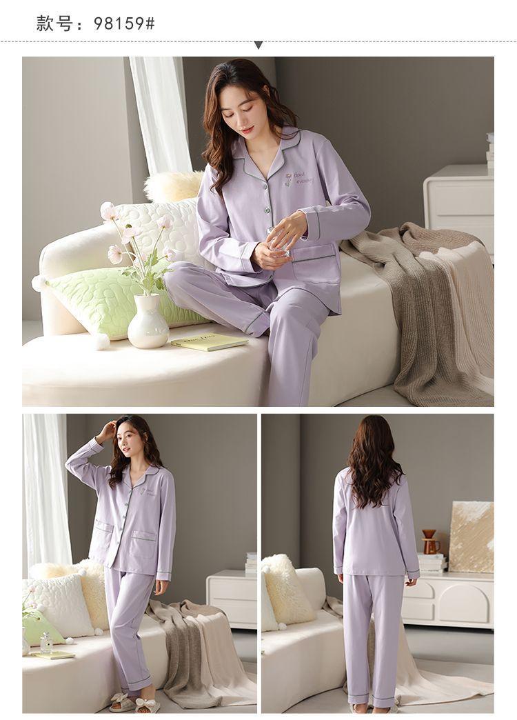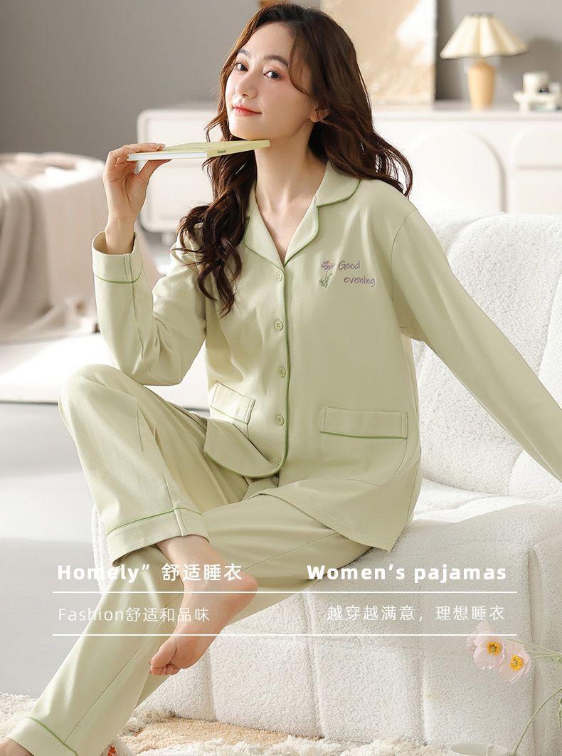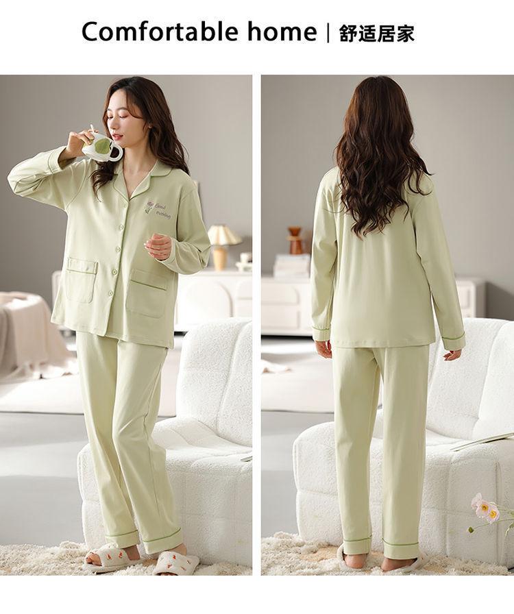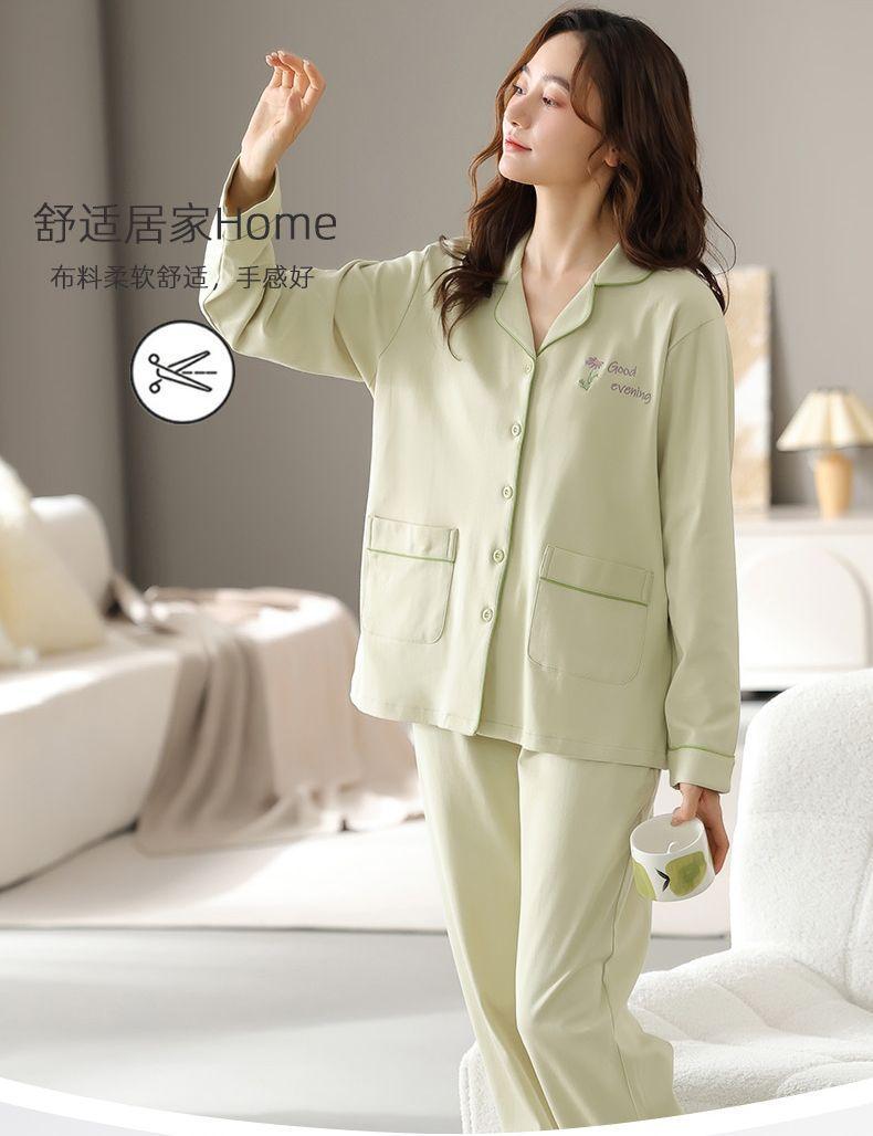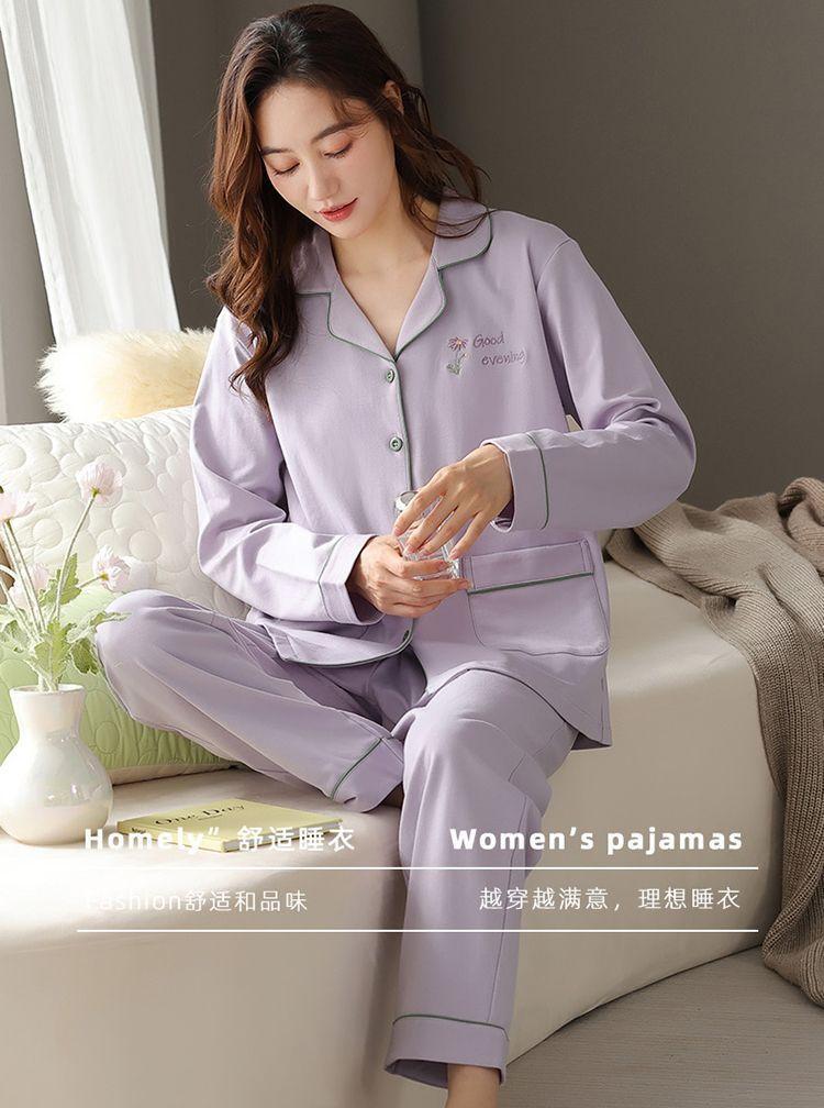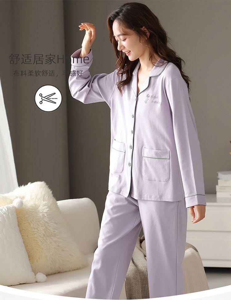 Pijamas de Algodón 100% para Mujer Primavera y Otoño Manga Larga Pantalón Traje Otoño e Invierno Holgado Ropa para el Hogar para Usar Afuera