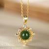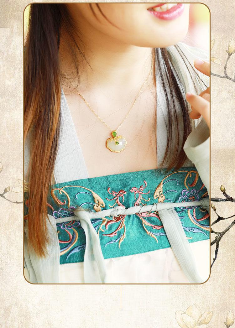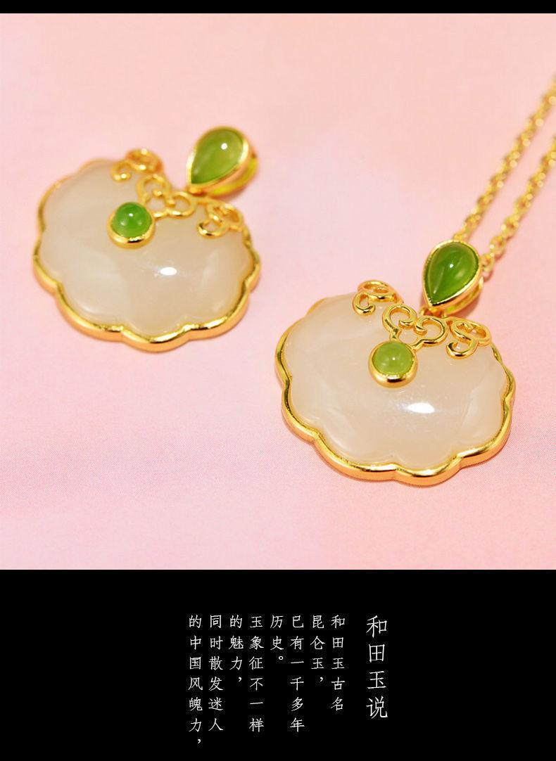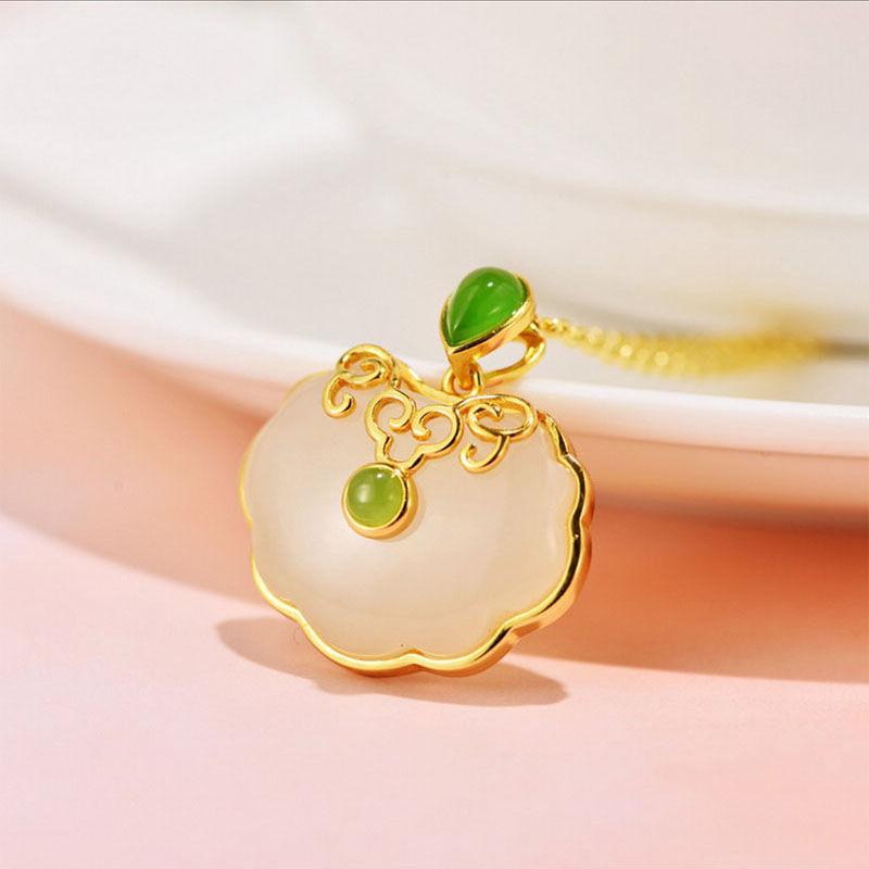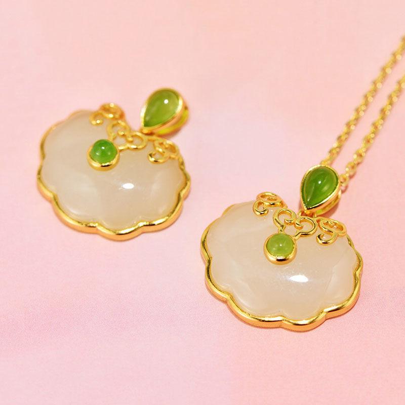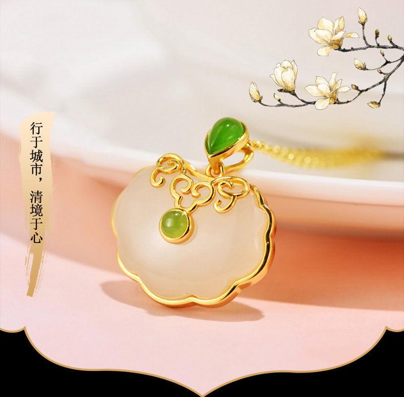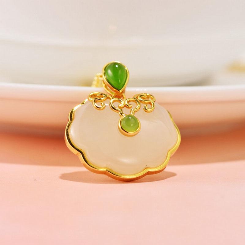 Colgante de cadena de clavícula con jade hetiano de plata S925, colgante de estilo antiguo, elegante colgante de cerradura de longevidad, joyería para mujer