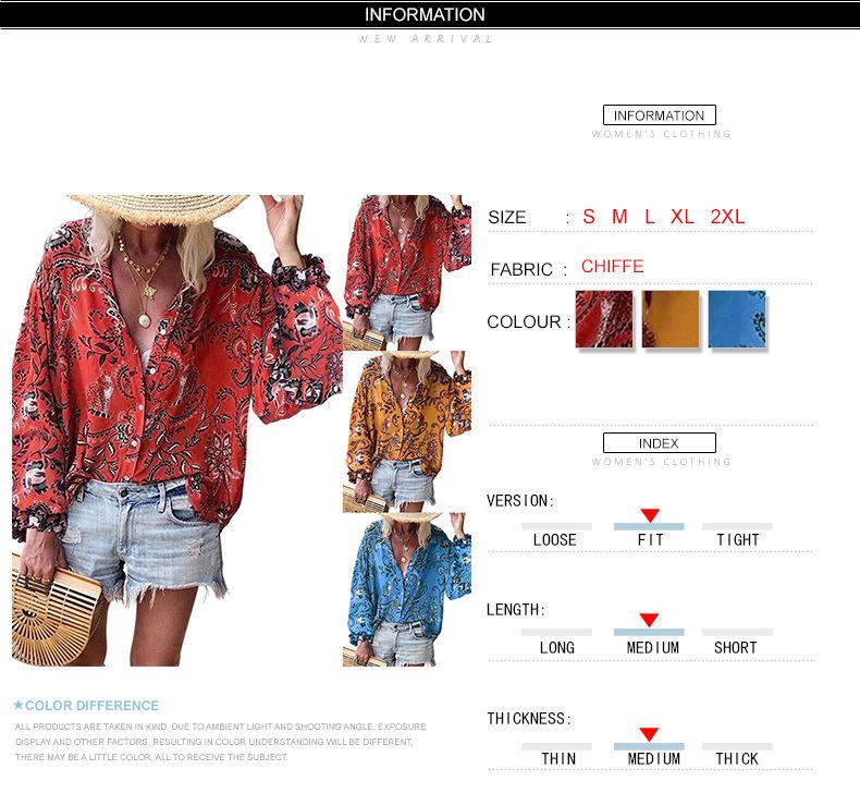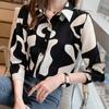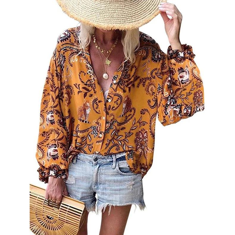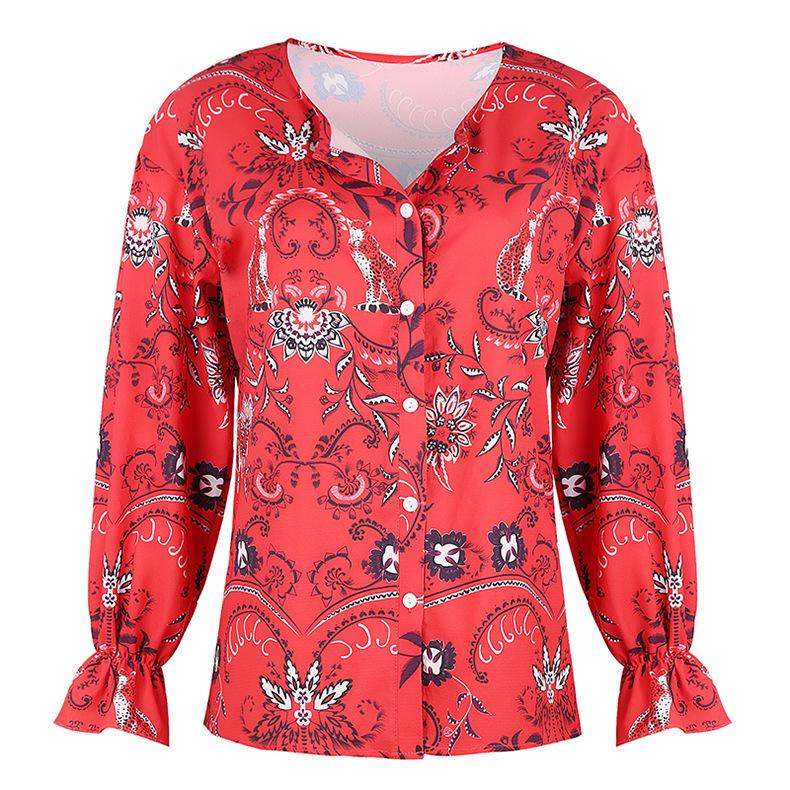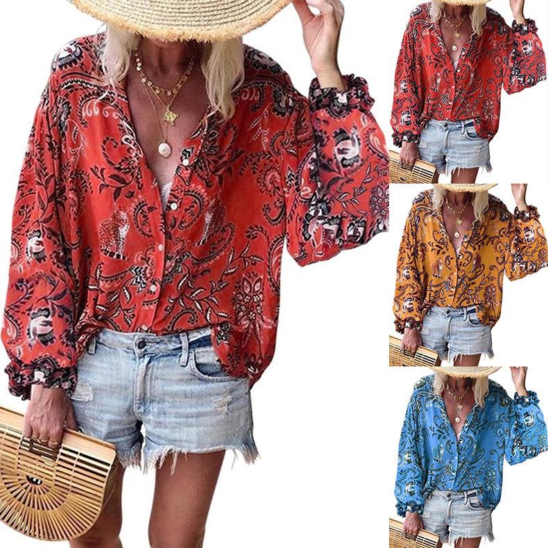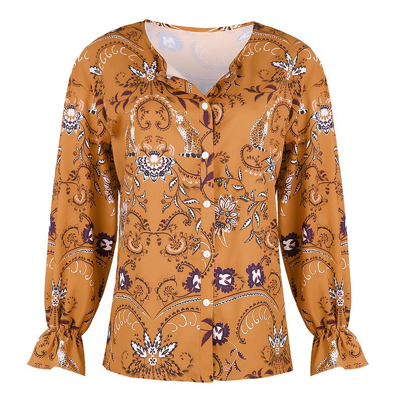 Cárdigan de otoño para mujer, camisa de solapa, sexy, estampada, de manga larga, para Europa y América, Amazon