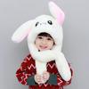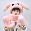 Conjunto de tres piezas para niña con gorro y bufanda para otoño e invierno, con orejas de conejo y bufanda para bebé.