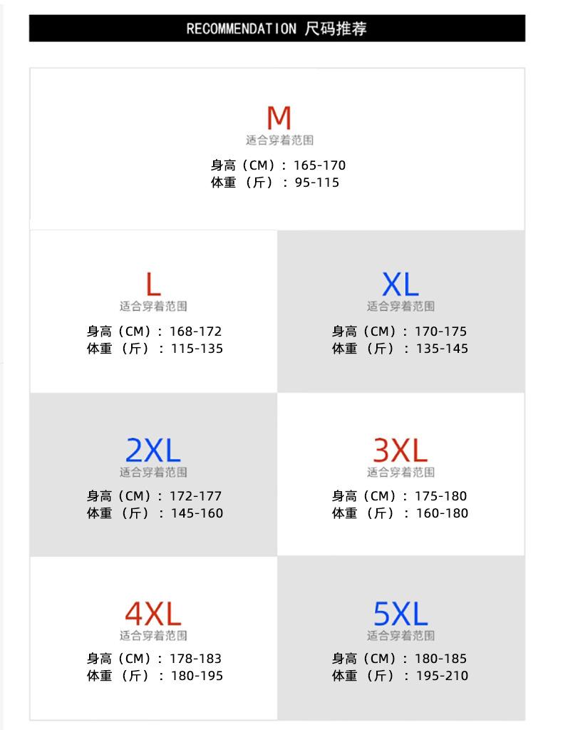 M, L, XL, 2XL, 3XL, 4XL, 5XL