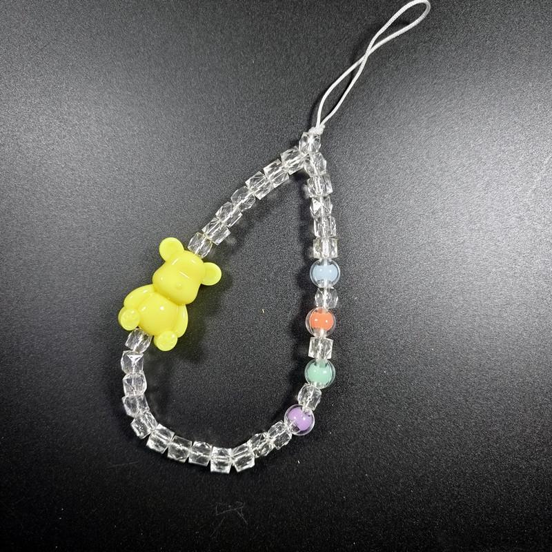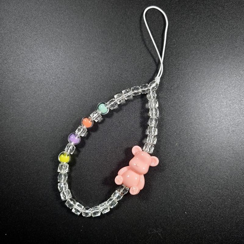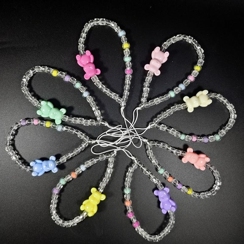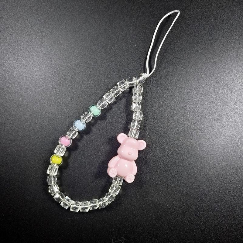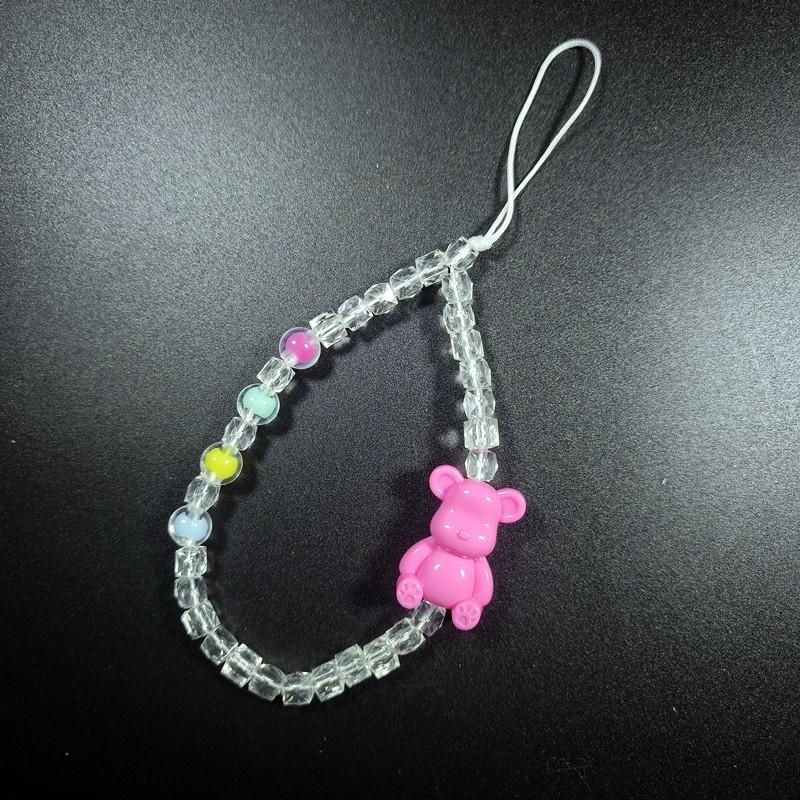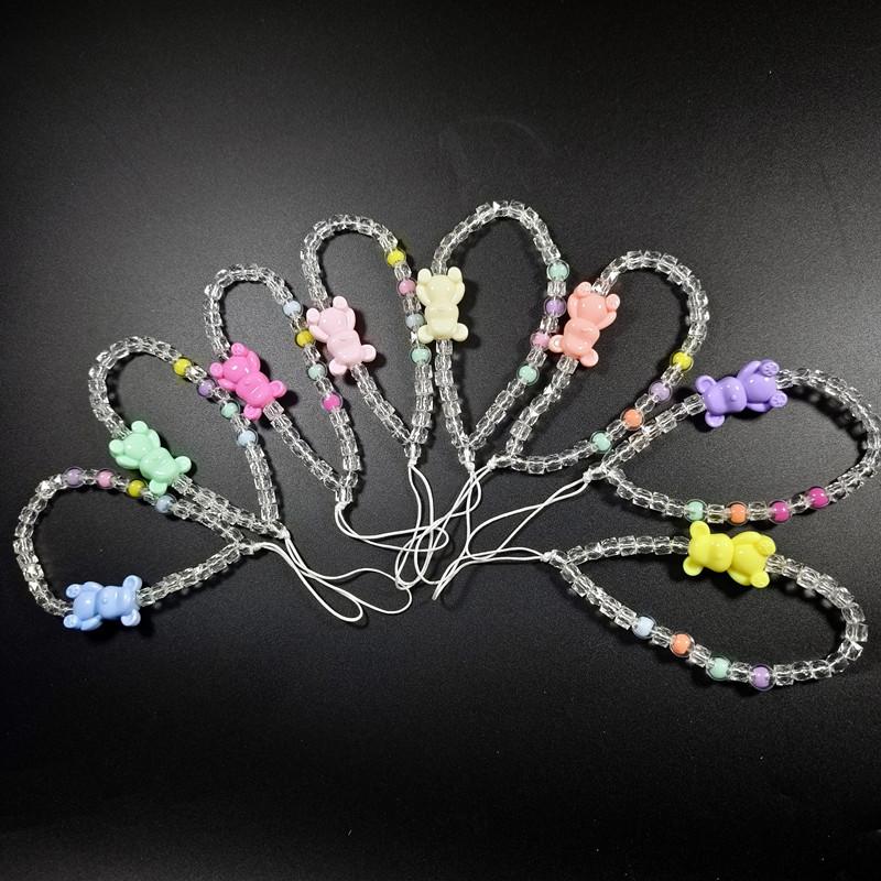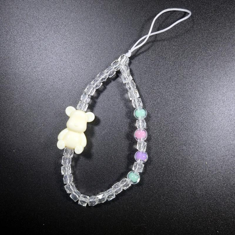 Cordón de cuentas cortas de color oso, hecho a mano, para funda de teléfono, llavero, marca de fábrica