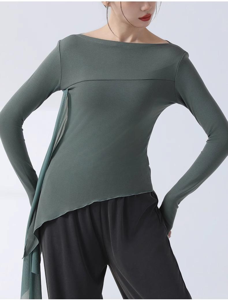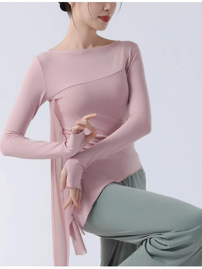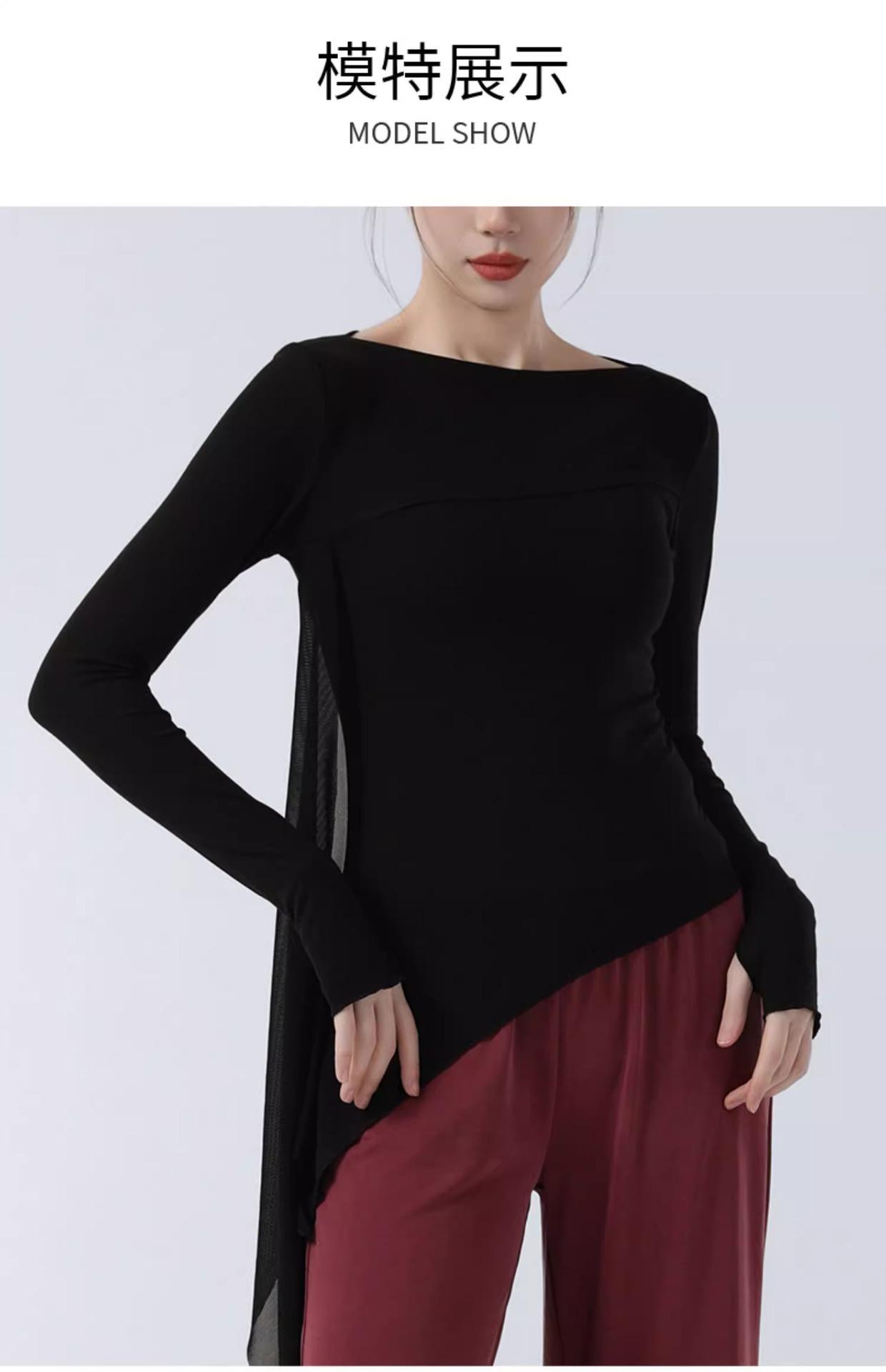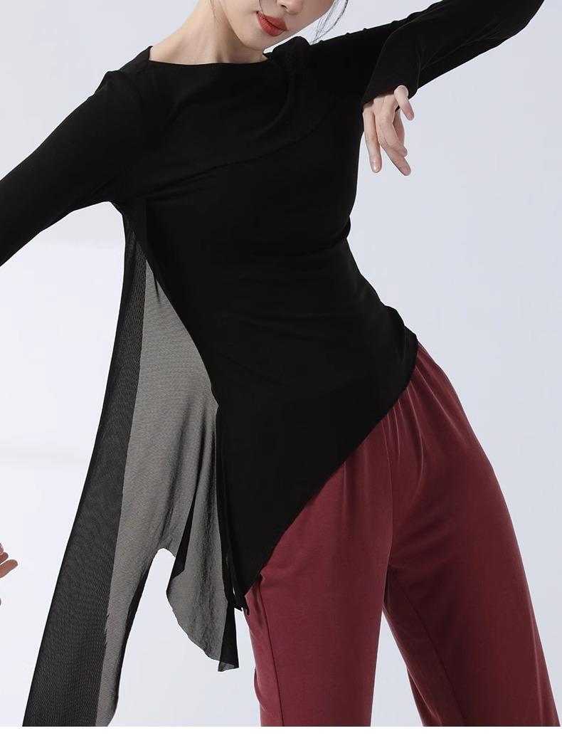 Ropa de práctica de baile para mujeres adultas, ropa de danza clásica superior, ropa de baile moderno ajustada con dedos vagabundos, ropa de entrenamiento de yoga diario
