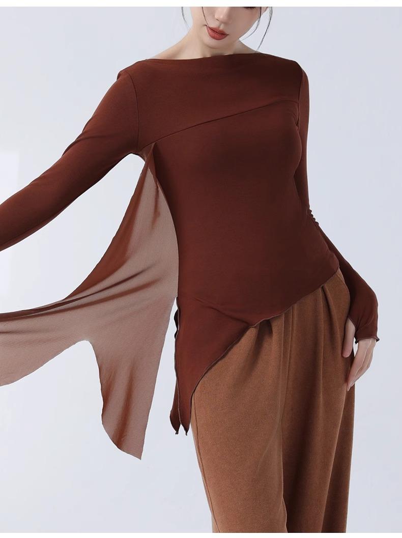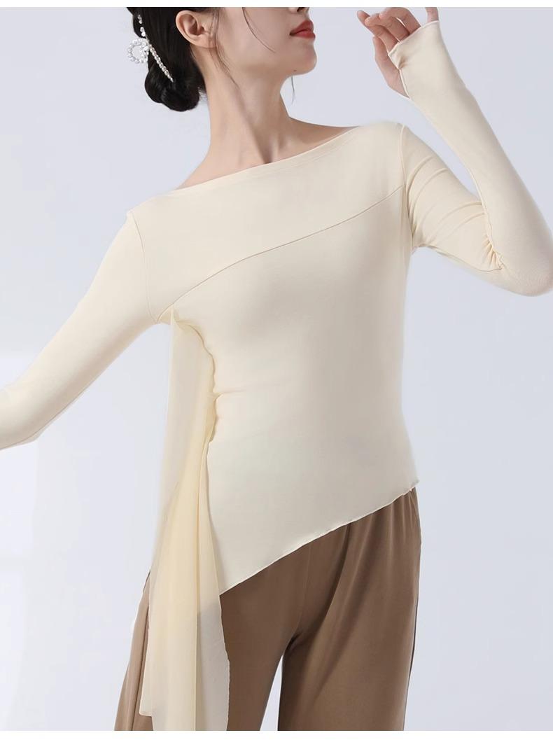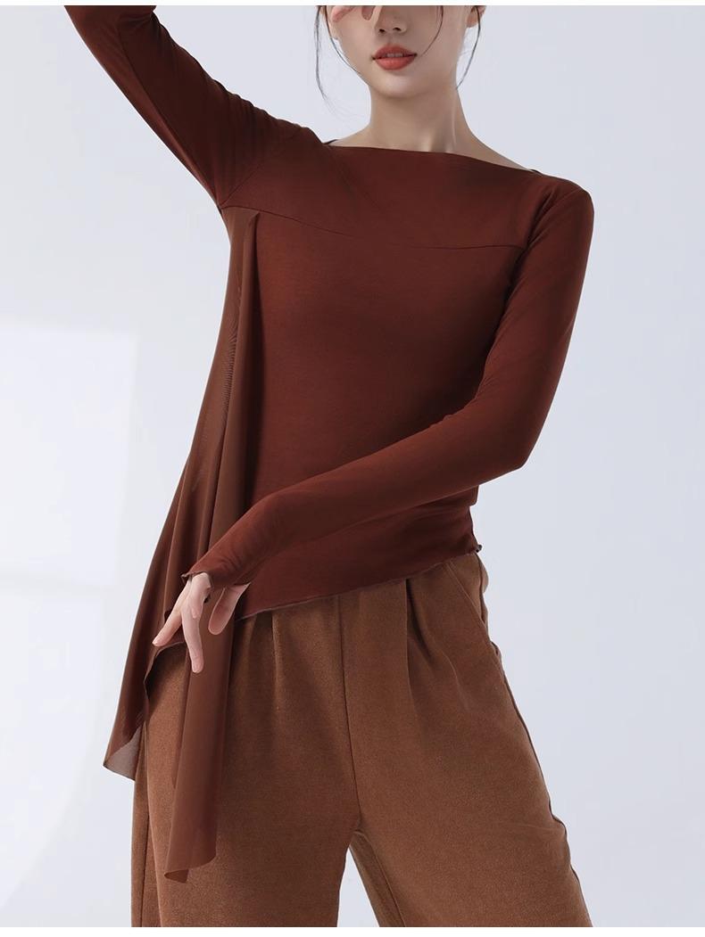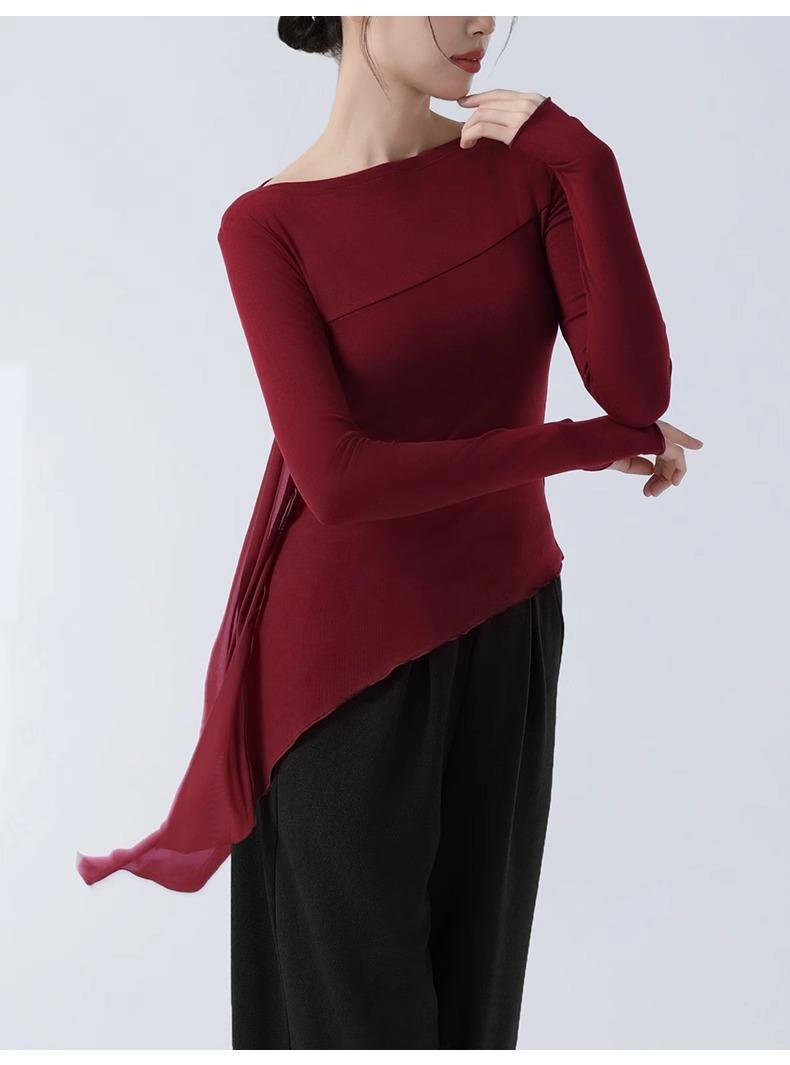 Ropa de práctica de baile para mujeres adultas, ropa de danza clásica superior, ropa de baile moderno ajustada con dedos vagabundos, ropa de entrenamiento de yoga diario