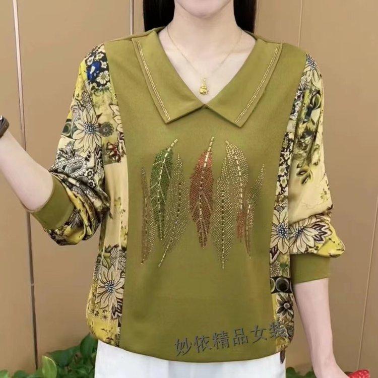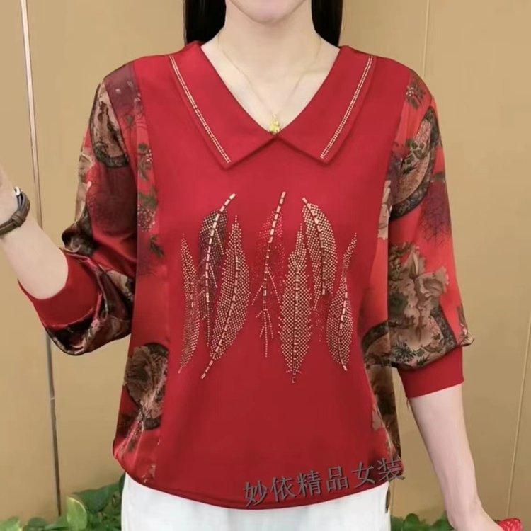 Primavera 2023 Nueva Moda Otoño Adelgazante Combinación Estilo Occidental Solapa Perforación Caliente Elegante Blusa de Madre Manga Larga
