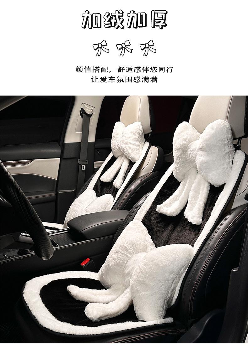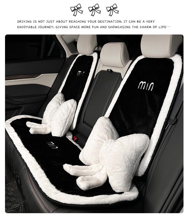 Rabbit fur white edge min cushion front row, Rabbit fur white edge min cushion backrest, Rabbit fur white edge...