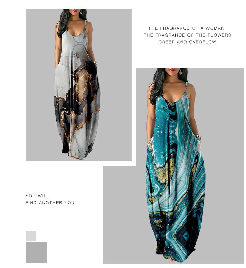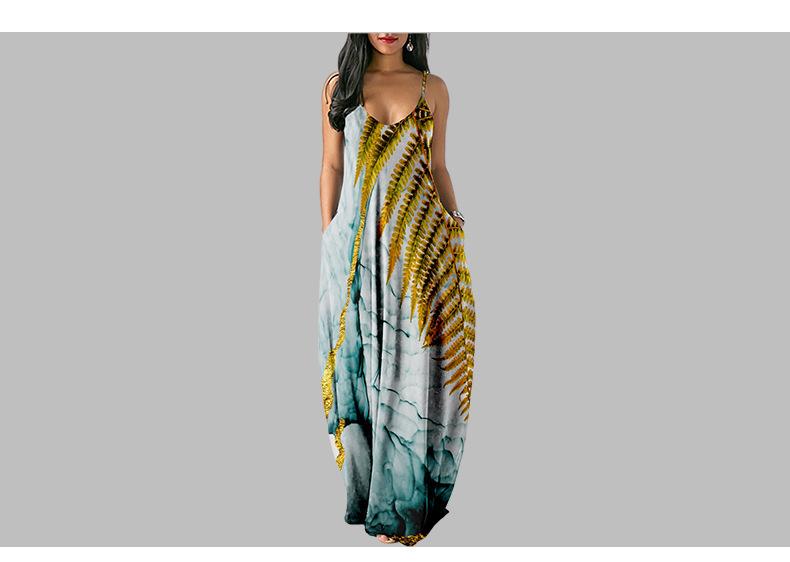 Nuevo vestido largo de verano con tirantes frescos de Amazon, vestido urbano elegante con estampado degradado, venta al por mayor