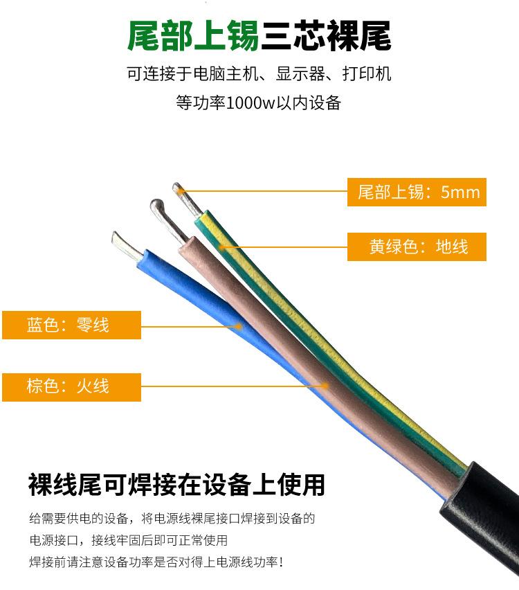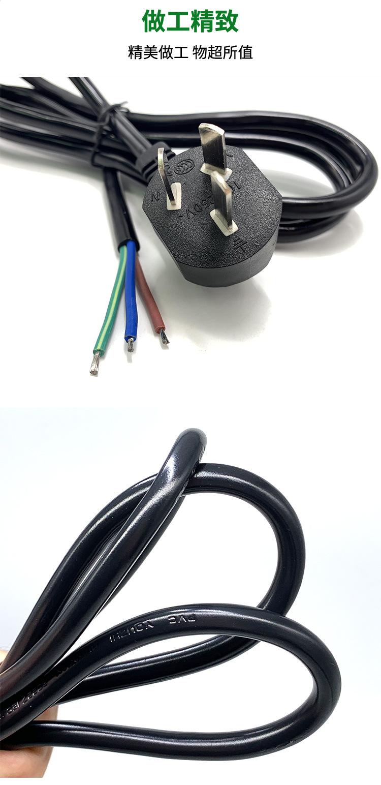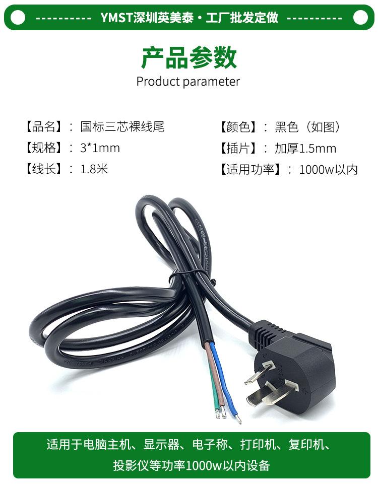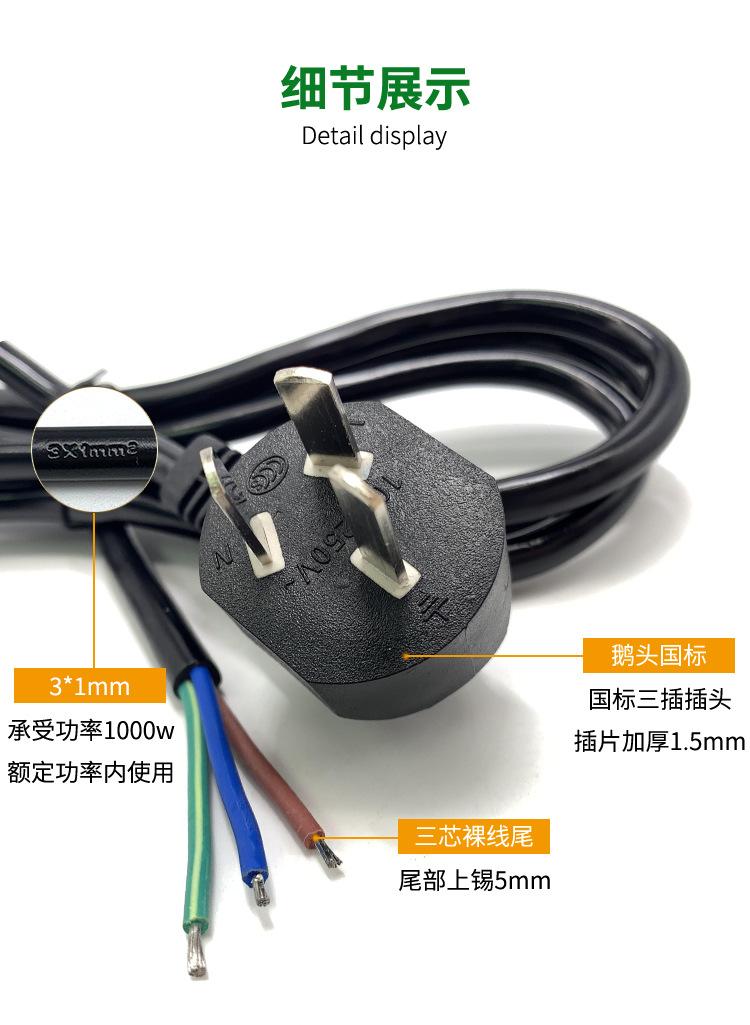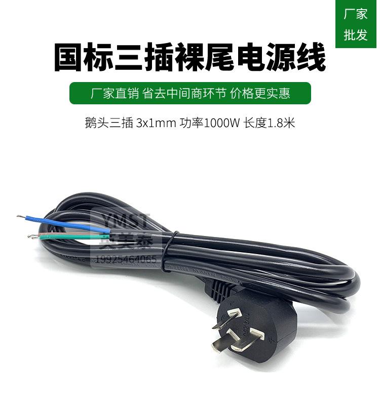 Cable de alimentación estándar nacional, enchufe estándar nacional, cable de alimentación estándar nacional, conexión de tres enchufes, cable de alimentación de cola desnuda, toma de corriente de fábrica de 1,8 metros