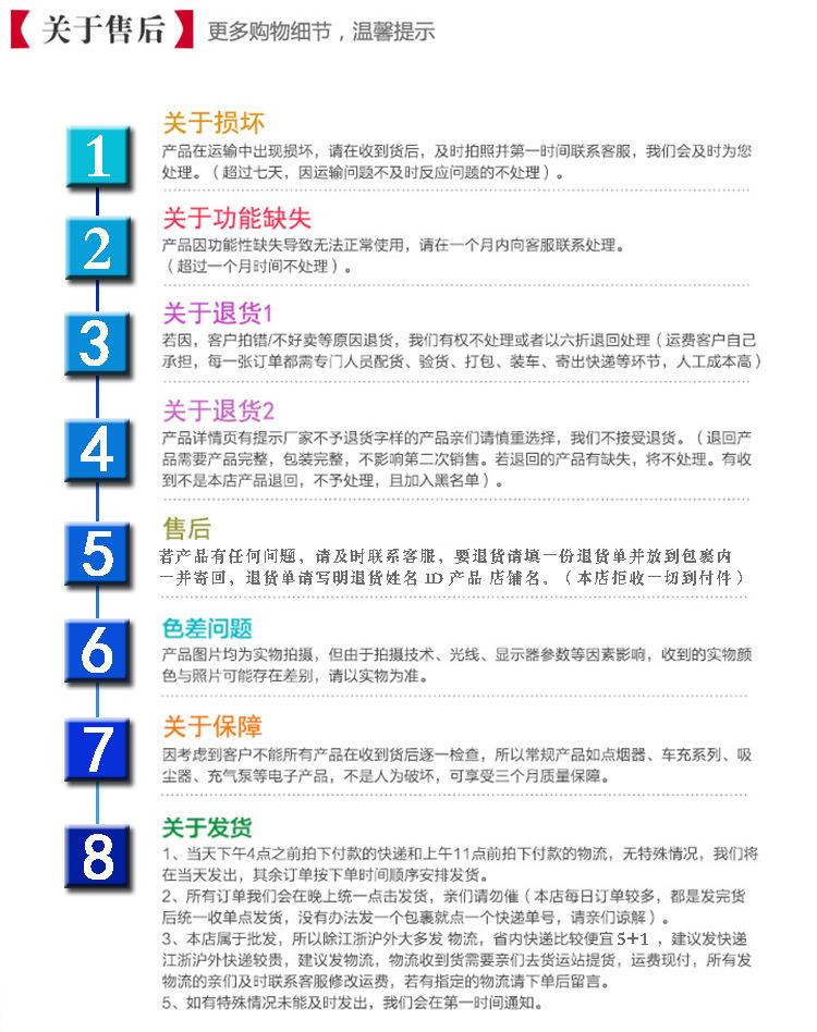 8. Si hay algún daño u otros problemas, por favor tome una foto y envíela al servicio al cliente para gestionar los problemas posventa. : Le deseamos buena fortuna y que su negocio crezca cada vez más.