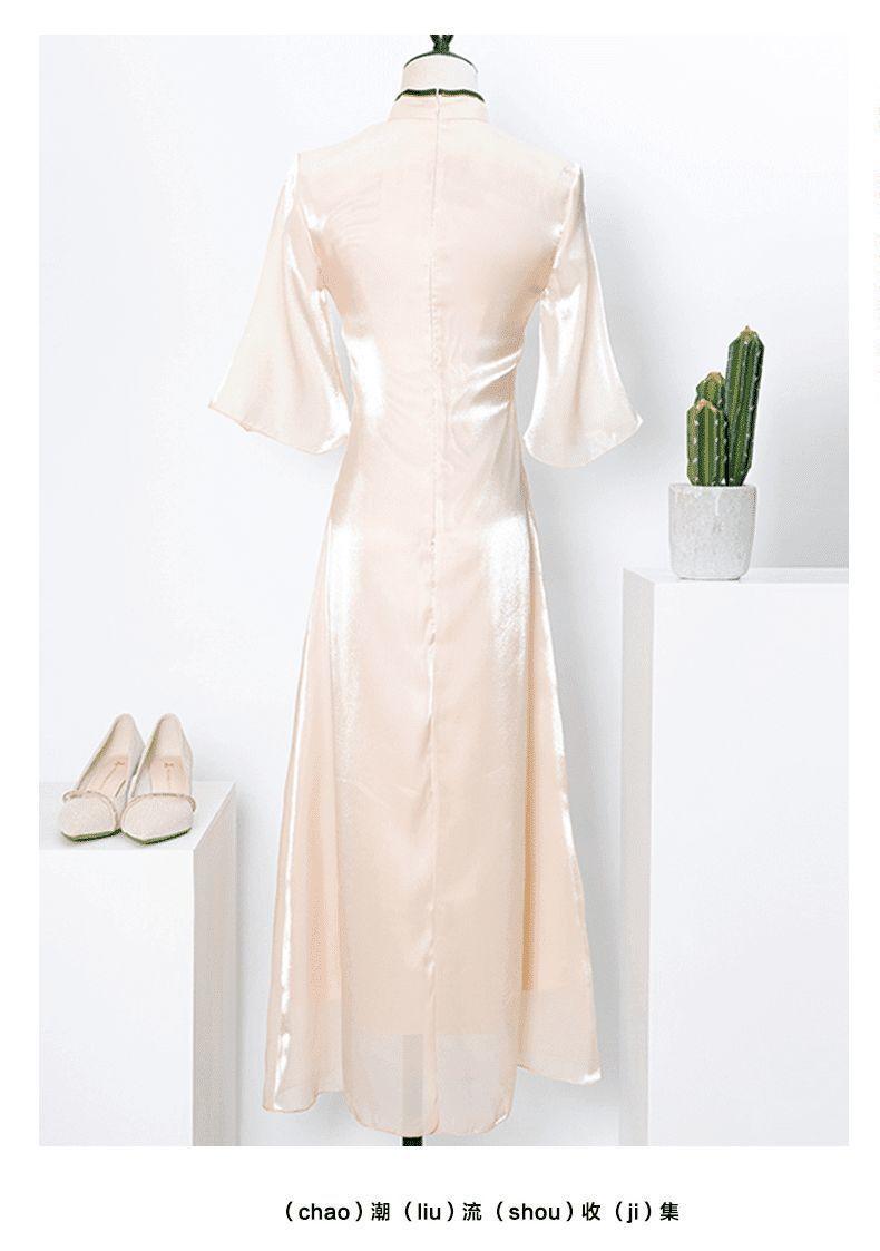 Cheongsam de talla grande para mujer, vestido elegante de verano para niña, nuevo estilo, con mangas largas invertidas, estilo chino, para uso diario.