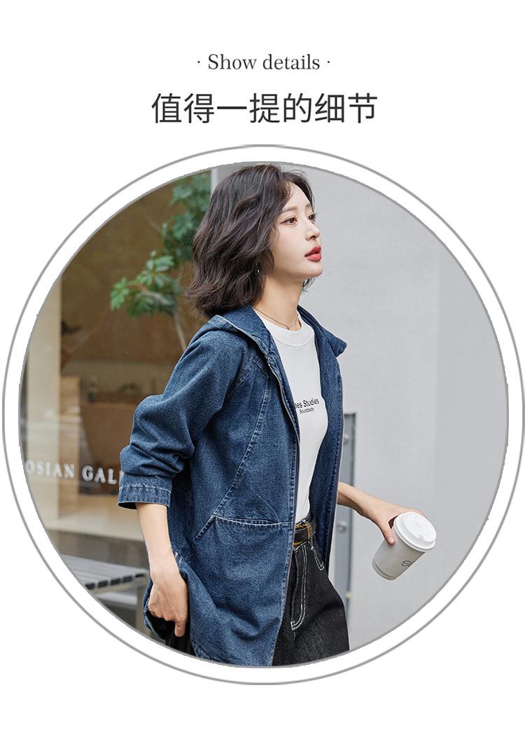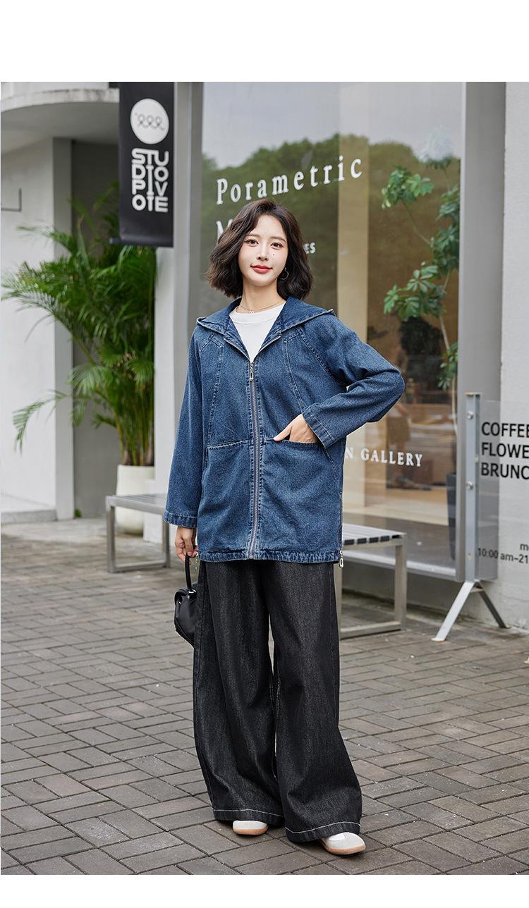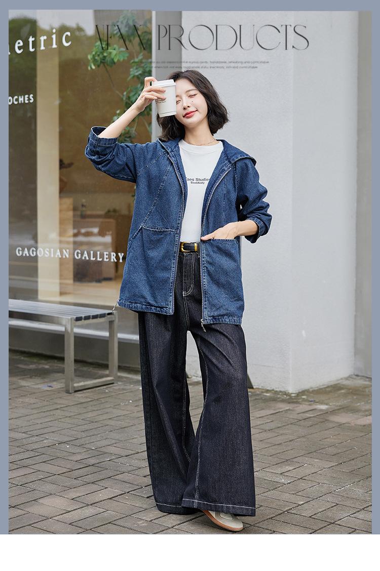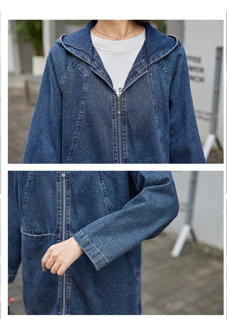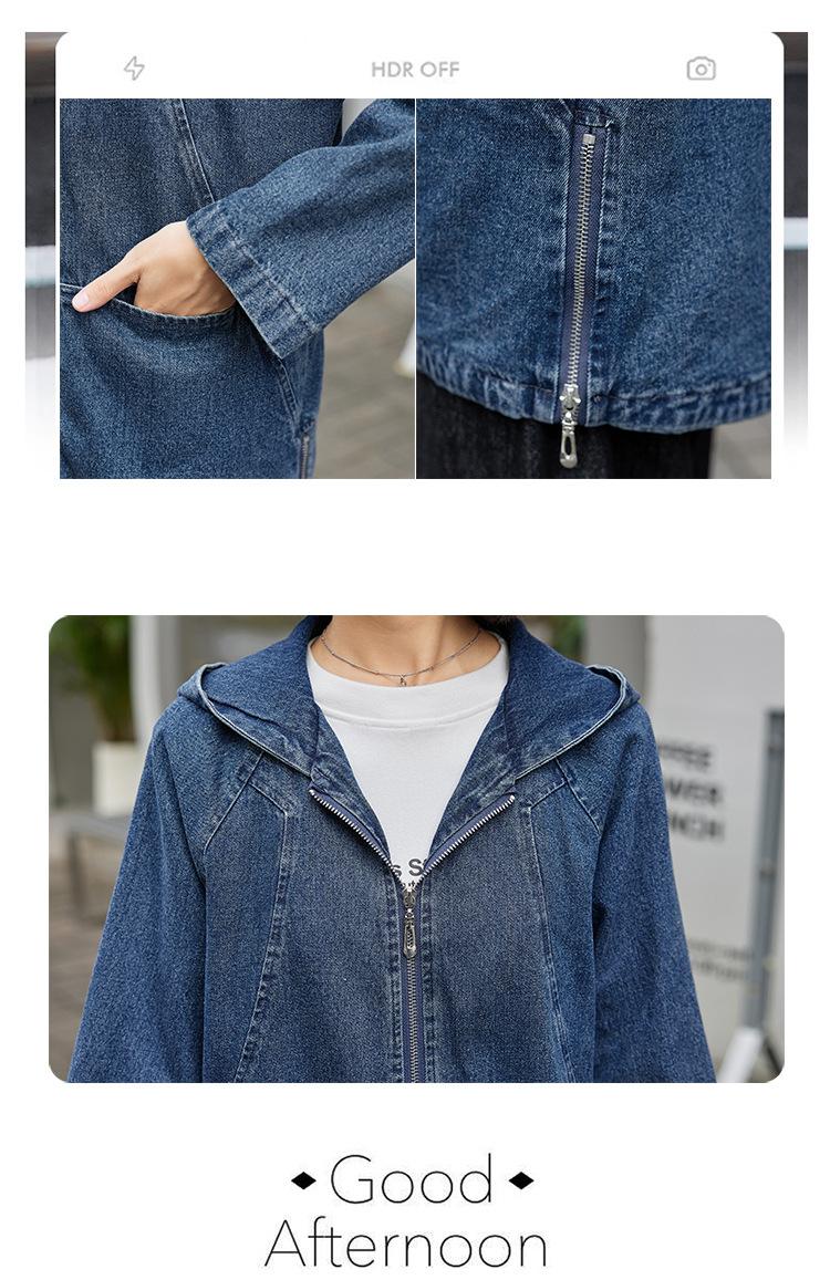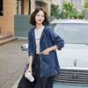 Abrigo de mezclilla de color sólido para mujer Primavera y Otoño 2024 Nuevo Madre de mediana edad talla grande Cubre vientre Adelgazante Reductor de edad Abrigo largo