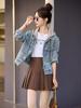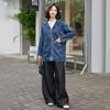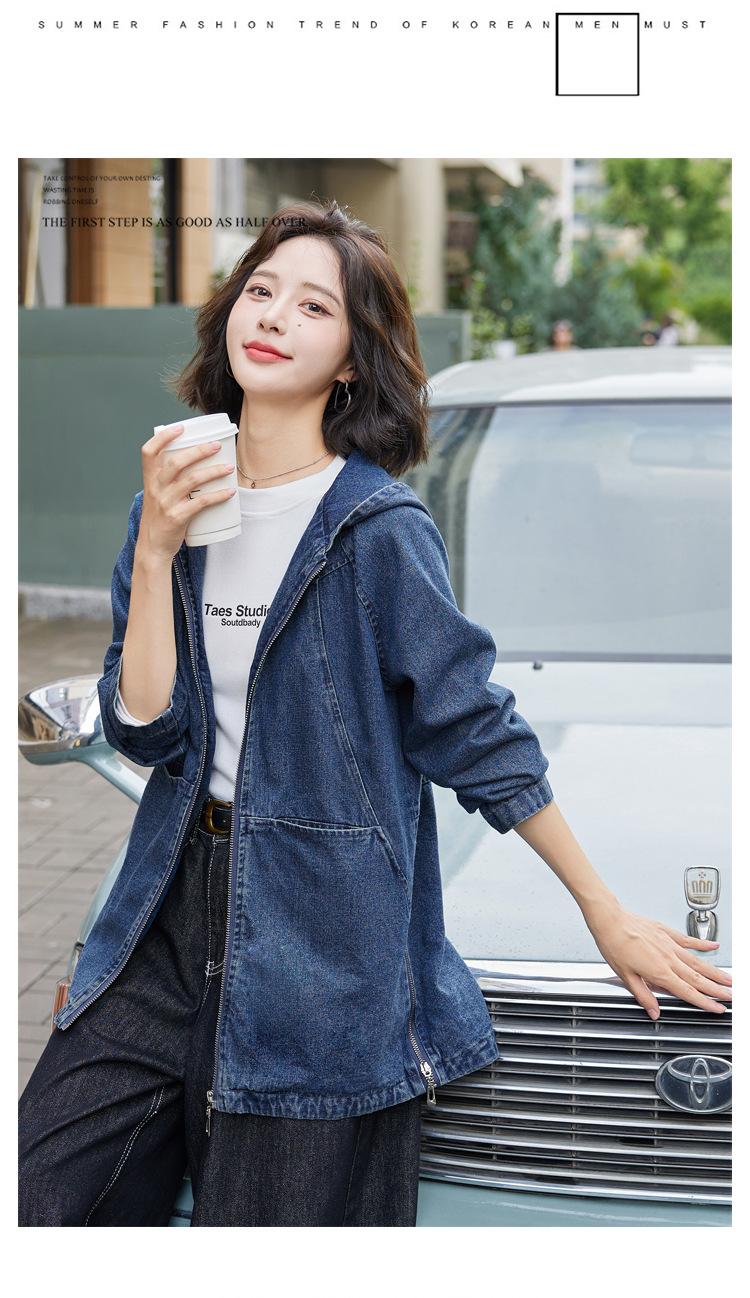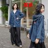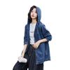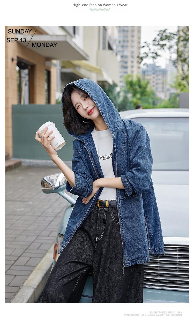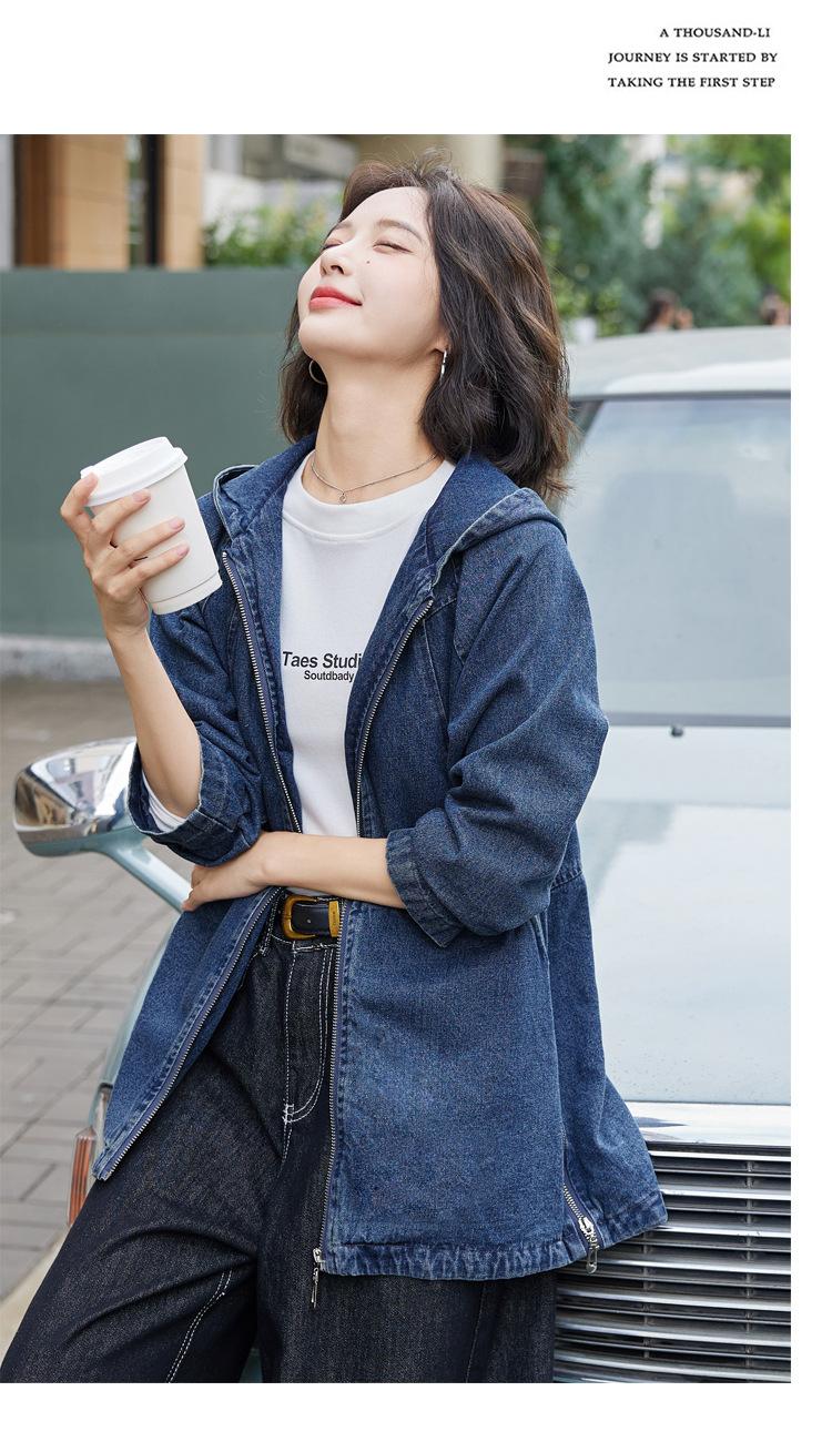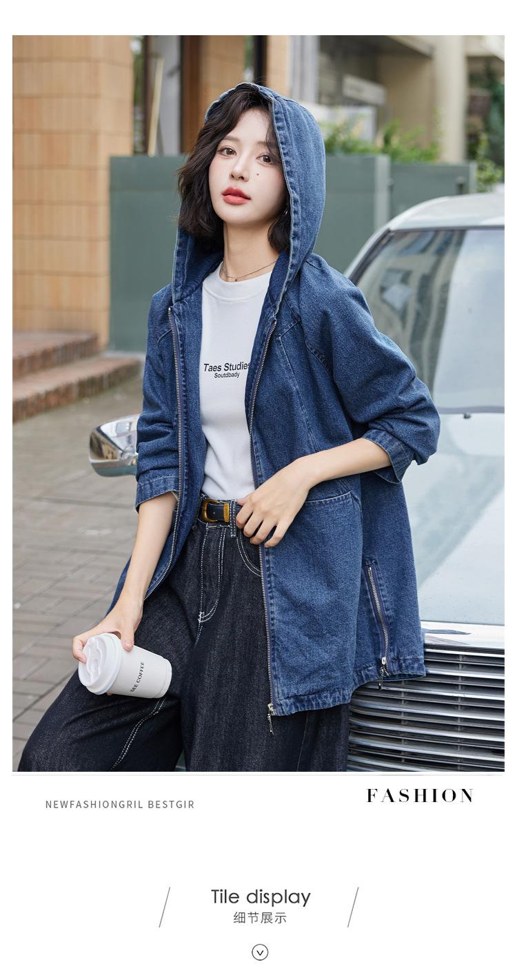 Abrigo de mezclilla de color sólido para mujer Primavera y Otoño 2024 Nuevo Madre de mediana edad talla grande Cubre vientre Adelgazante Reductor de edad Abrigo largo