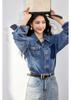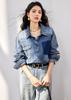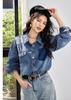 ¡Camisa vaquera de tiro real! Chaqueta vaquera estilo camisa con bolsillos en contraste y solapas lavadas estilo vintage