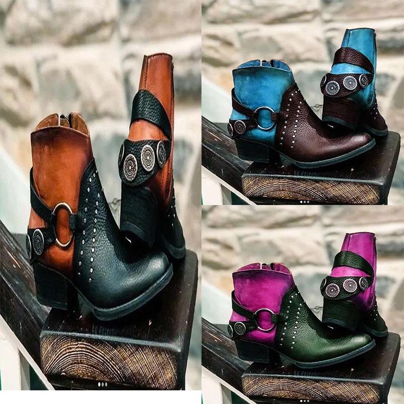 Botas de mujer de comercio exterior 2021, zapatos de mujer, botas de cuero de mujer de tacón medio de gran tamaño con cremallera lateral transfronteriza de Amazon