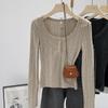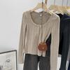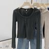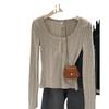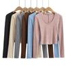 Cárdigan corto de punto de cuello en U ajustado de estilo retro americano nuevo para otoño e invierno 2025 para mujer, top camiseta interior