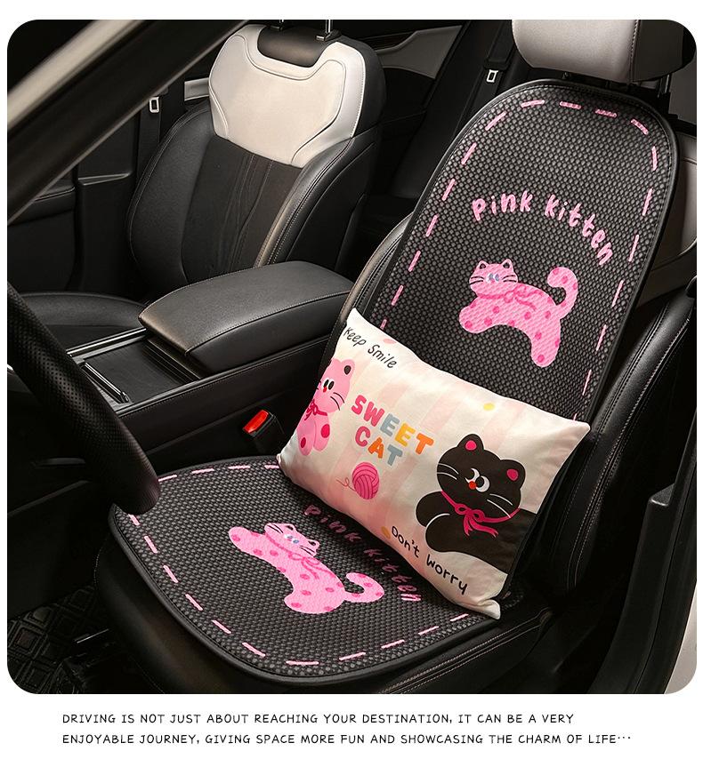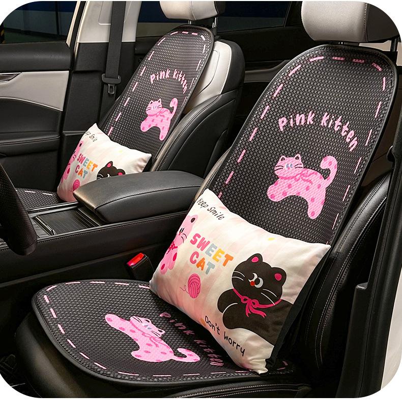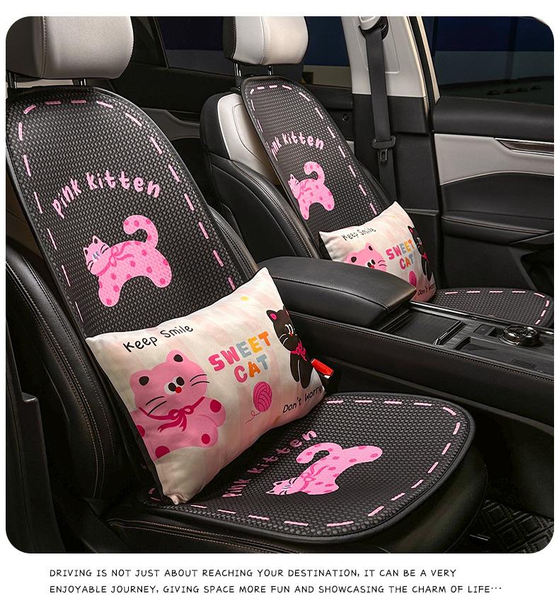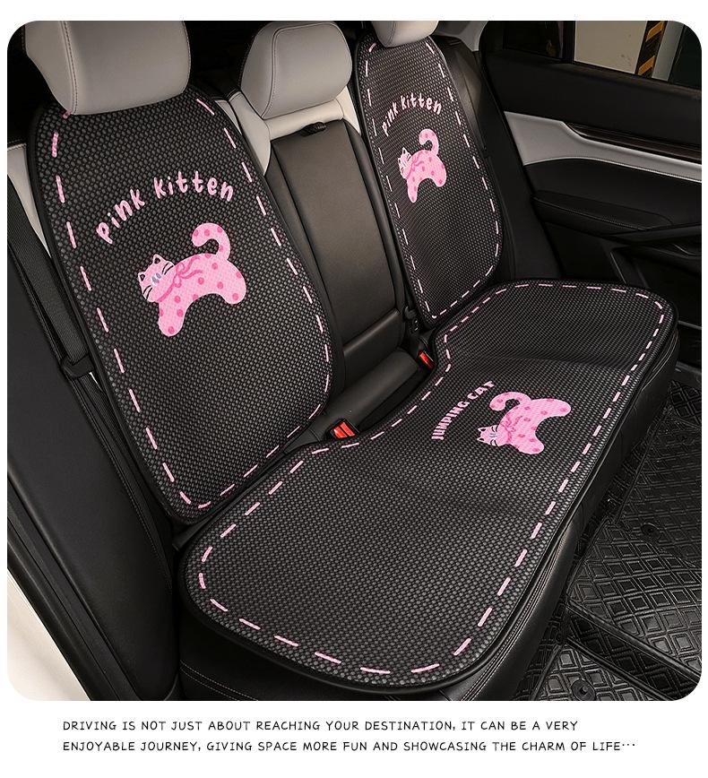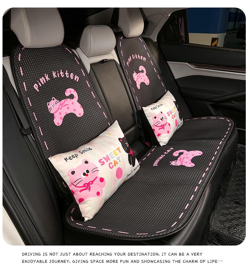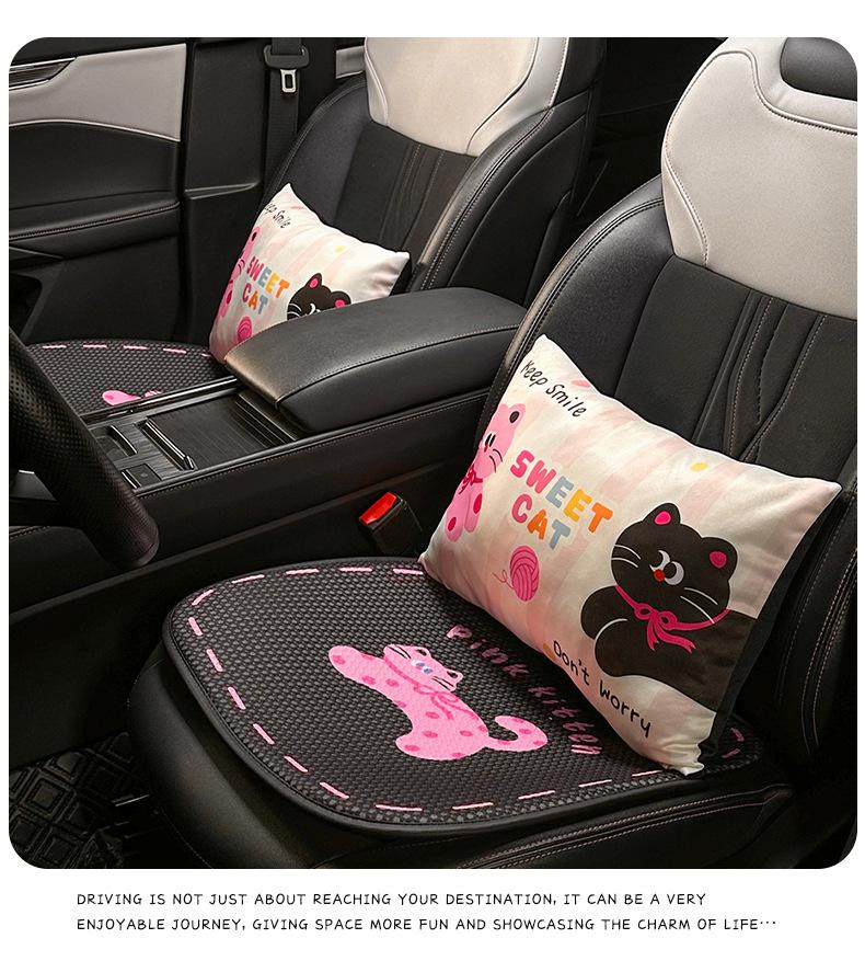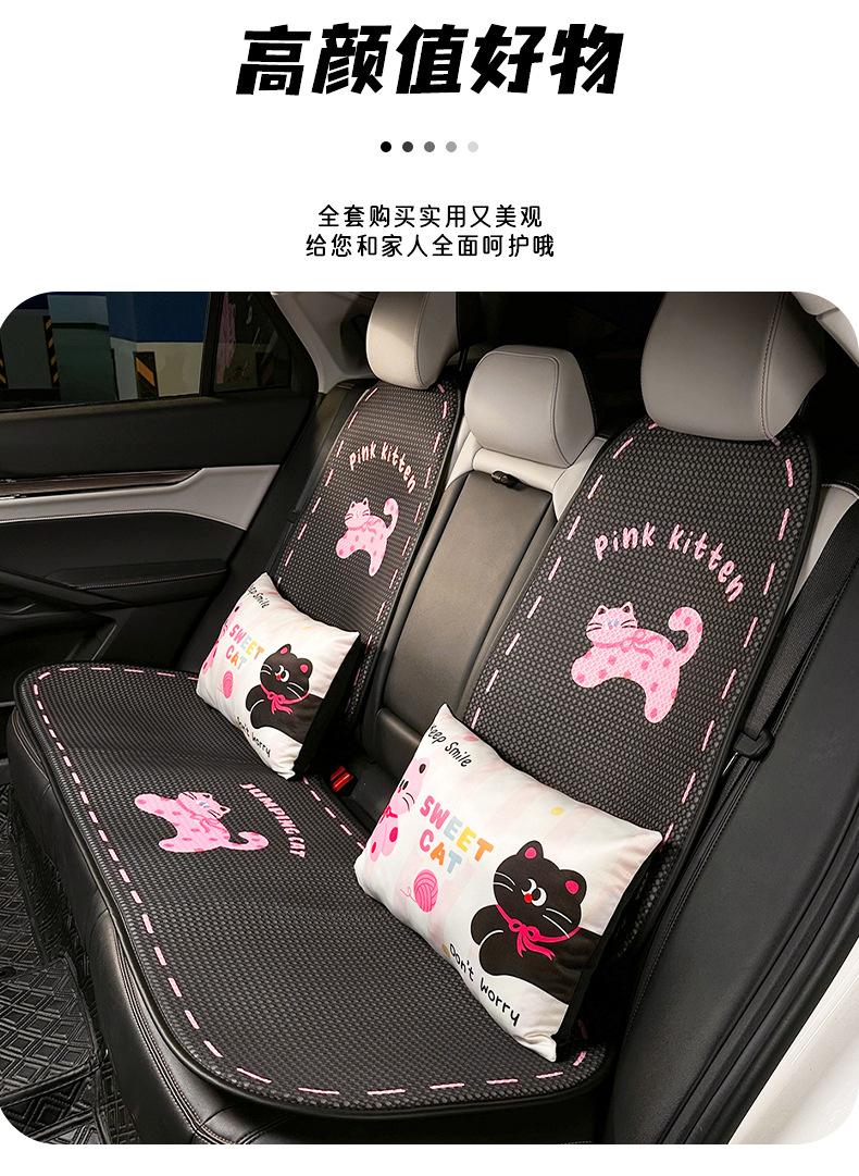 Cojín de coche con diseño de gato de dibujos animados, universal, transpirable, para las cuatro estaciones, antideslizante, de tres piezas