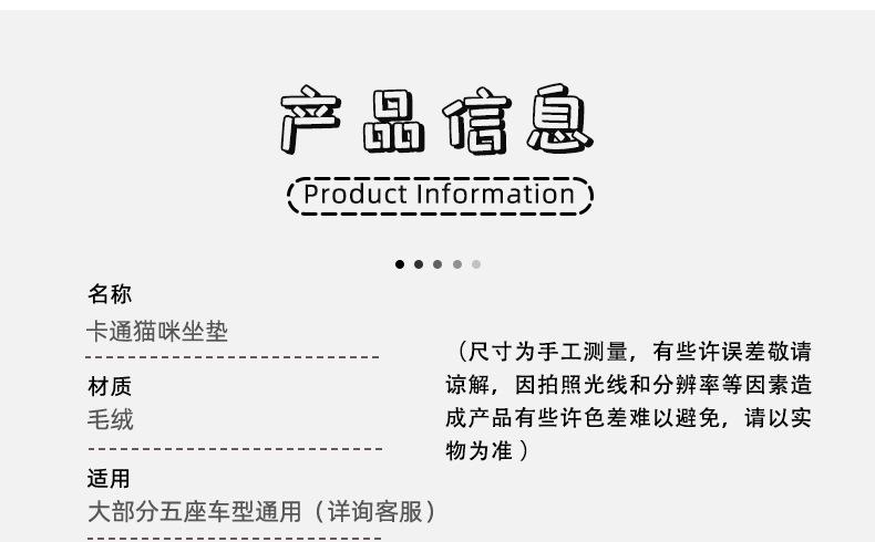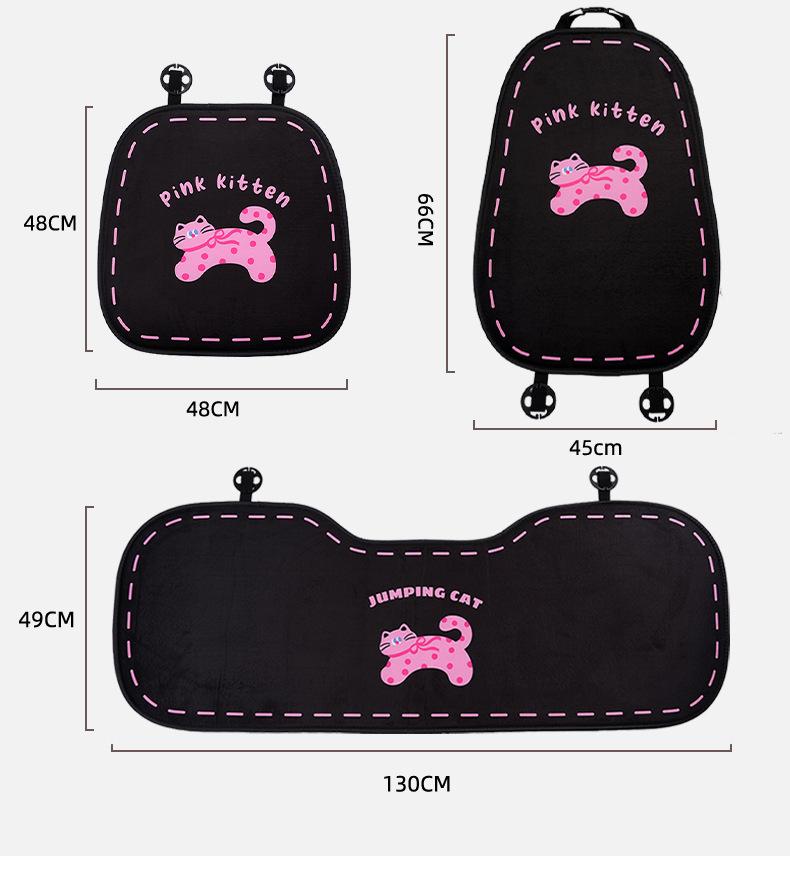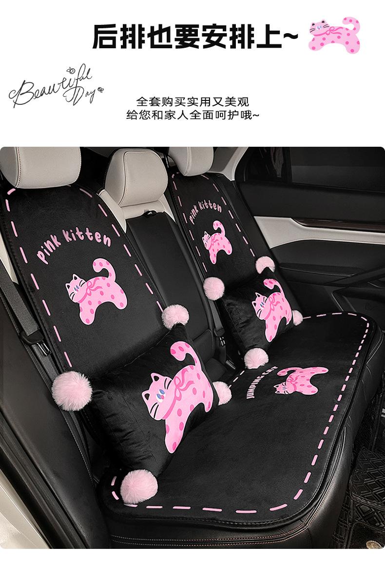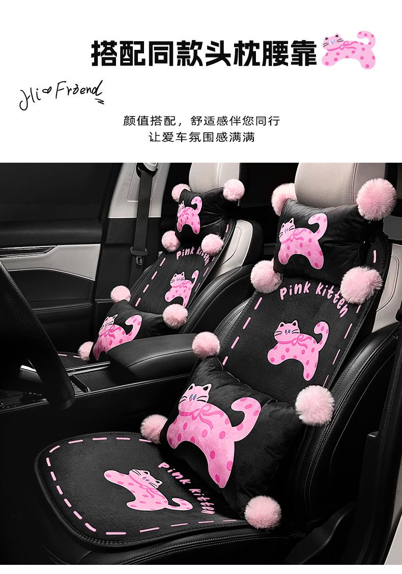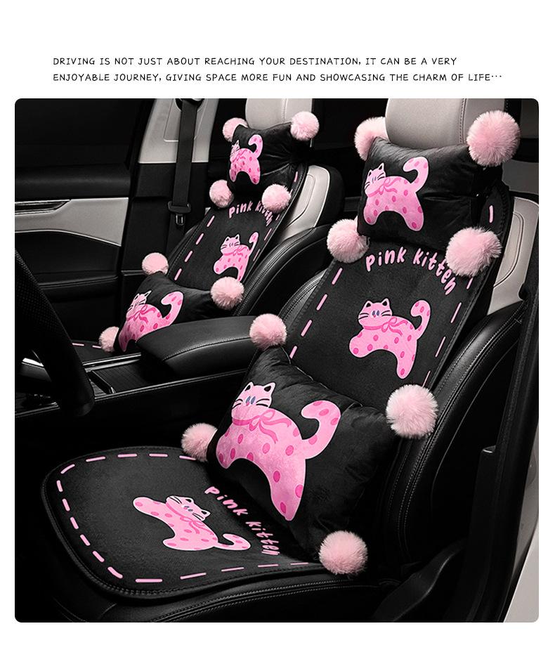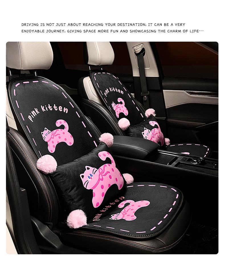 Cojín de coche con diseño de gato de dibujos animados, universal, transpirable, para las cuatro estaciones, antideslizante, de tres piezas