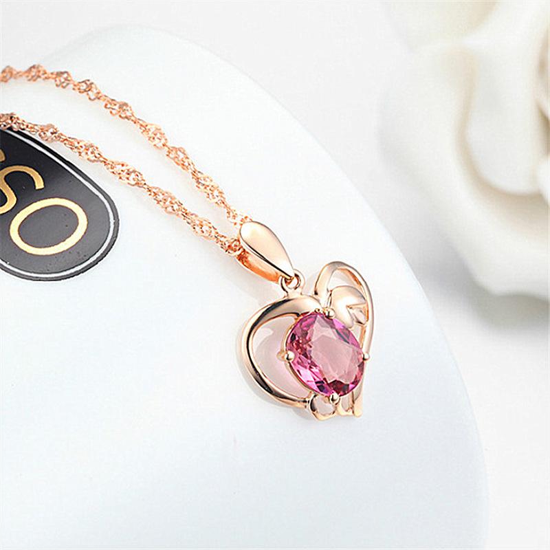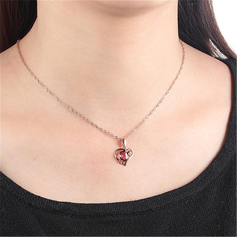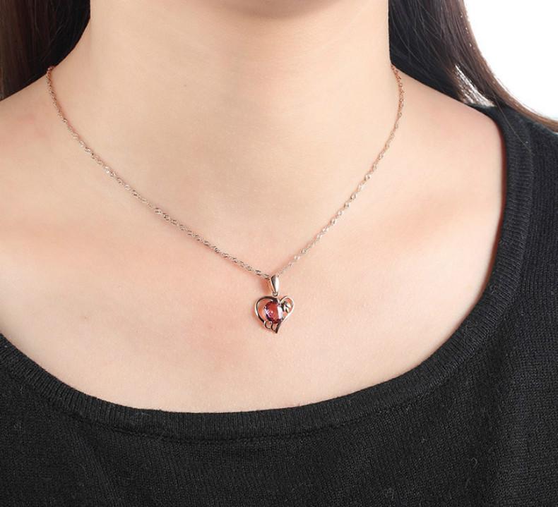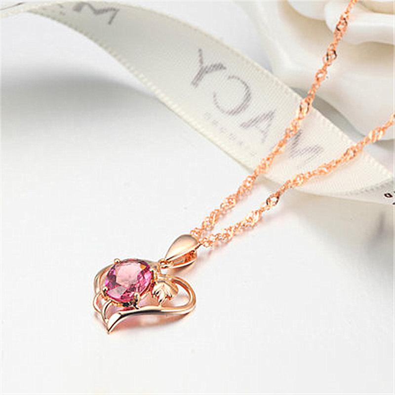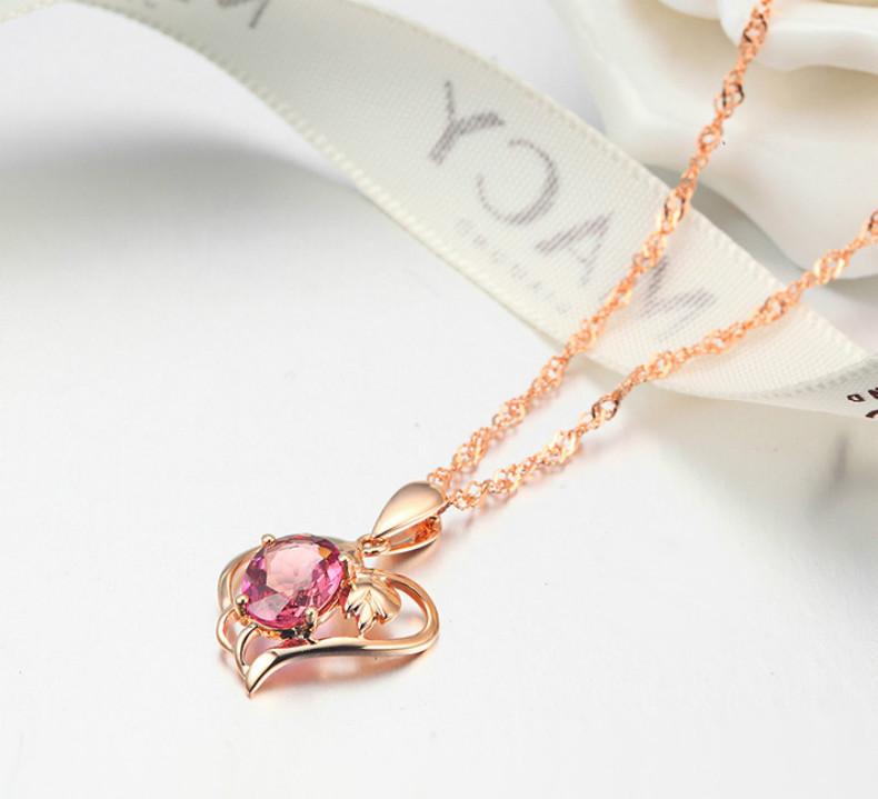 Collar con colgante de corazón de rubí y turmalina roja de oro natural de 18 quilates estilo coreano, colgante de hoja de amor de turmalina roja