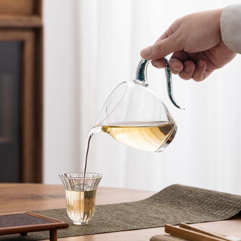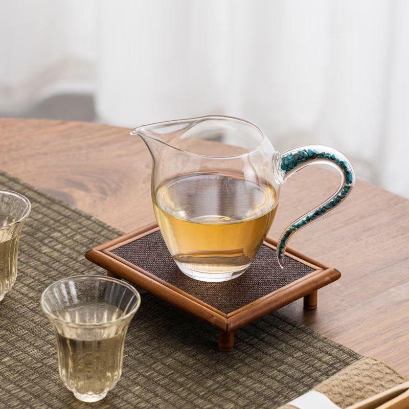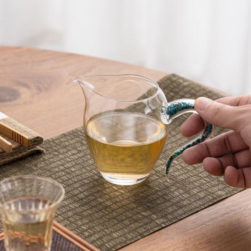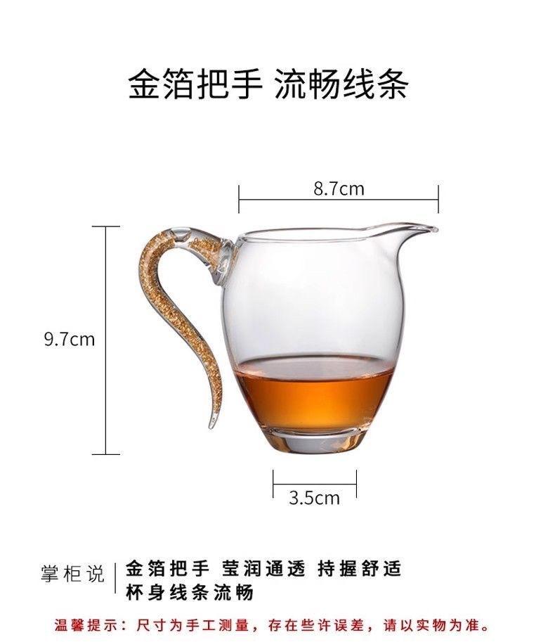 Copa Justa de Lámina de Oro, Copa de Vidrio Transparente Resistente al Calor, Copa para Compartir Té de Alta Gama, Herramienta de Té Kung Fu, Té Zen, Filosofía Zen