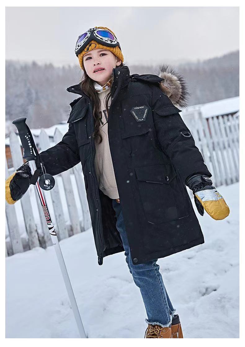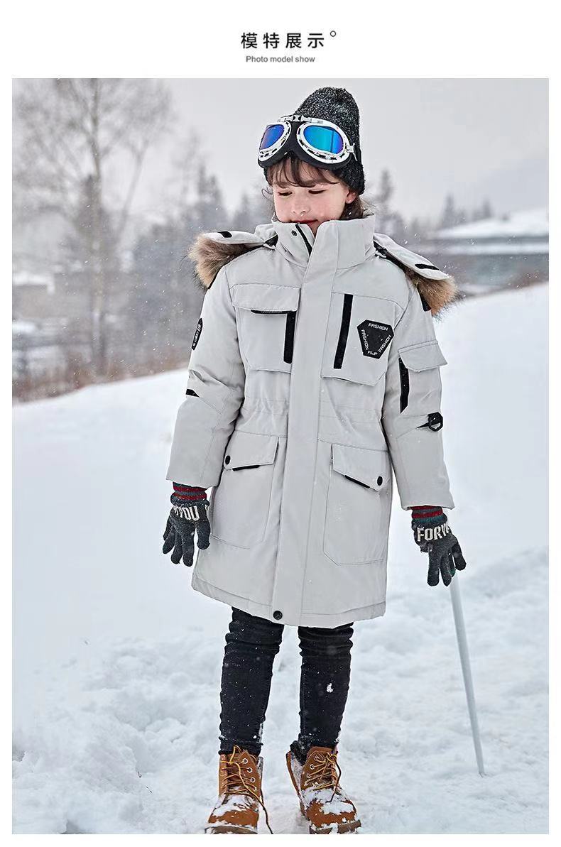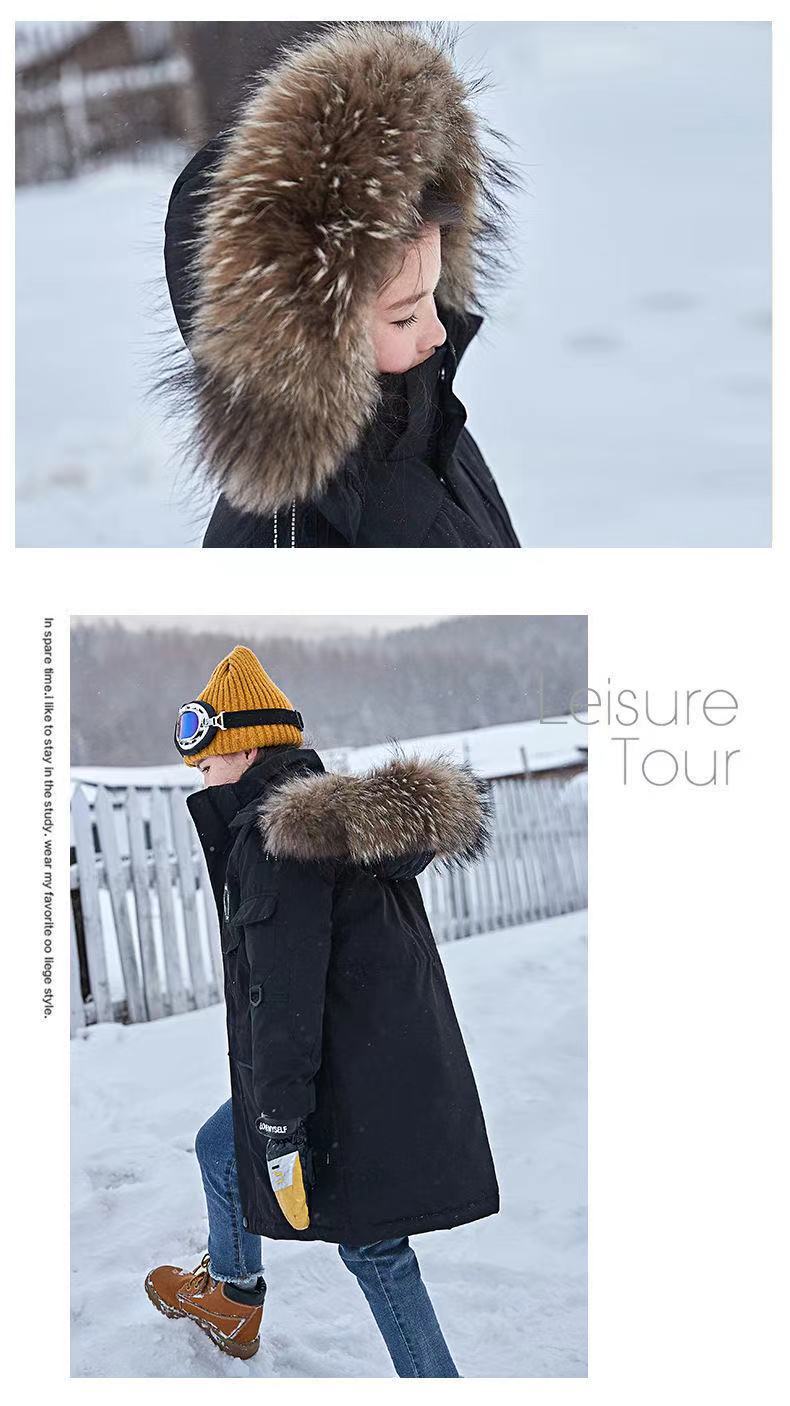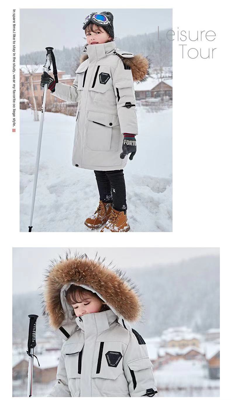 Chaqueta de Plumón para Niños Invierno algodón y engrosamiento Cálido Cuello Grande de Lana a la Moda Plumón de Pato Blanco Capucha Ropa de Invierno para Niños y Niñas
