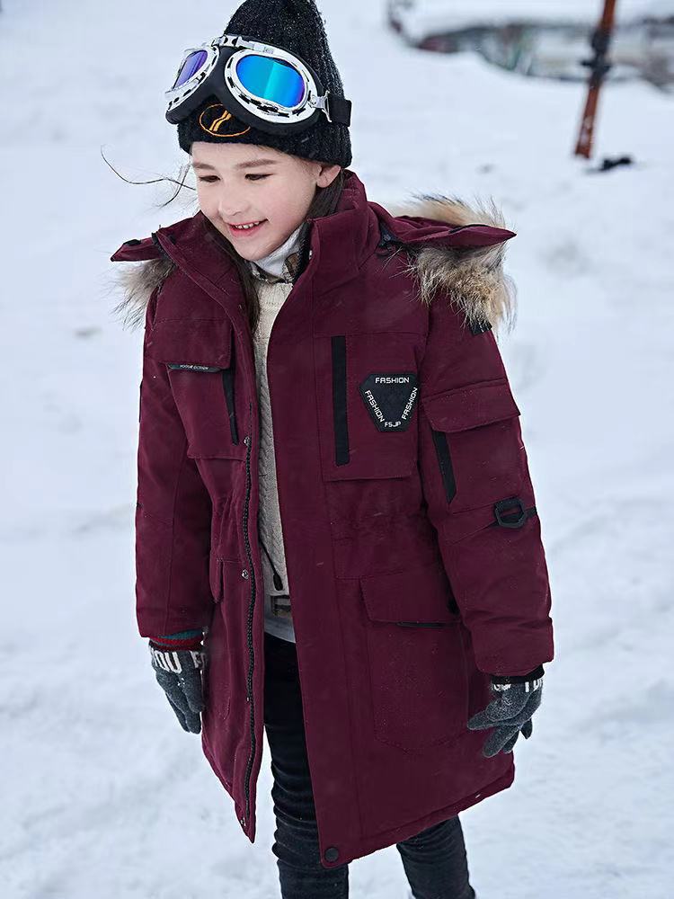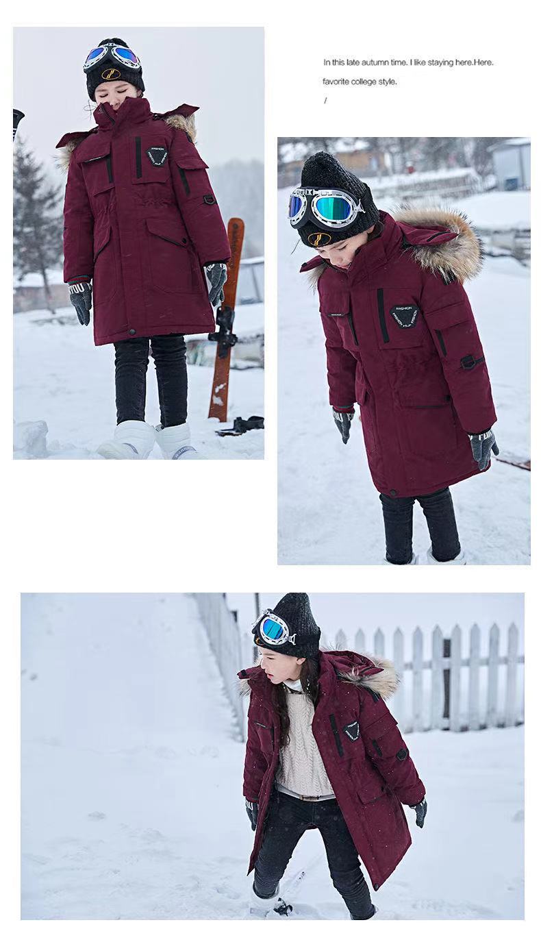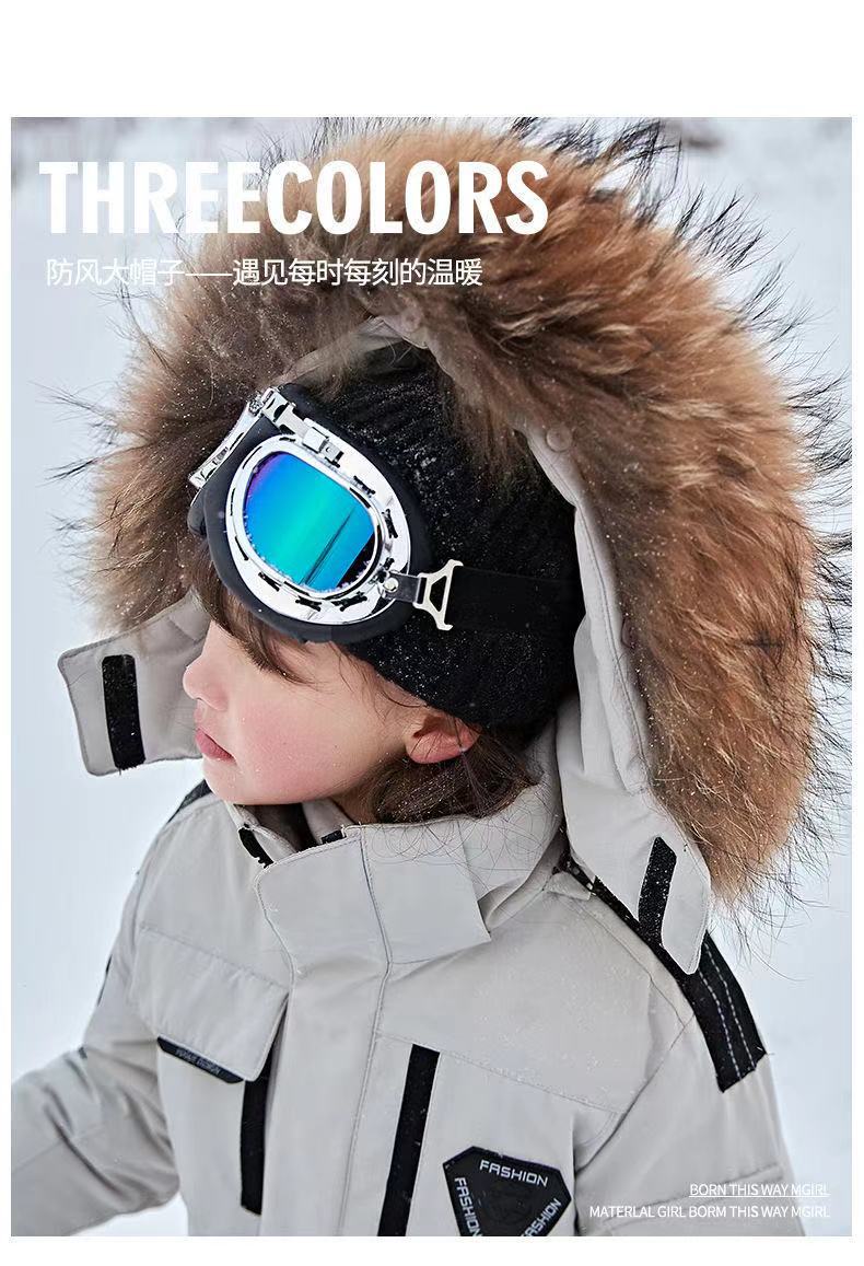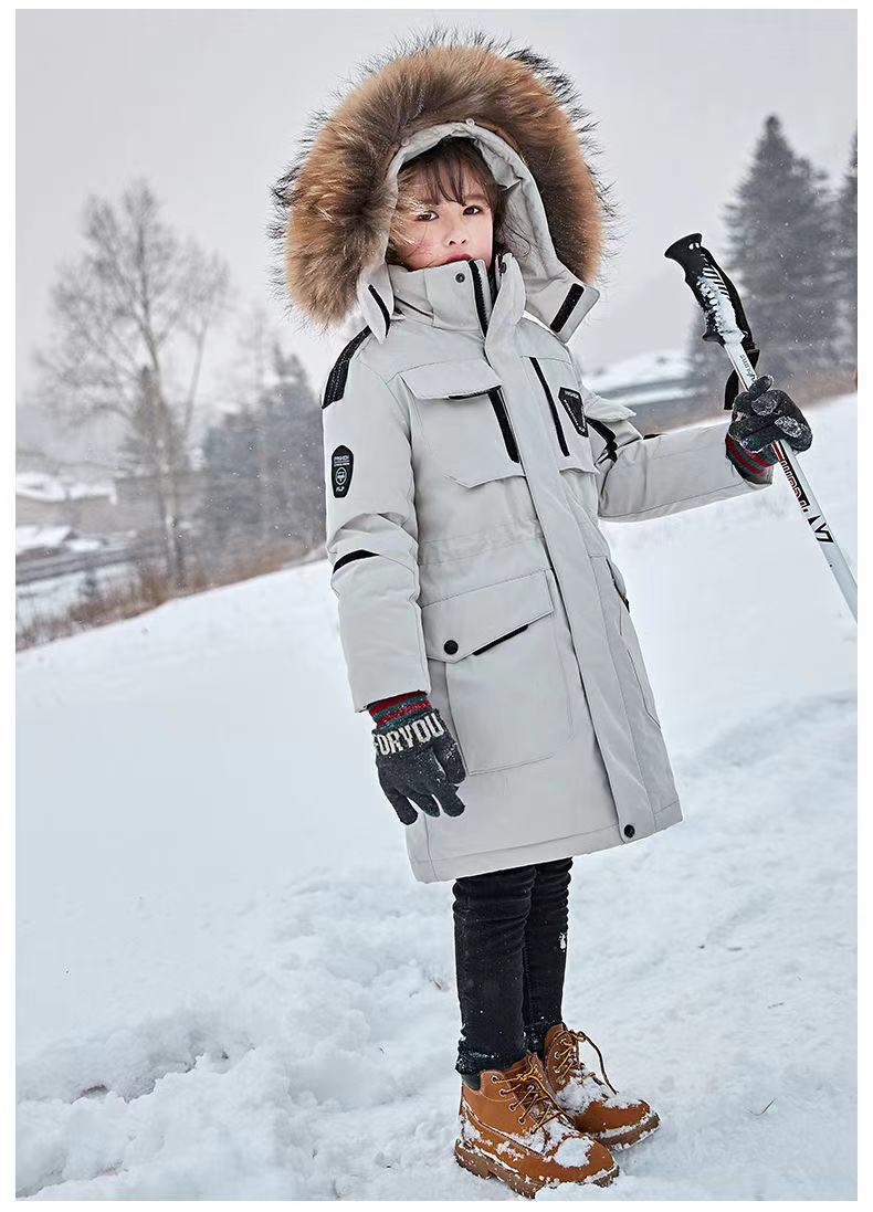 Chaqueta de Plumón para Niños Invierno algodón y engrosamiento Cálido Cuello Grande de Lana a la Moda Plumón de Pato Blanco Capucha Ropa de Invierno para Niños y Niñas