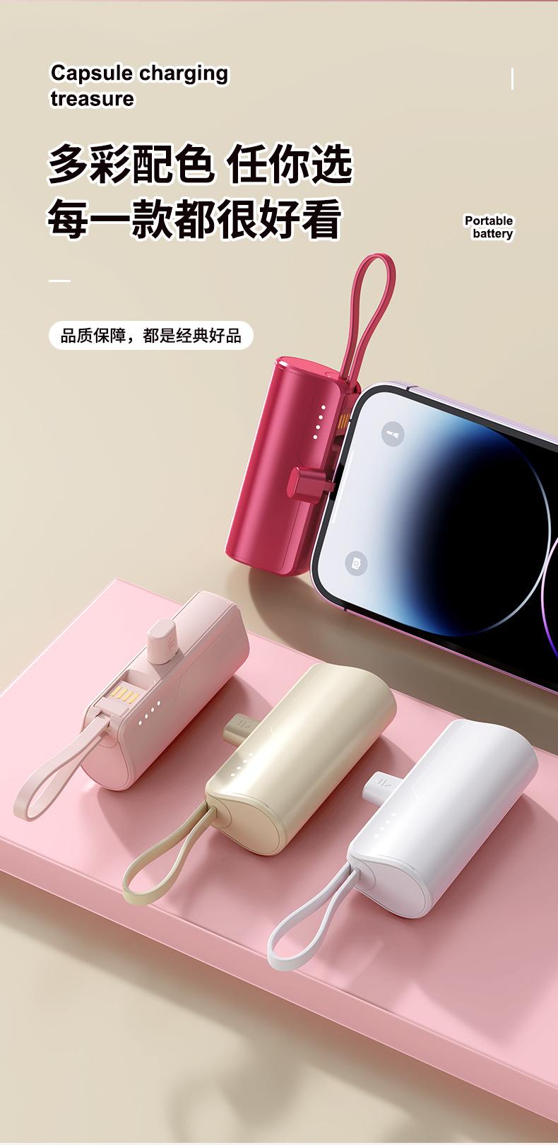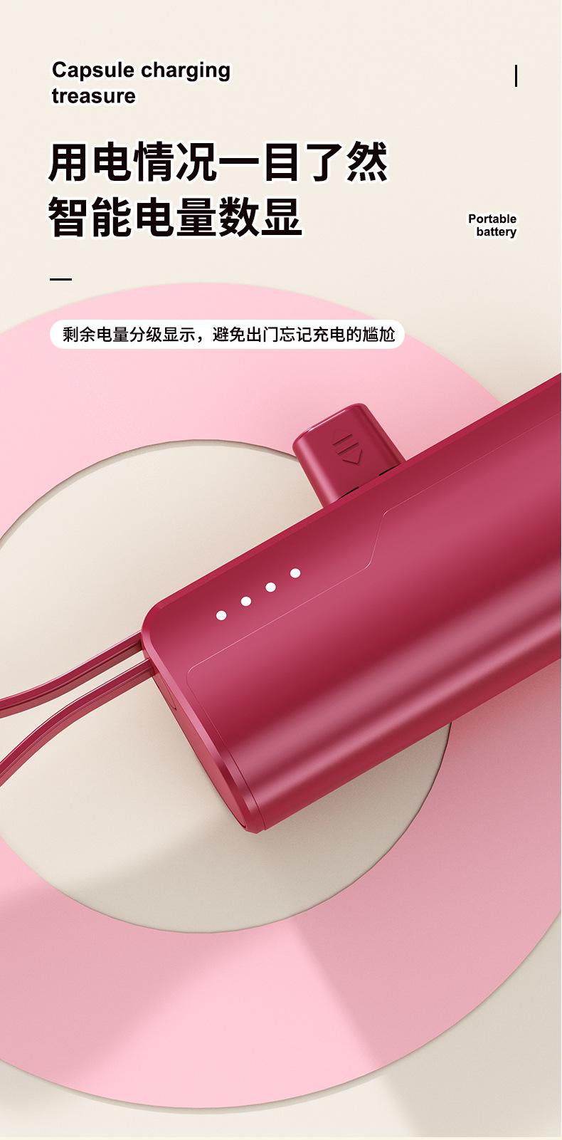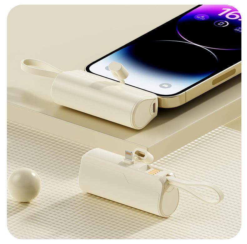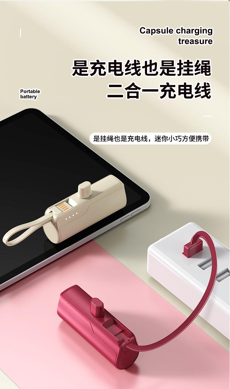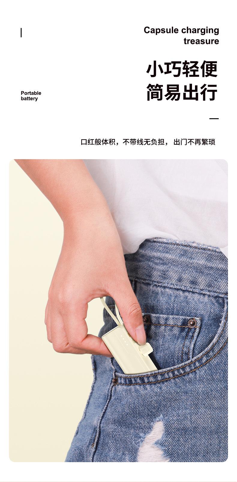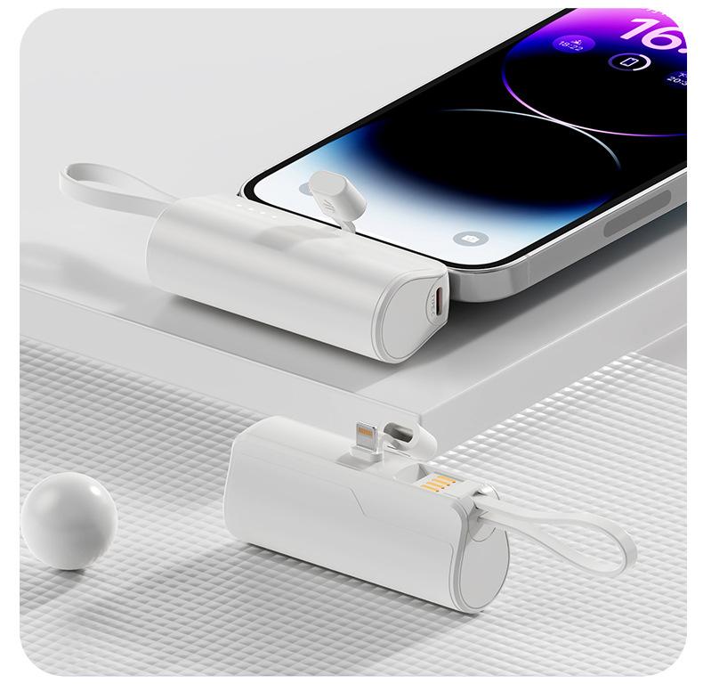 Mini Batería Externa Portátil de Bolsillo de 5000 mAh con Cable Integrado, Fuente de Alimentación Móvil Compacta con Forma de Cápsula con Impresión de Logotipo y Carga Rápida