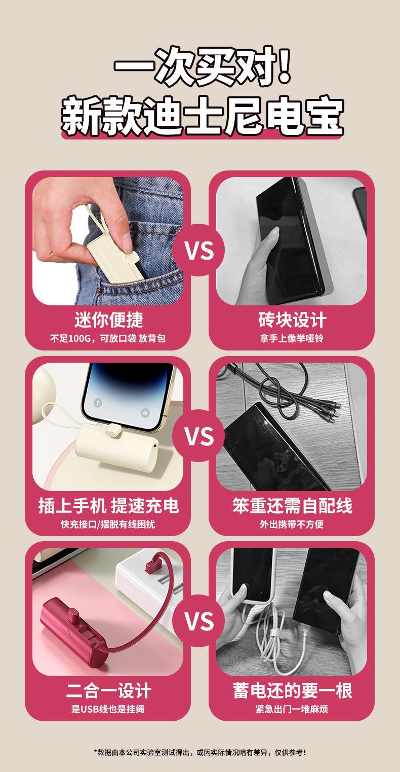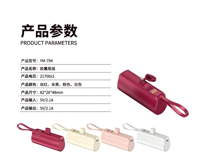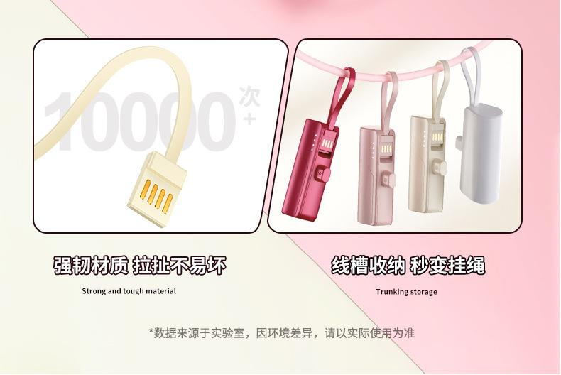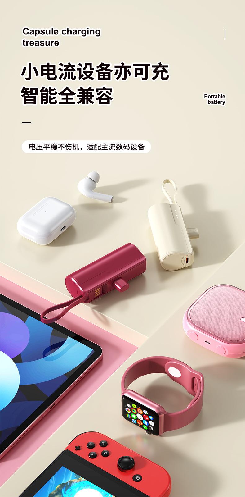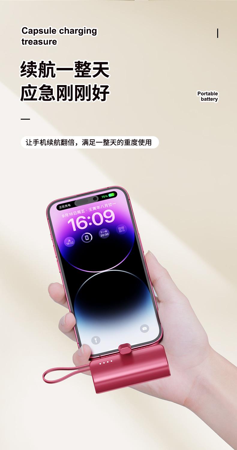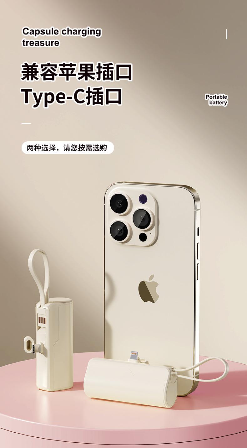 Mini Batería Externa Portátil de Bolsillo de 5000 mAh con Cable Integrado, Fuente de Alimentación Móvil Compacta con Forma de Cápsula con Impresión de Logotipo y Carga Rápida