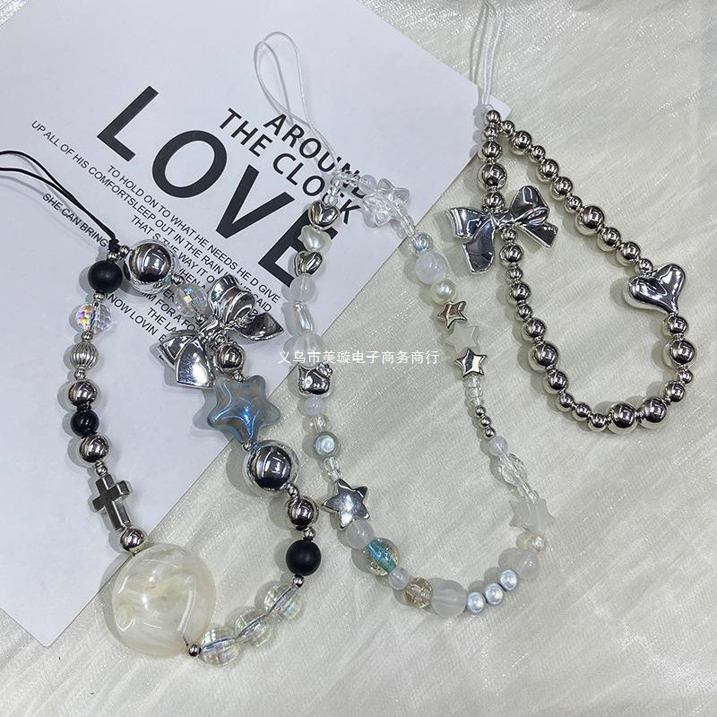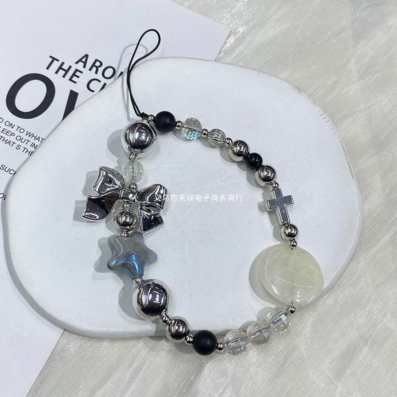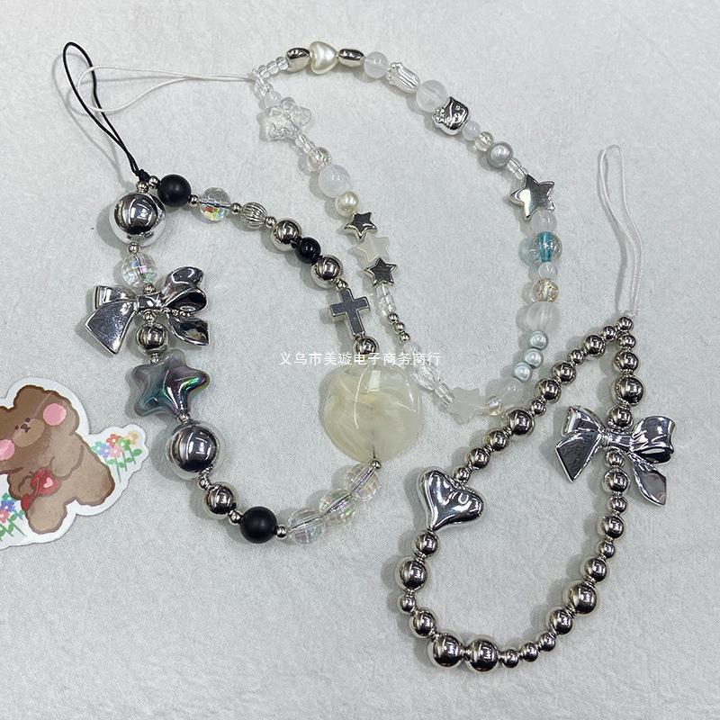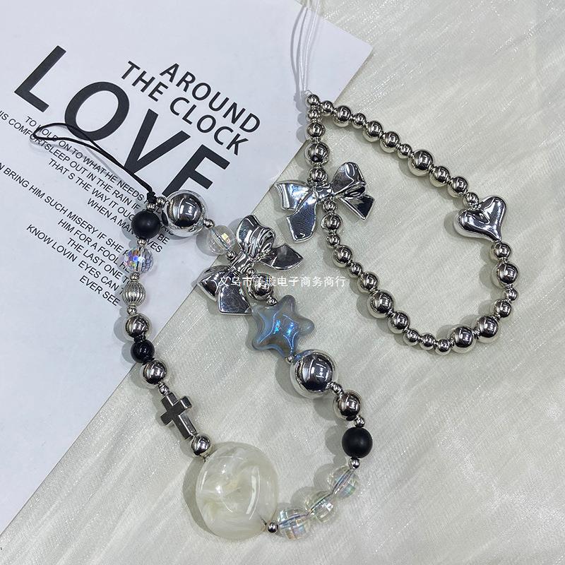 Corea del Sur Cool Negro Estilo Nicho Cordón para Teléfono Móvil DIY Accesorios para Carcasa de Teléfono Móvil Cadena para Teléfono Móvil Adornos Colgantes para Bolso Colgante para Bolso