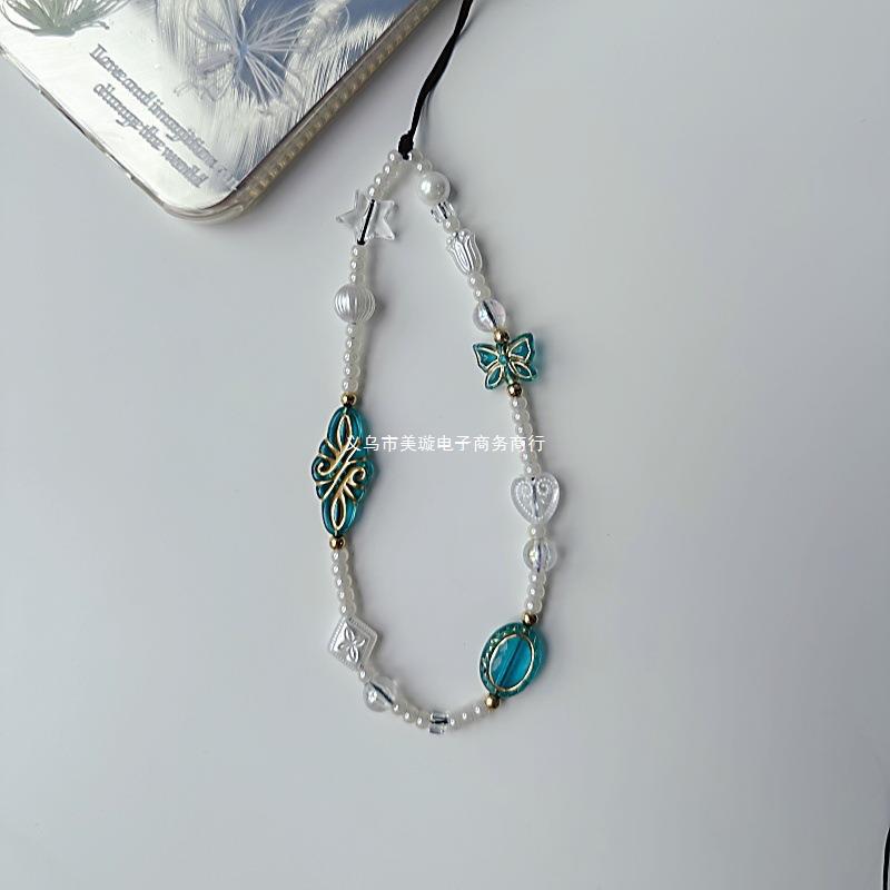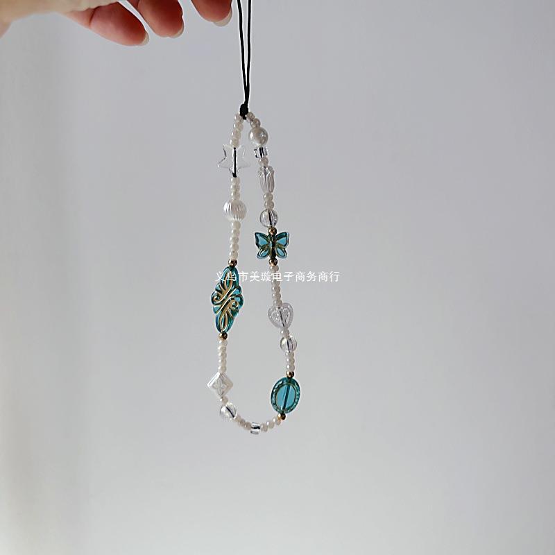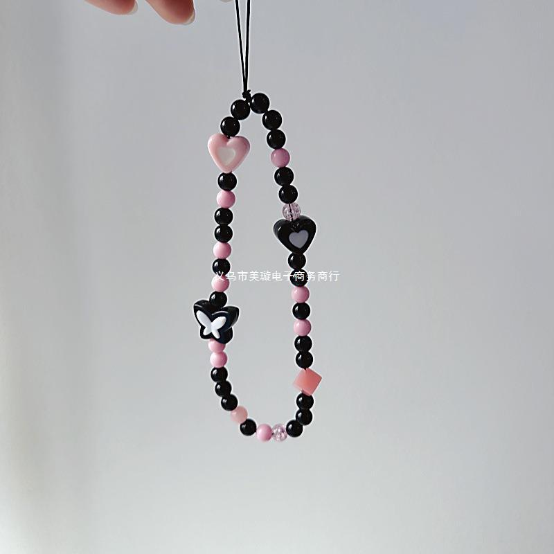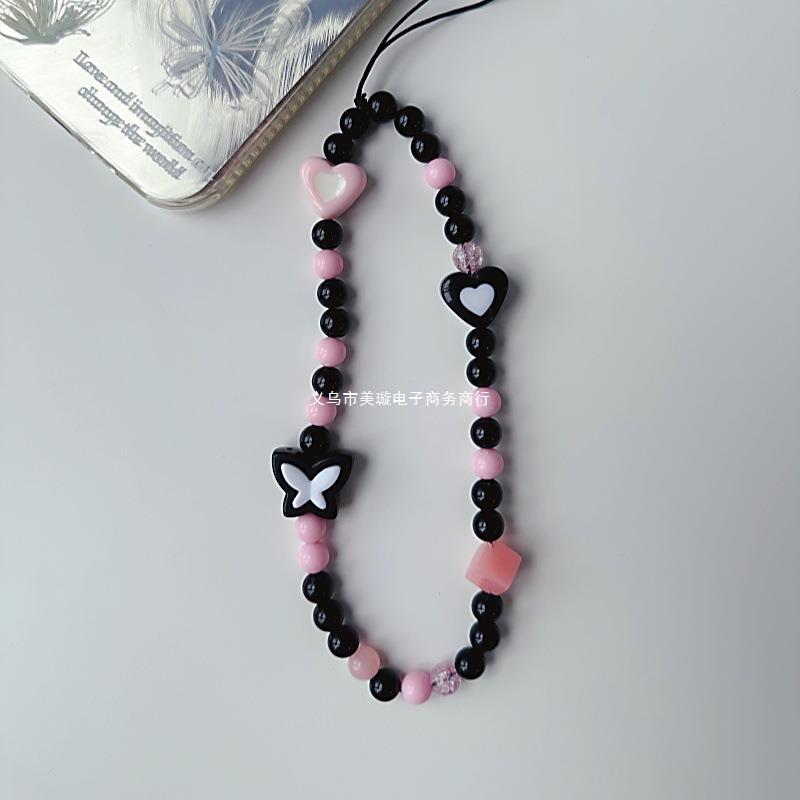 Cadena para teléfono móvil con diseño de mariposa en blanco y negro, bonita cadena colgante para cámara CCD para niña, colgante para teléfono móvil con diseño de mariposa en blanco y negro