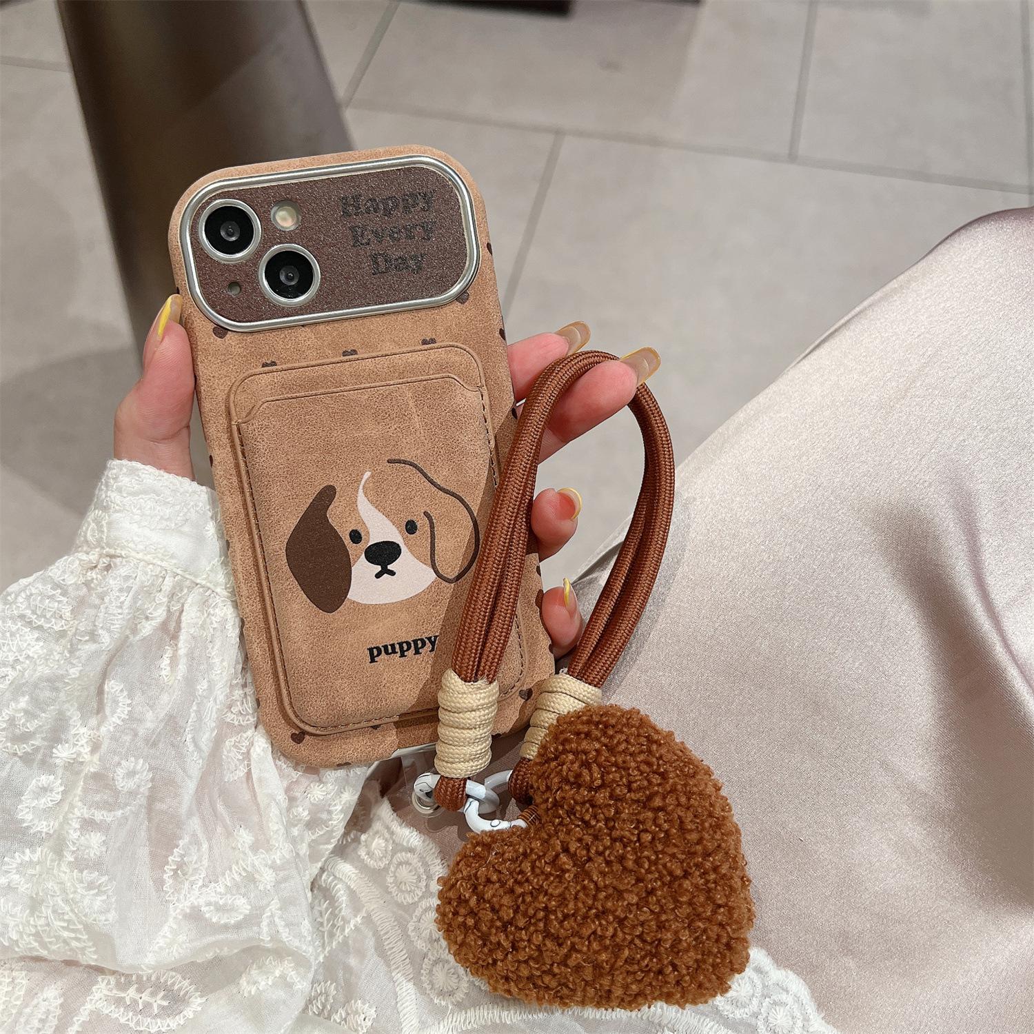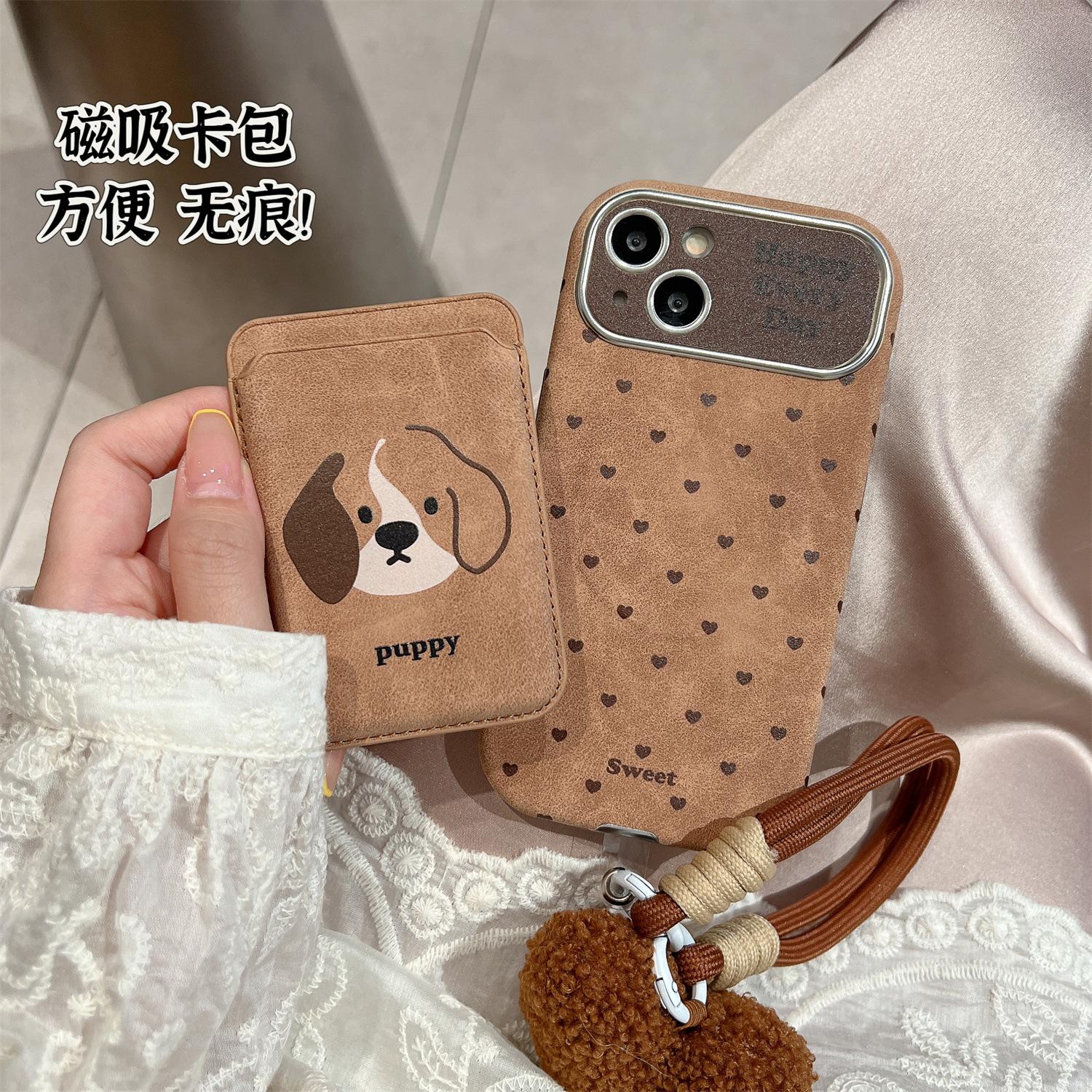 Funda de cuero creativa Love, adecuada para Apple 16 Pro Max, iPhone 15, bolsa magnética para tarjetas de cachorro, portátil de 14 pulgadas