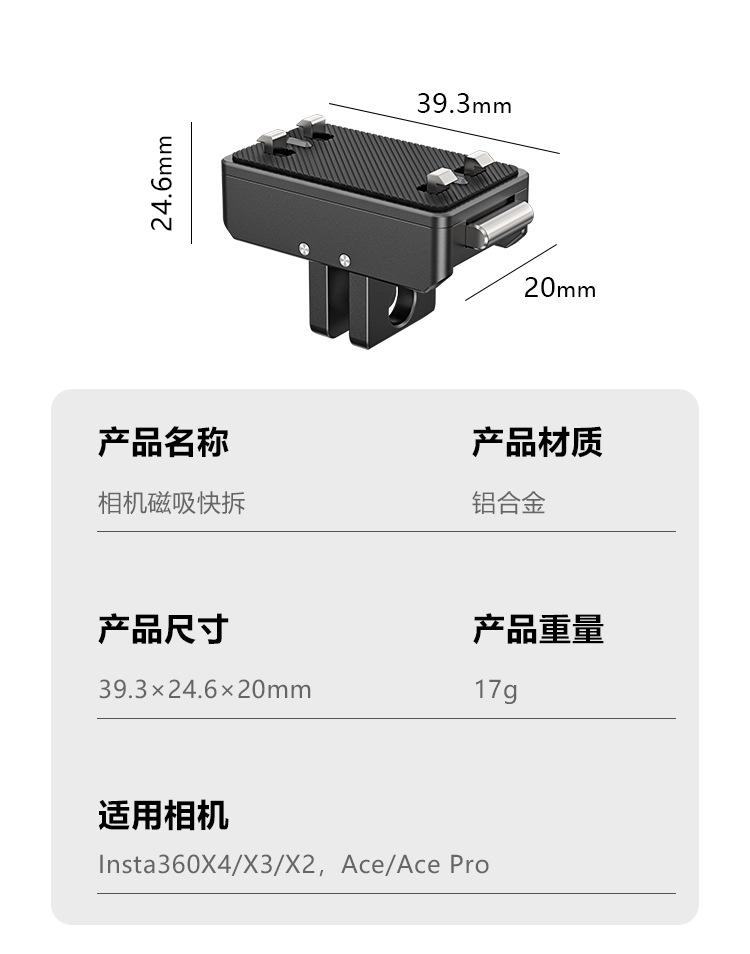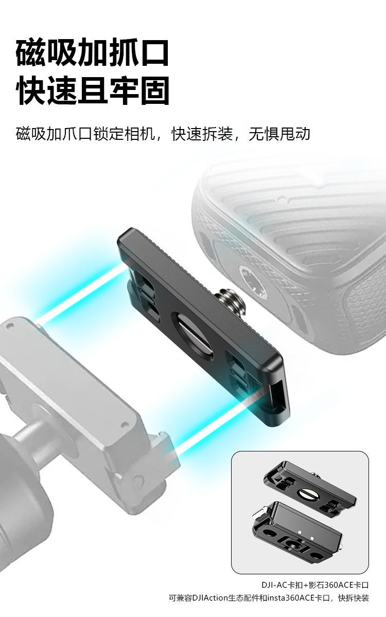 Shadowstone Insta360Ace Cámara de Acción Panorámica Base Metal Soporte Magnético Colgante para Cuello Accesorios Liberación Rápida Magnética