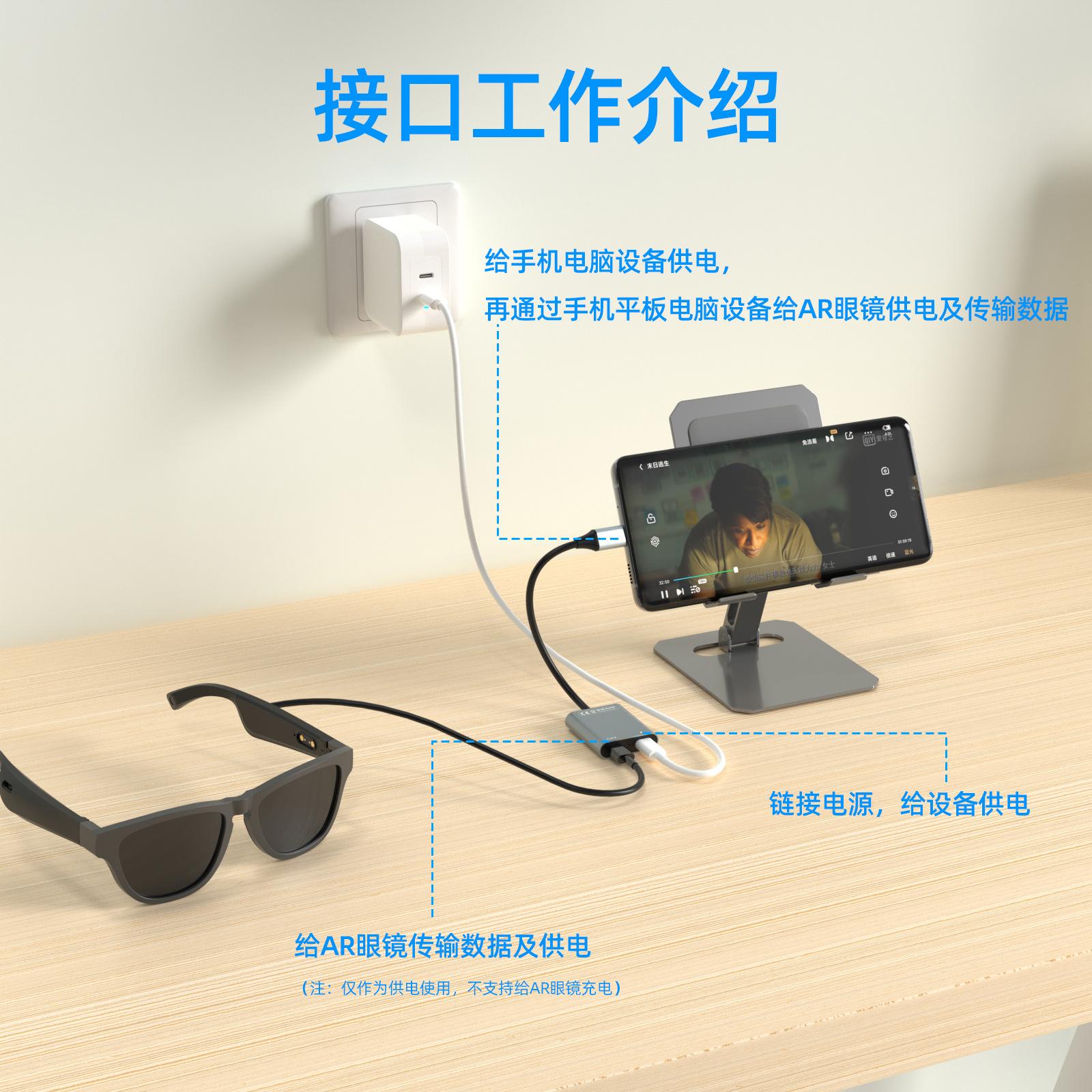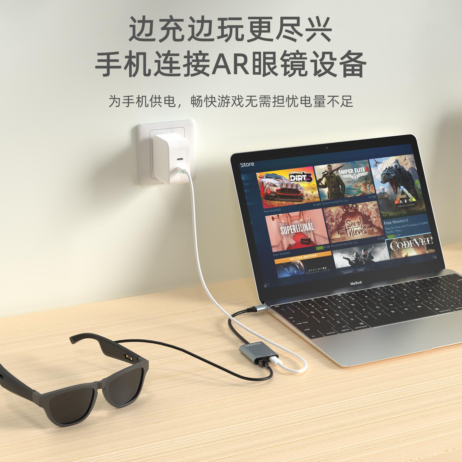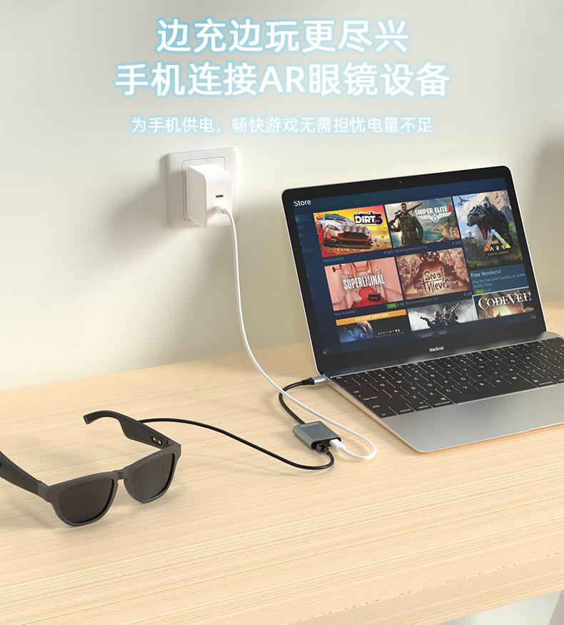 ARVR glasses adapter HUB mobile phone tablet charging type-C electric data transmission two-in-one live broadcast adapter