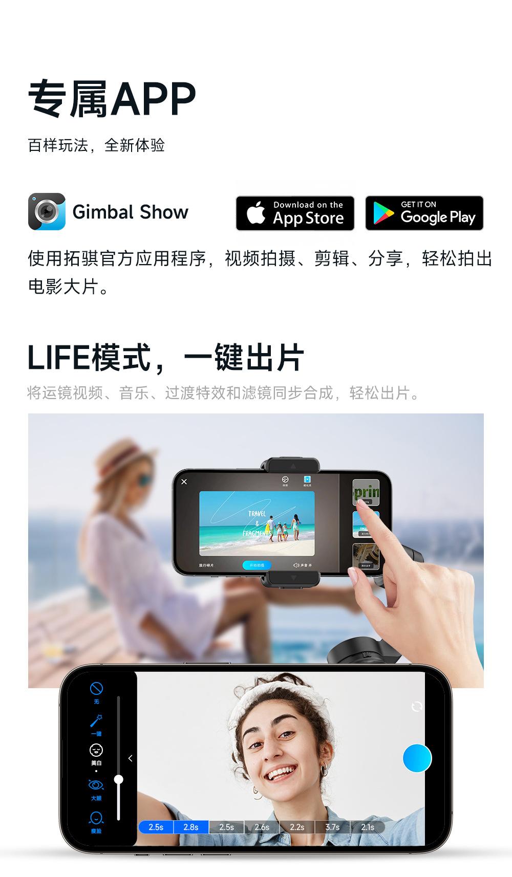 [m02+ magnetic fill light] intelligent three-axis gimbal stabilizer