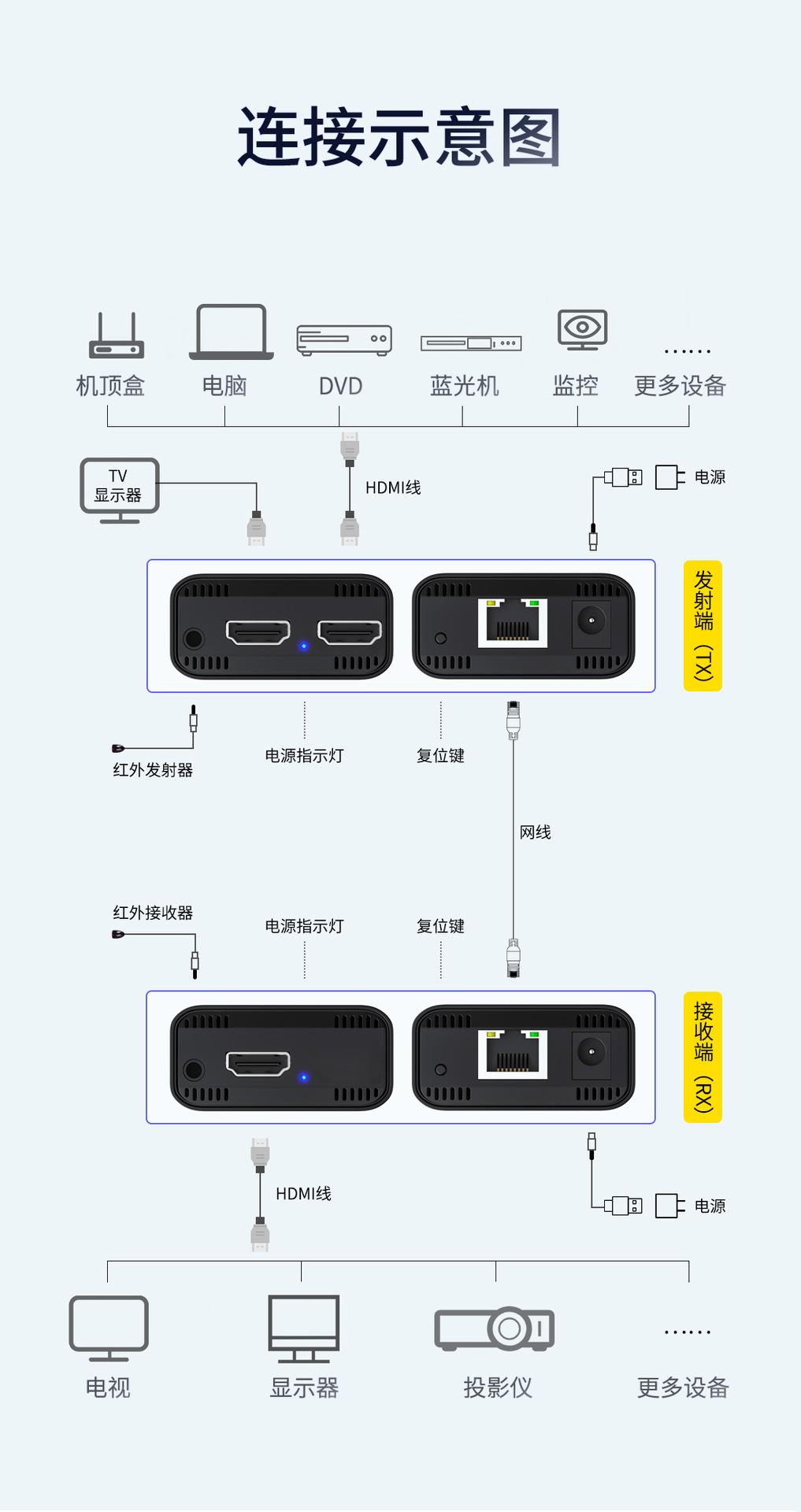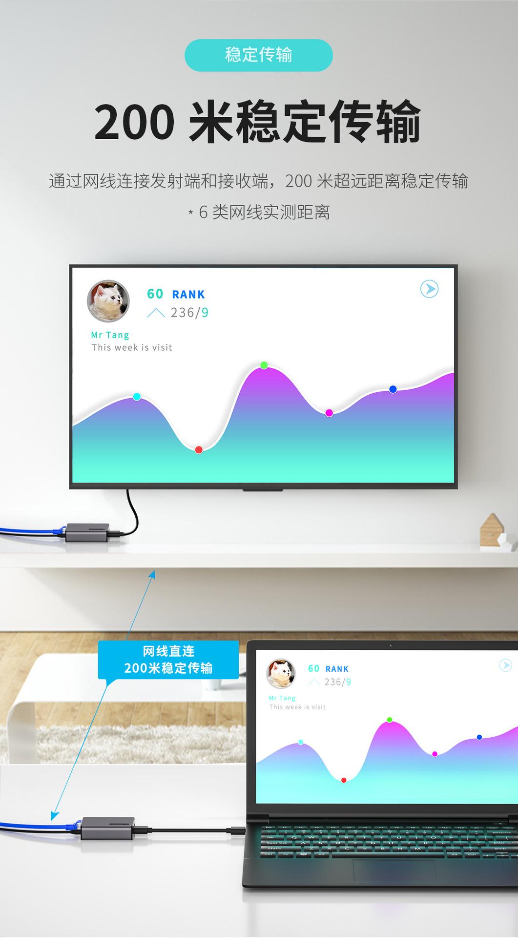 Extensor HDMI 200 M RJ45 a HDMI, extensión de señal de transmisión de red, amplificador de transmisión y recepción