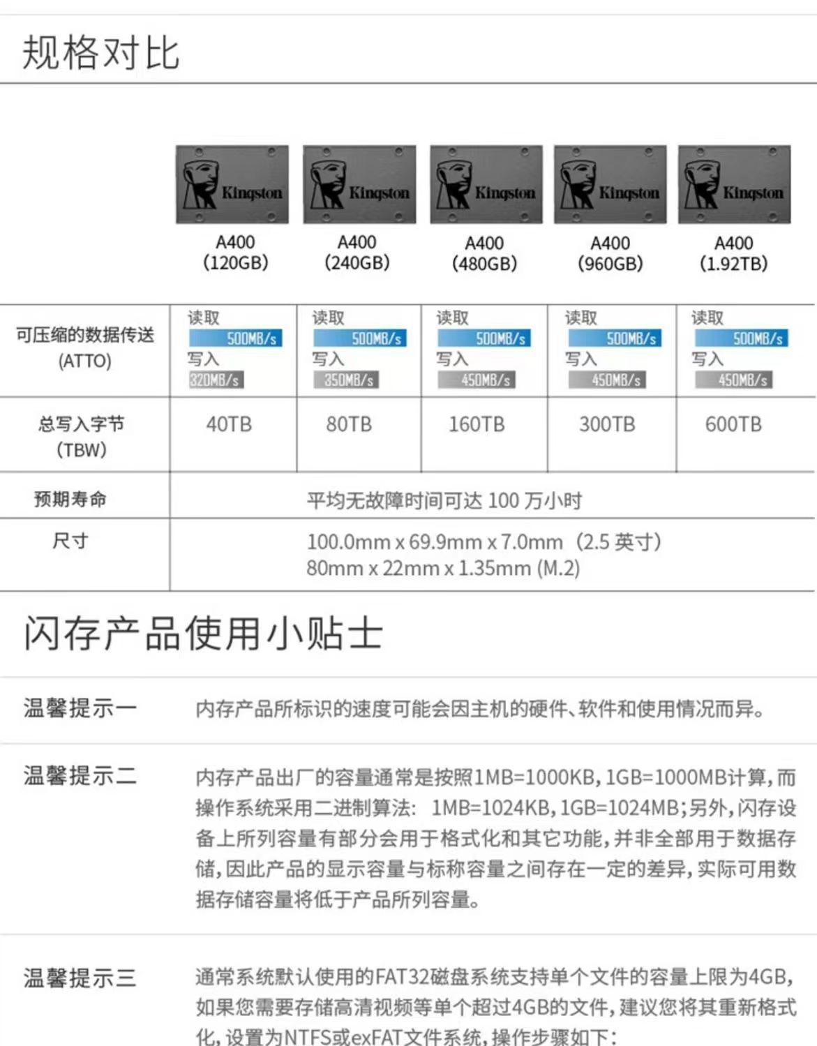 A400 SATA3.0(240G), A400 SATA3.0(480G), A400 SATA3.0(960G)