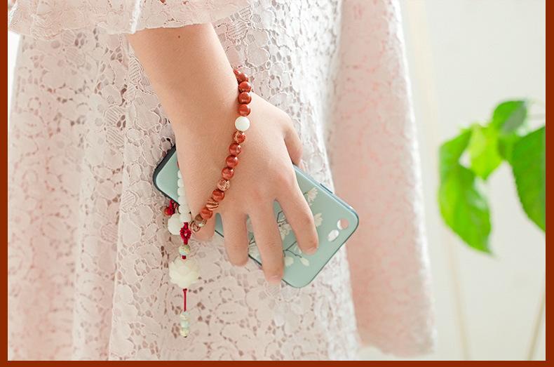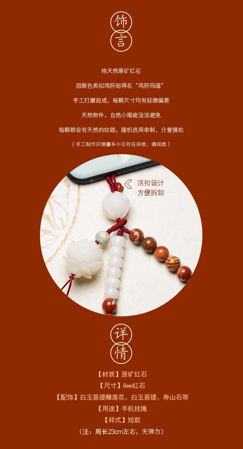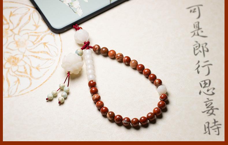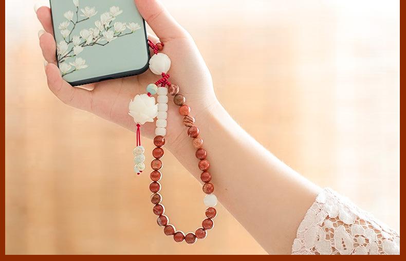 Cadena para teléfono móvil Bodhi de ágata roja de mineral crudo, estilo artístico retro, cordón para teléfono móvil colgante para muñeca, personalizado y creativo para mujer