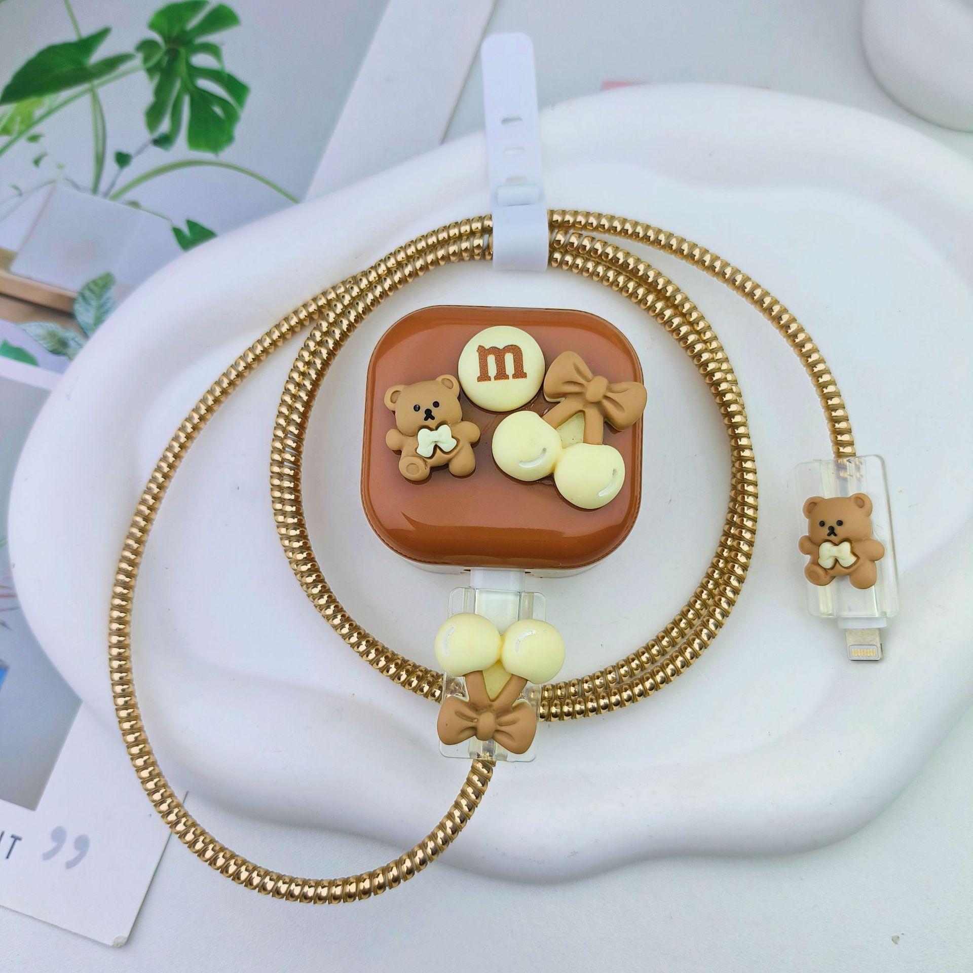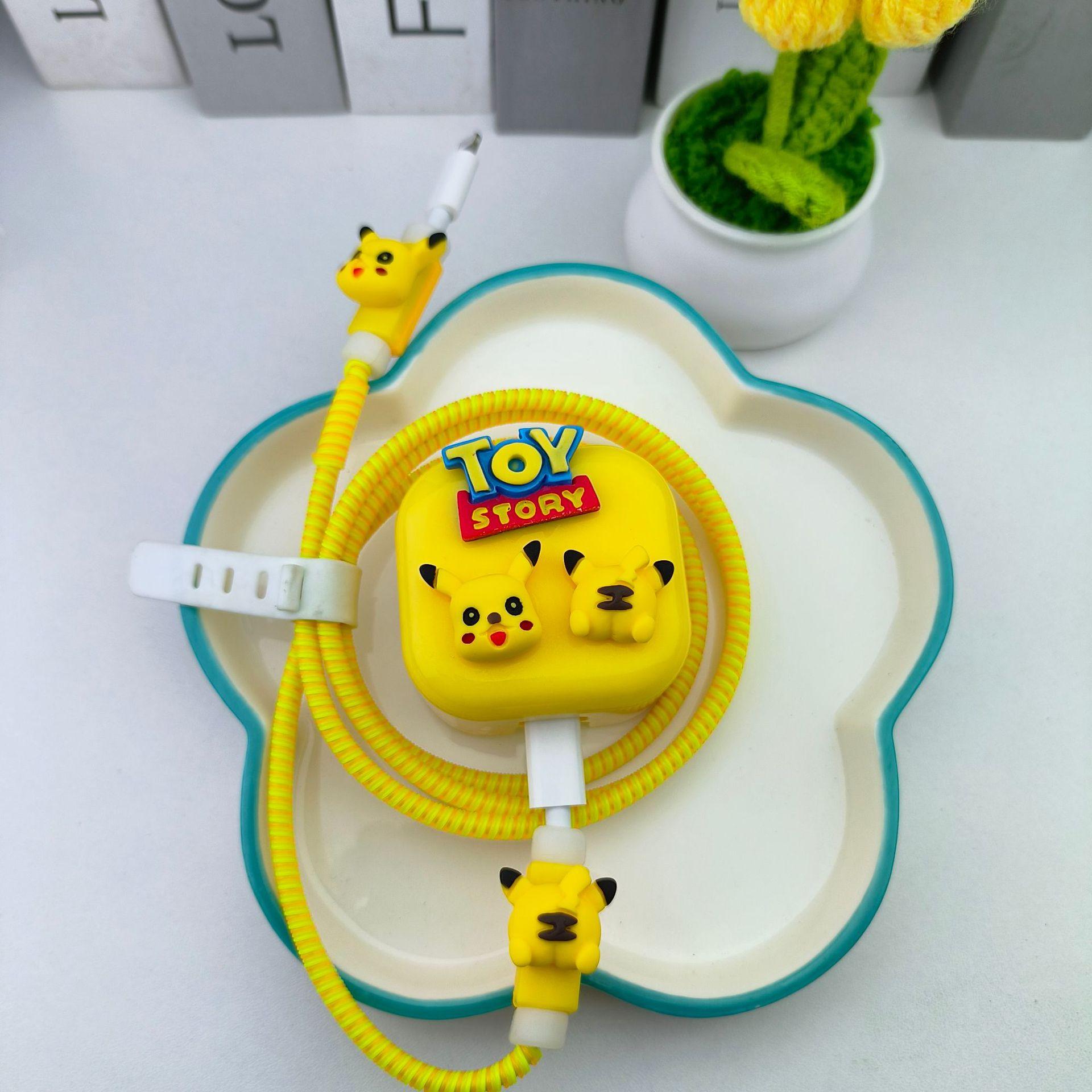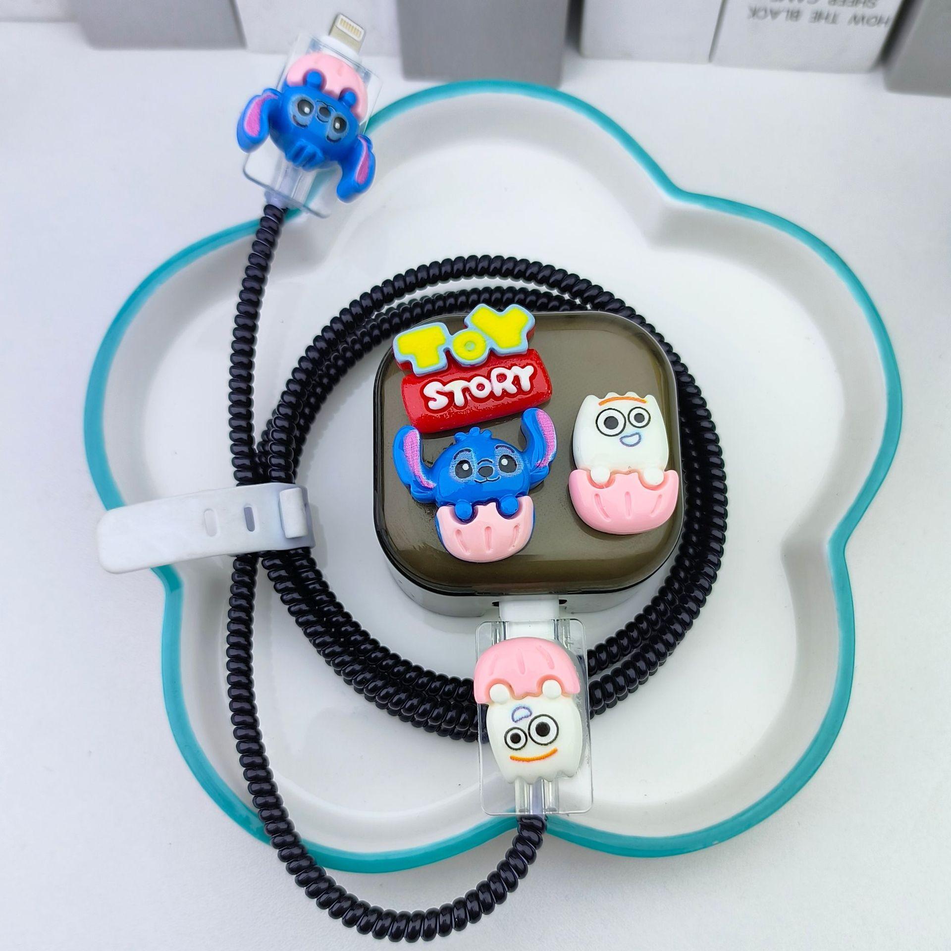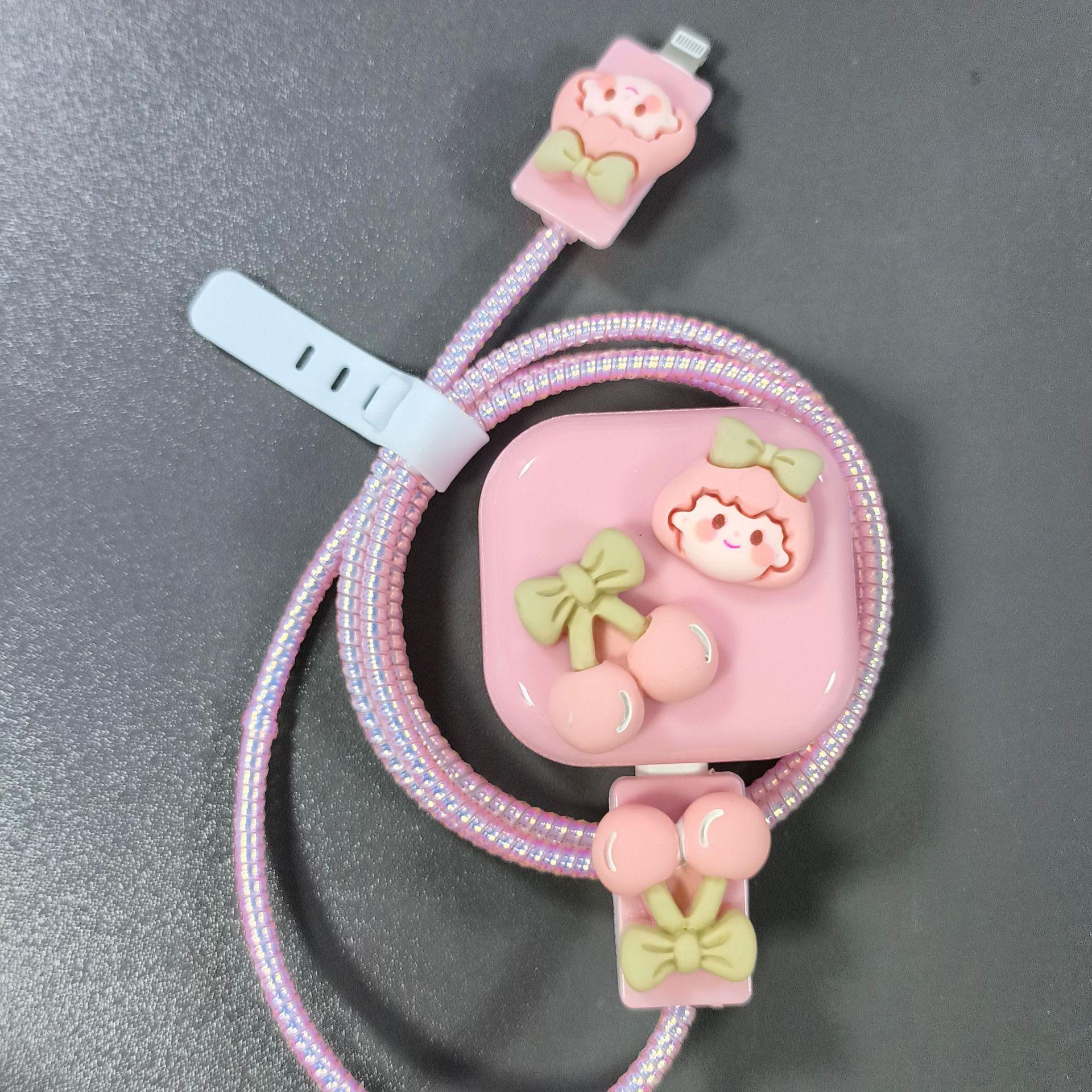 Funda protectora para cargador británico Apple de 20 W con cara de gato negra para iPhone 15, cable de datos, cable enrollable, cable mordedor.