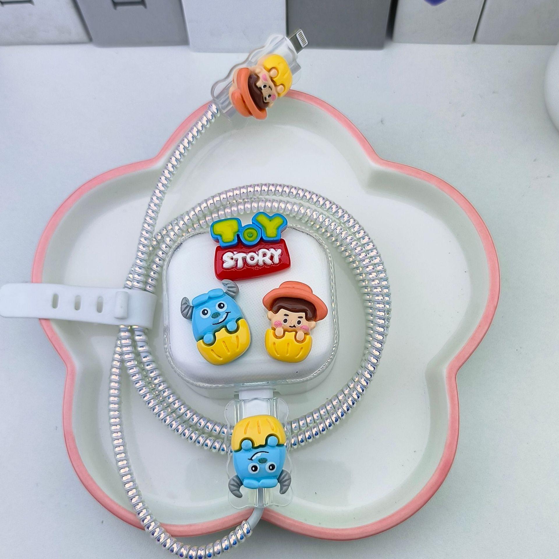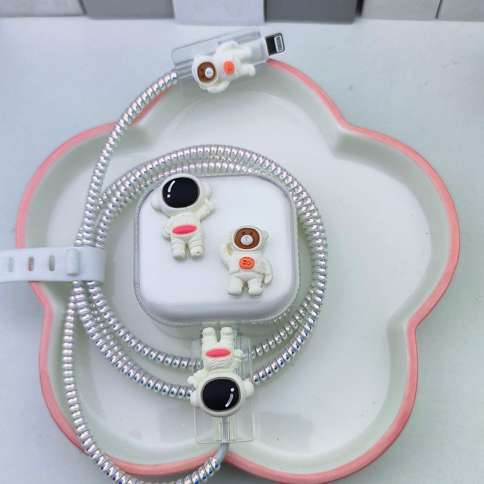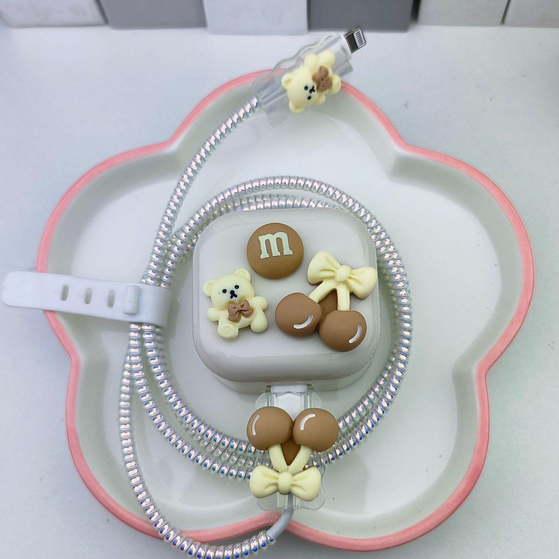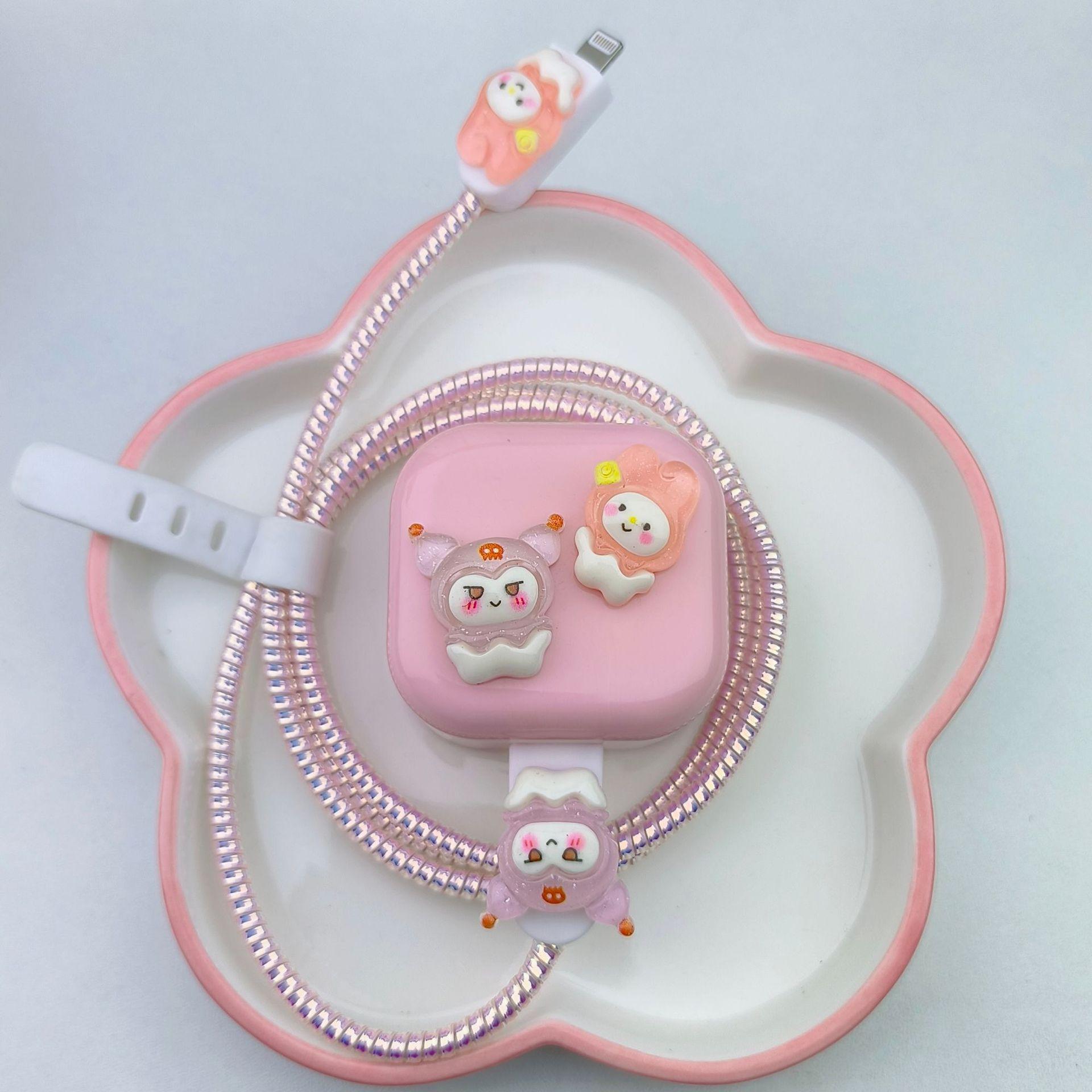 Funda protectora para cargador británico Apple de 20 W con cara de gato negra para iPhone 15, cable de datos, cable enrollable, cable mordedor.