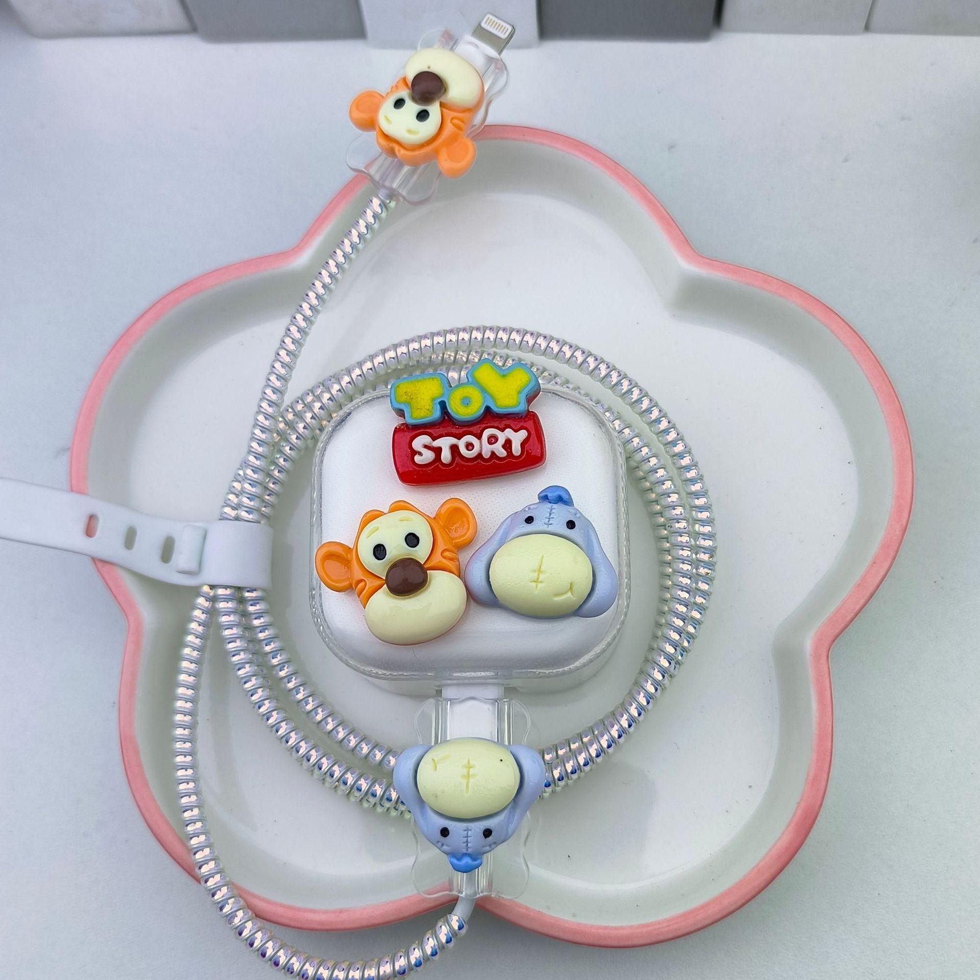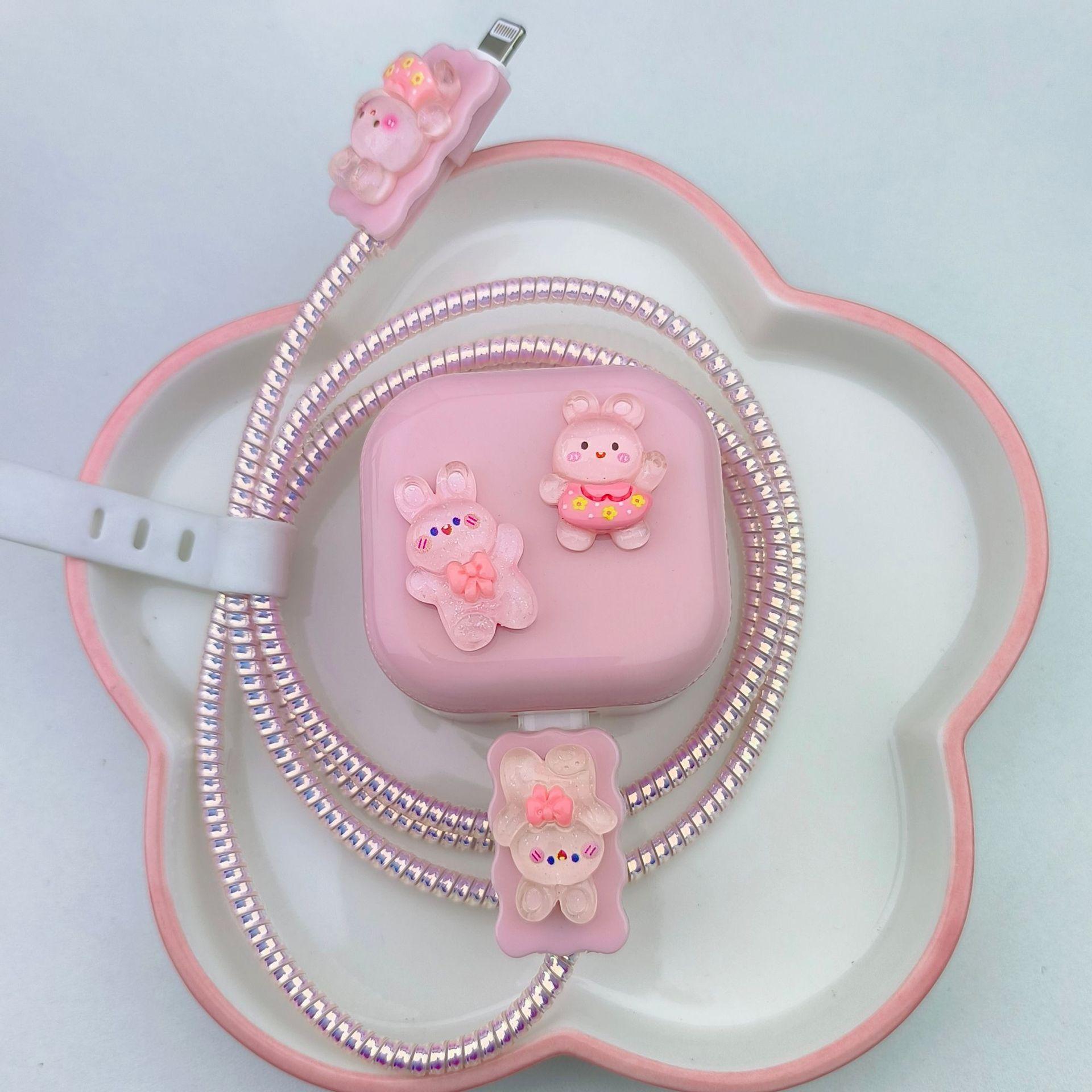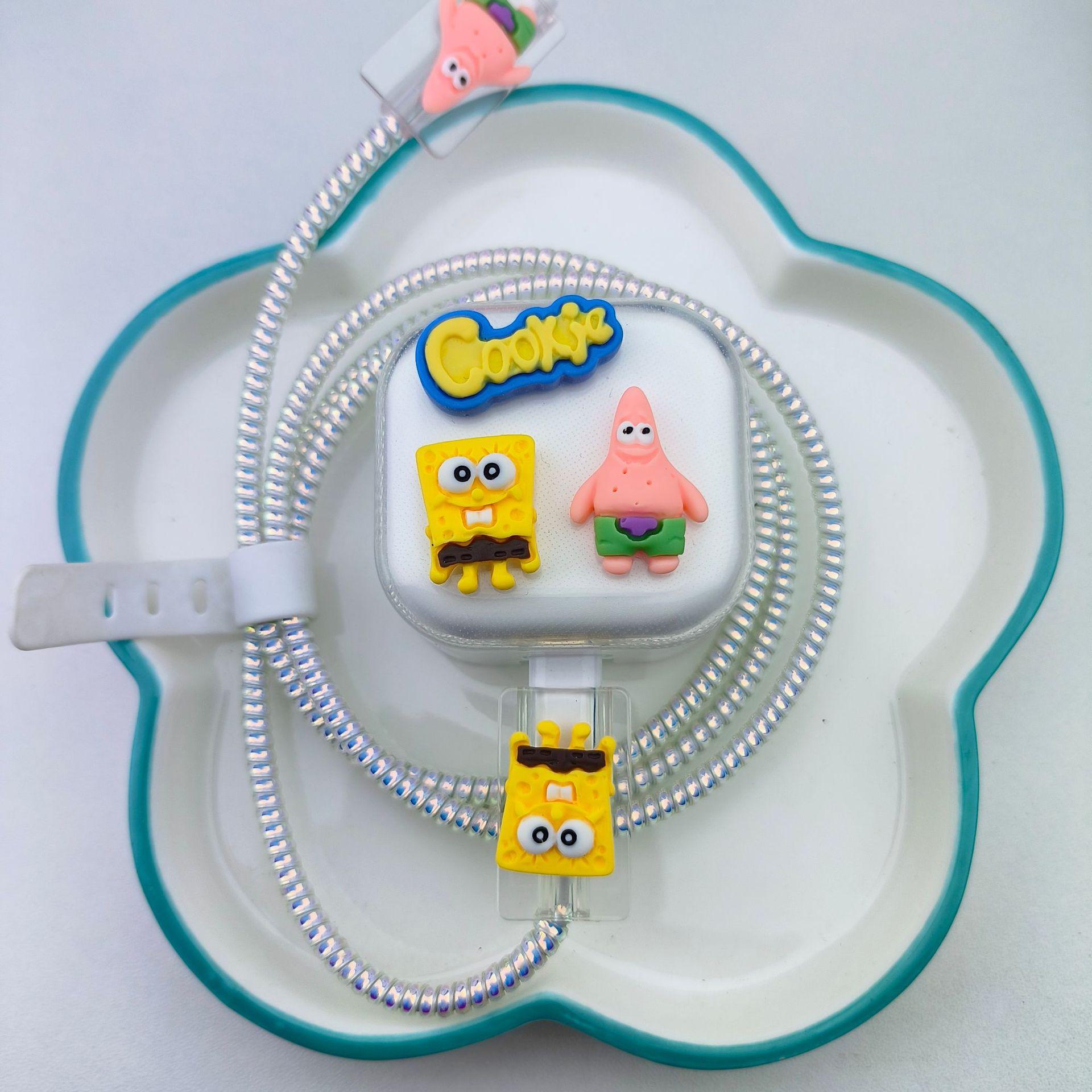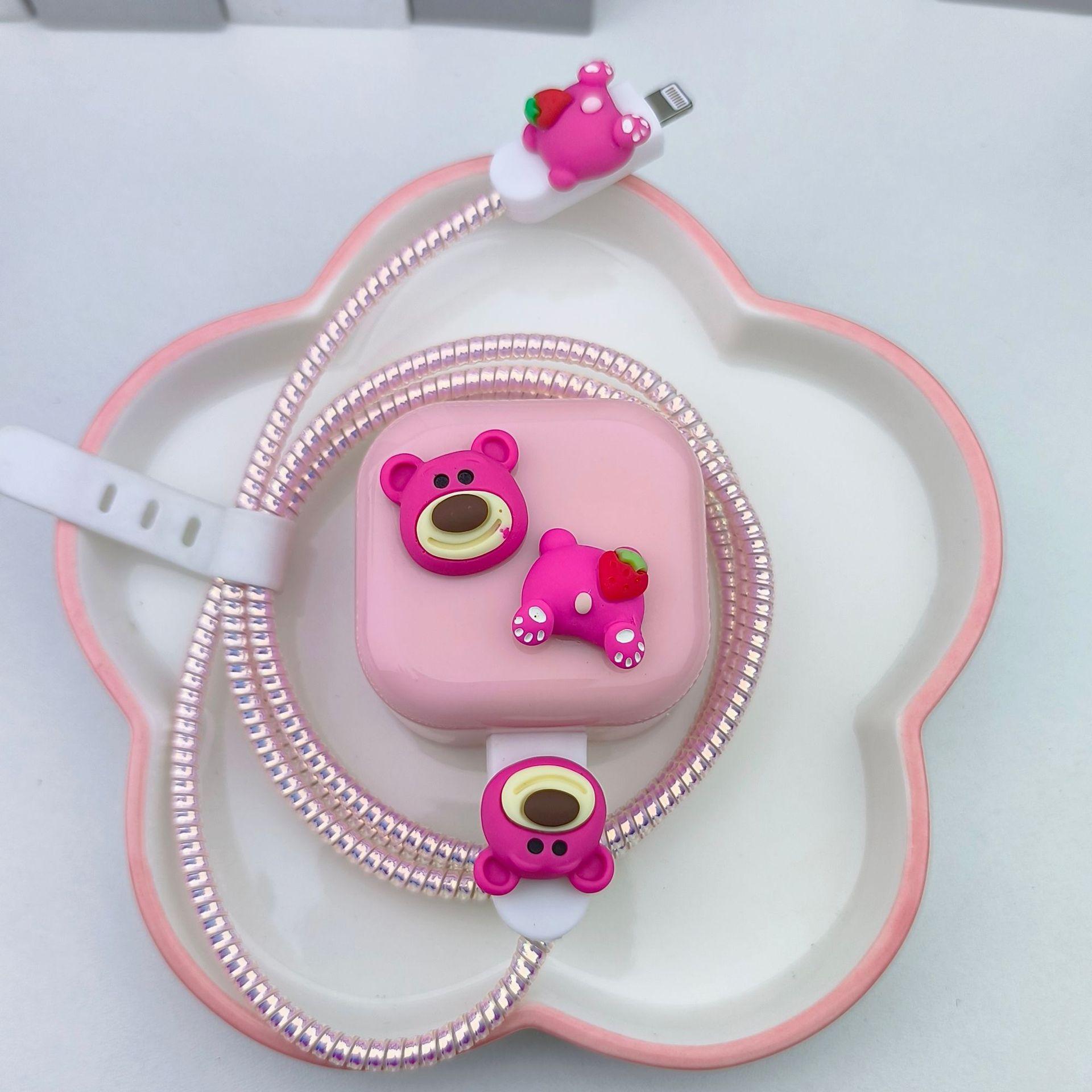 Funda protectora para cargador británico Apple de 20 W con cara de gato negra para iPhone 15, cable de datos, cable enrollable, cable mordedor.