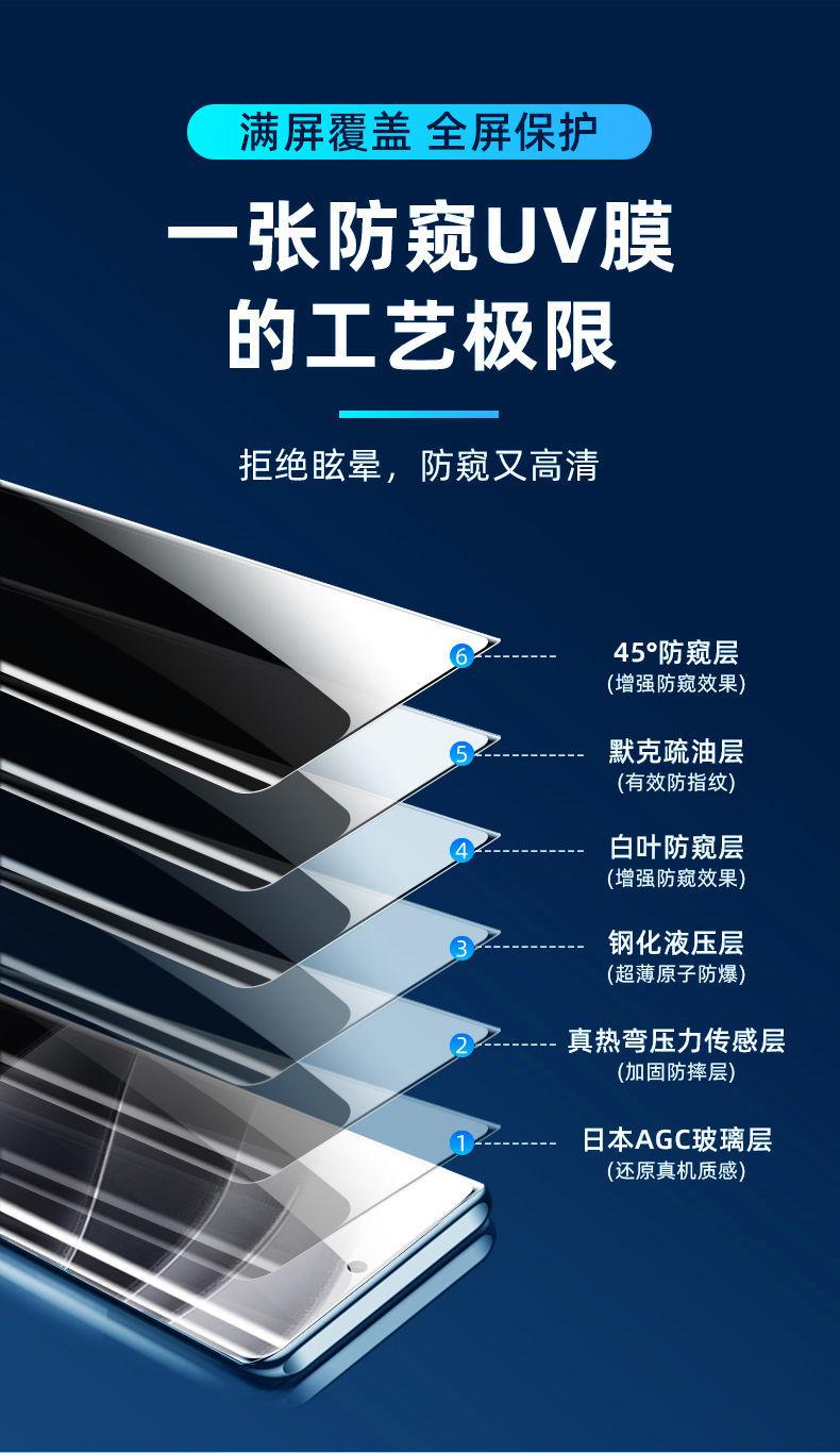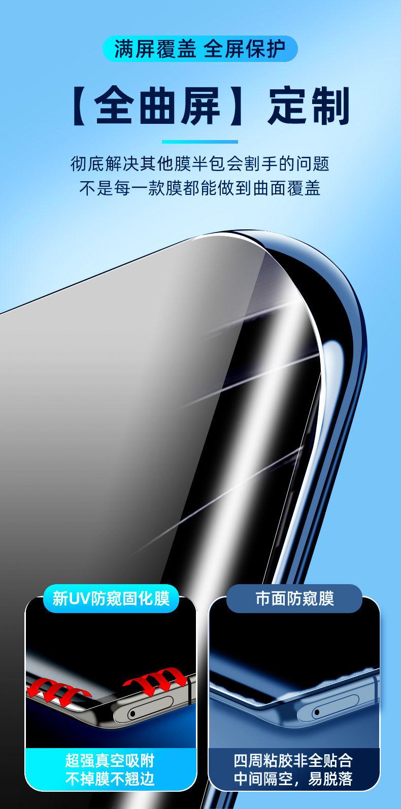 Anti-peep model [uv curved tempered film] bare mold - comes with curing light + uv glue + tool kit, High-defin...
